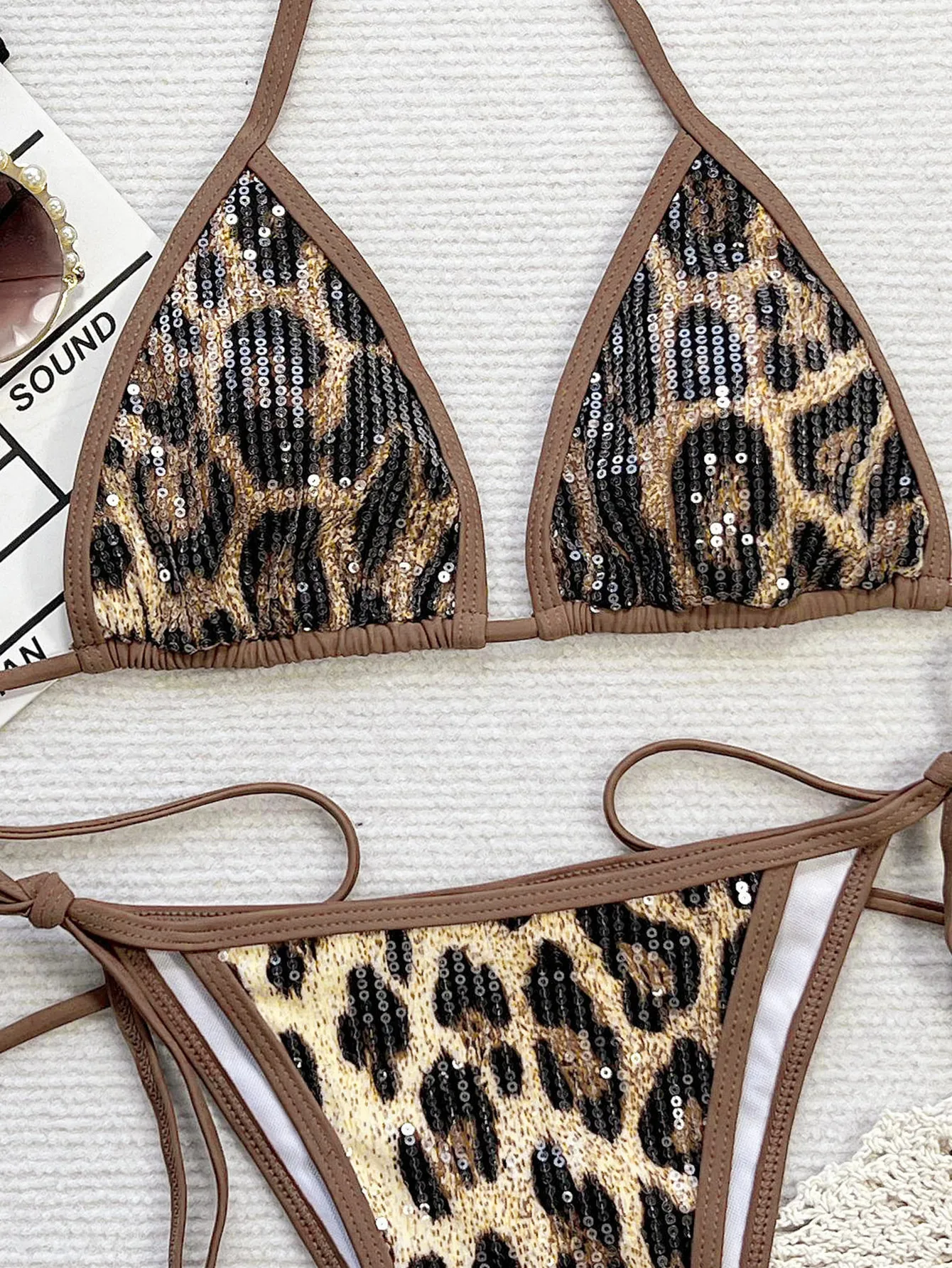 Sexy Triangle Bathing Suit for Women Bikini 2025 Women Sequin Leopard Print Push Up Micro Swimsuit Beach Swimming Suit Swimwear
