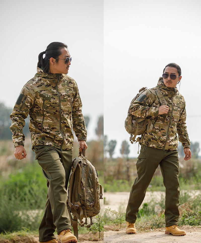 Sharkskin Soft-shell Hard Shell Camouflage Jacket Fleece Thick Tactical Suit Hooded Coat Manufacturers Handsome Outdoor Jacket