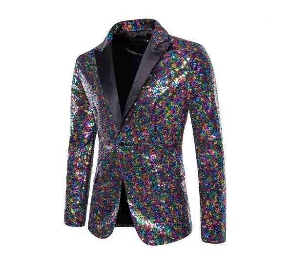Shiny Gold Men Sequin Glitter Embellished Blazer Jacket, Nightclub Prom Suit Coats Mens Costume Homme Stage Clothes For singers