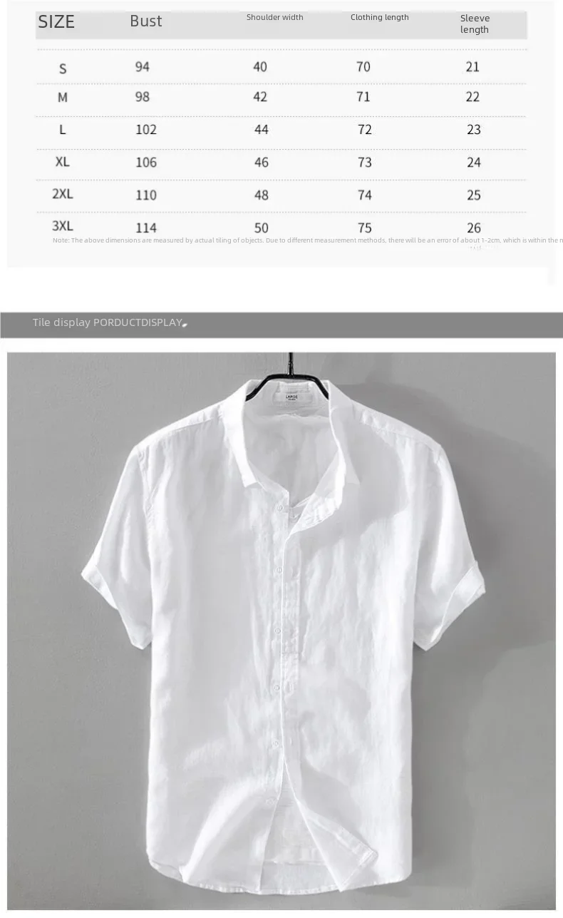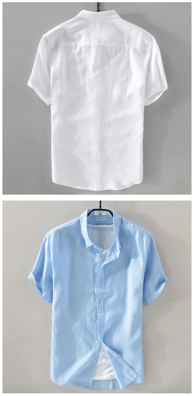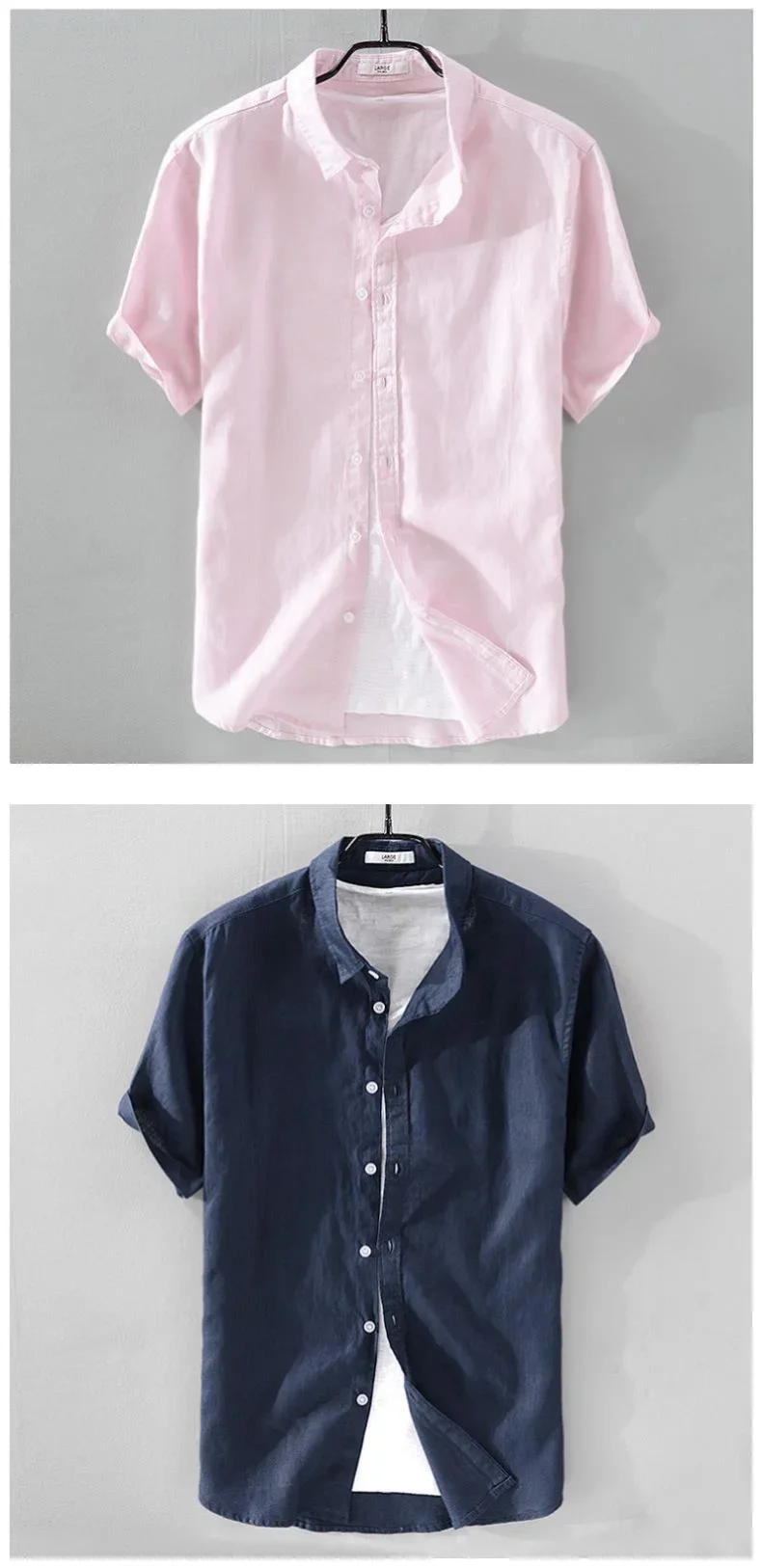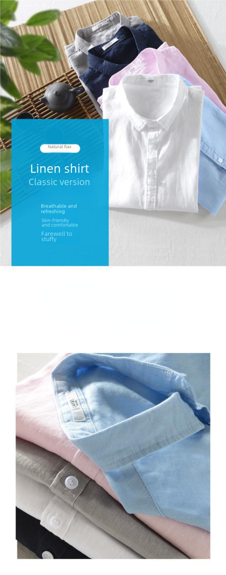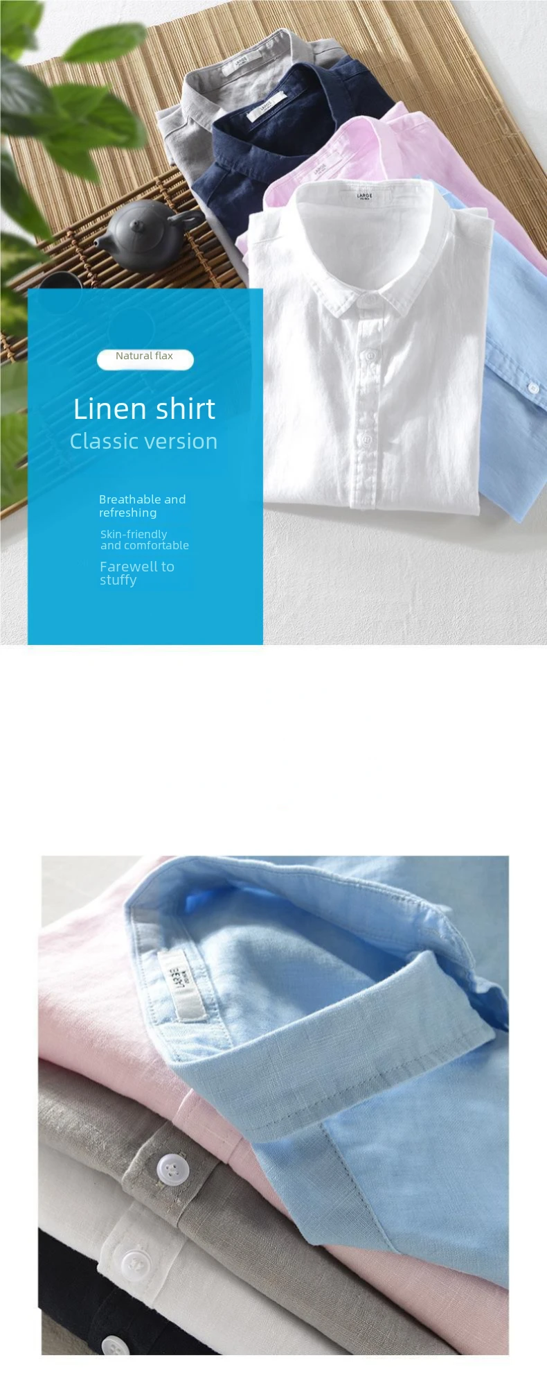 Short Sleeve Linen Shirt Men Simple Casual Retro Loose Style Youth Thin Basic Half Sleeve Cotton Linen Clothing