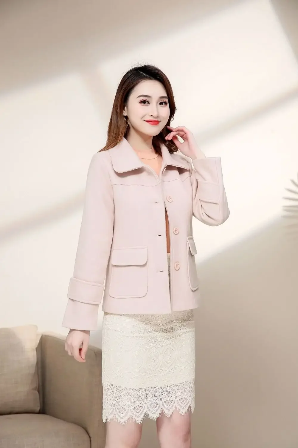 Short Woolen Coat for Women Casual Elegant Autumn Winter New Style Korean Version Polyester Fiber Commute Style Pure Color