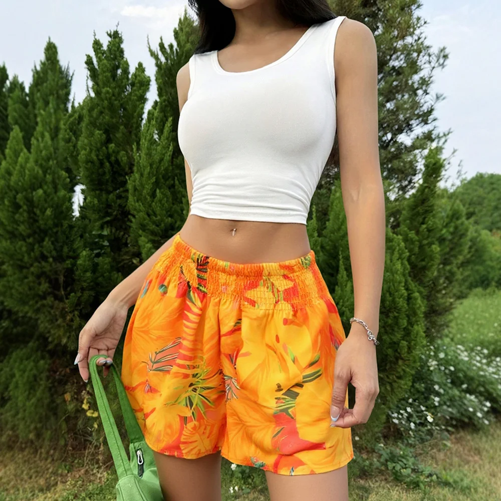 Shorts Summer Beach Style Floral Graphic Print High Waist Casual Mini Shorts For Women