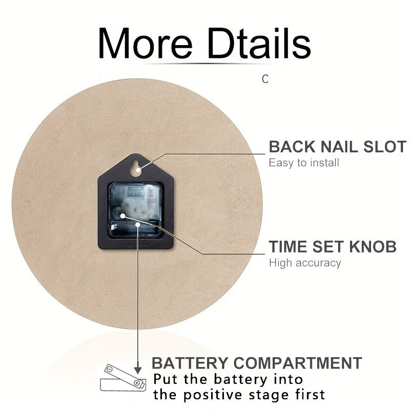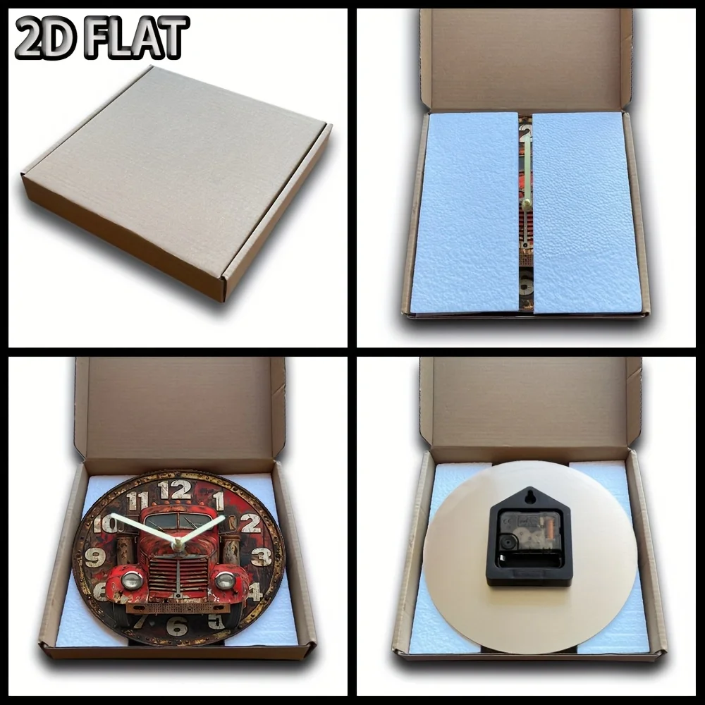 Round Wooden Wall Clock. Material of the wall clock: wooden. There are two sizes available, 8 inches and 12 inches. The display is 2D Flat, not 3D Flat, Battery Operated (AA Not Included)
