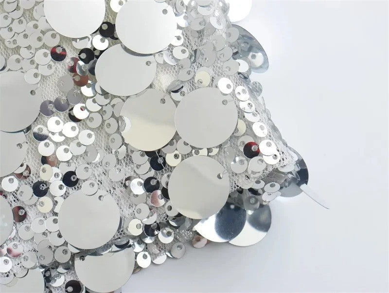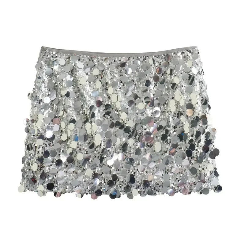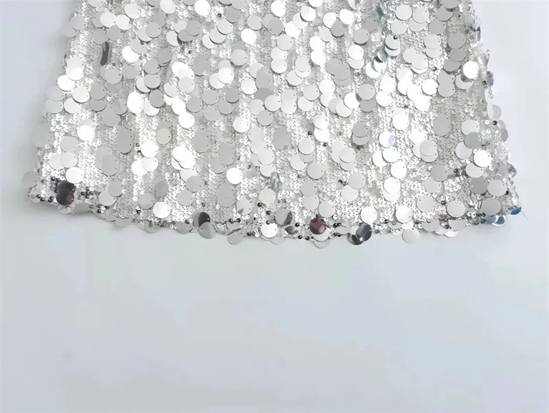 Silver Sequin Skirt Woman High Waist Mini Skirt Woman Fashion Shiny Glitter Eleg