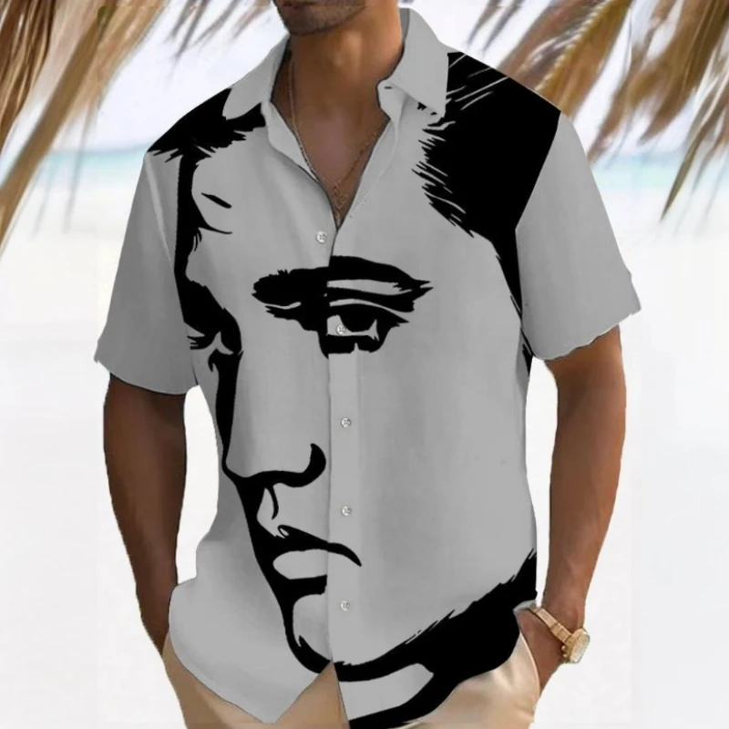 Simple Men's Shirt 3d Face Print Short Sleeve Shirts Beach Casual Clothing Loose Oversized Hawaiian Shirts For Men 2024 New Tops