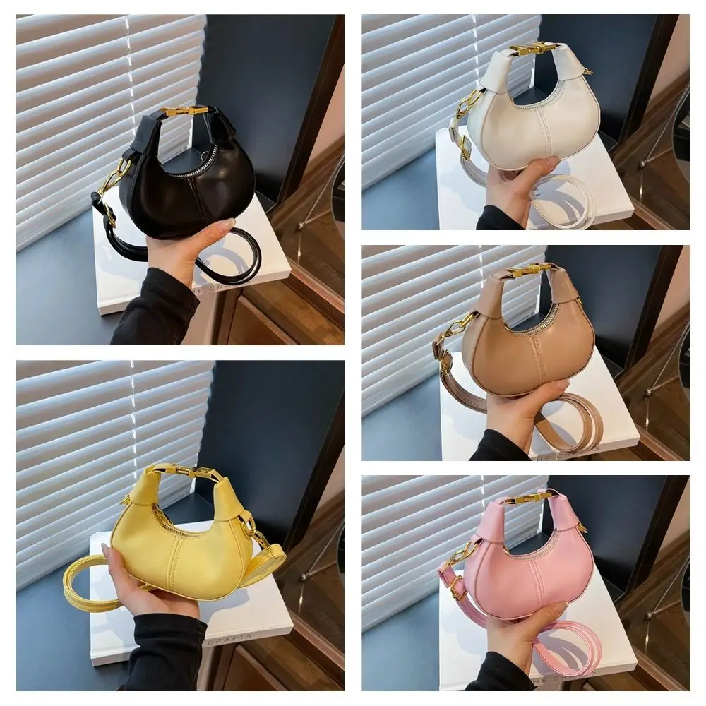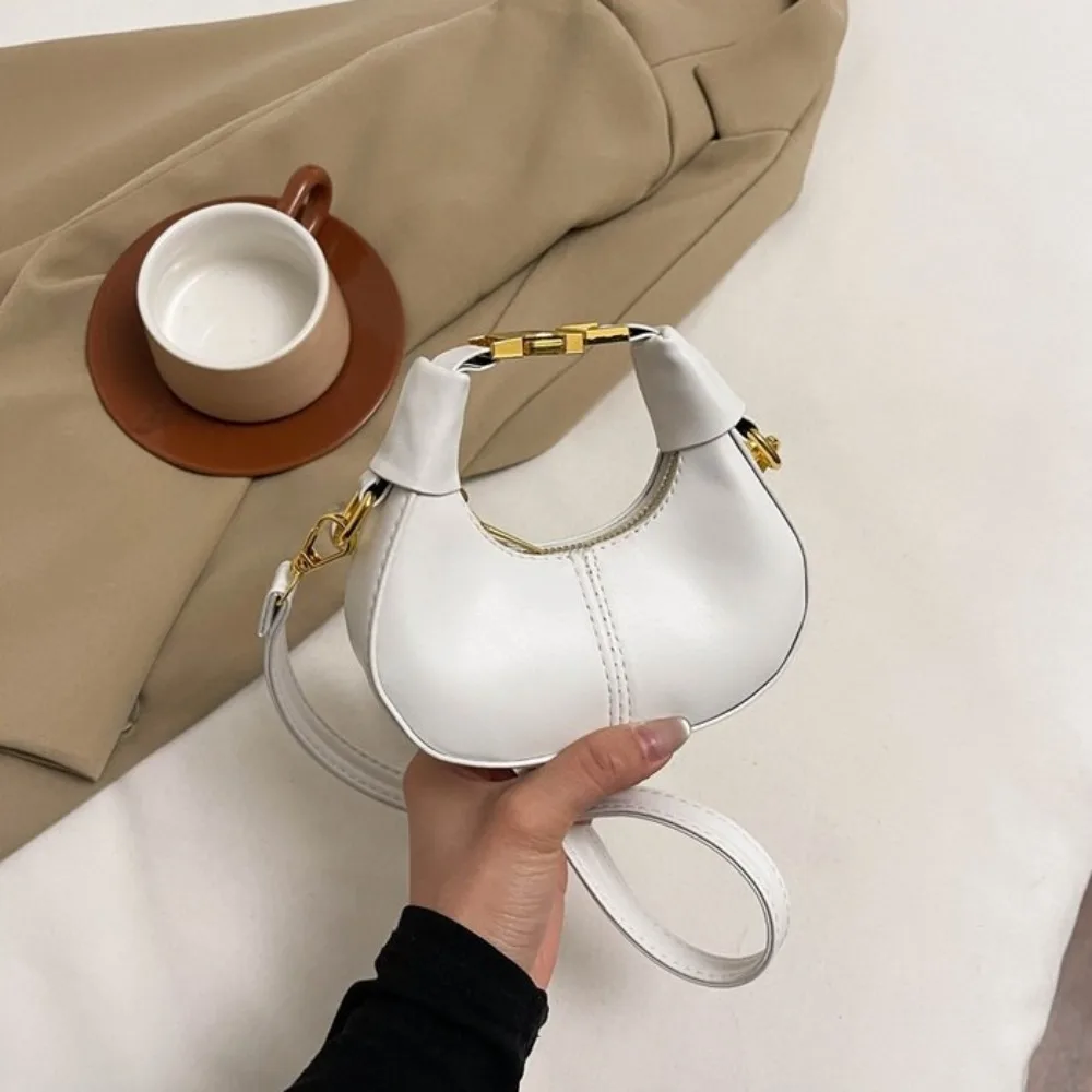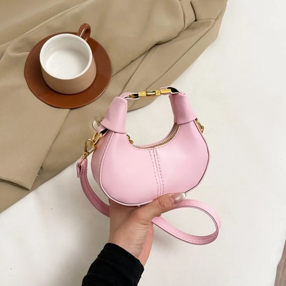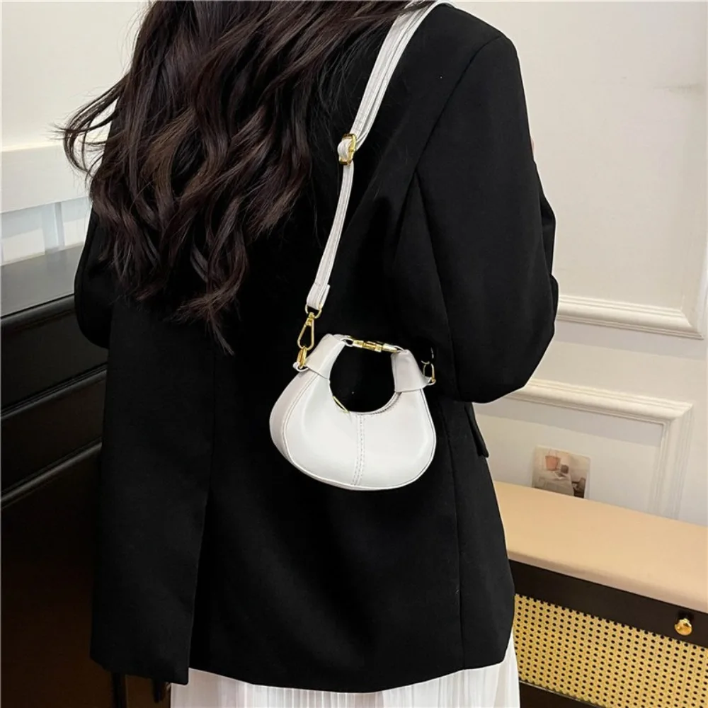 Simple Y2K Pu Leather Handbag Solid Color Minimalist Style Crossbody Bag Coin Purses Half-moon Crescent Bag Ladies