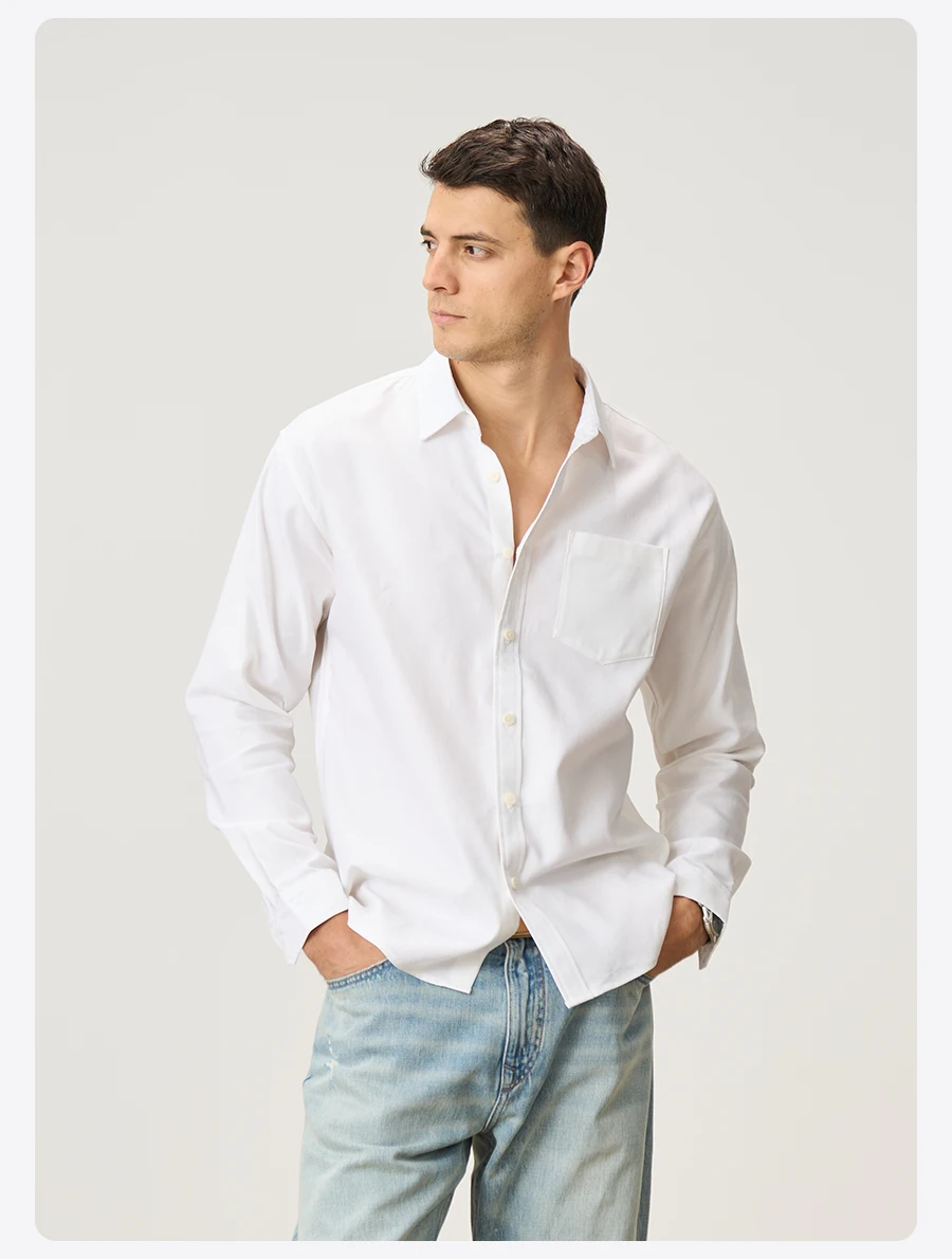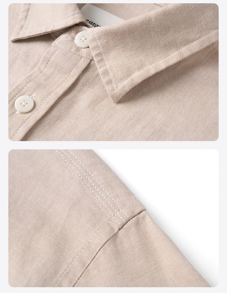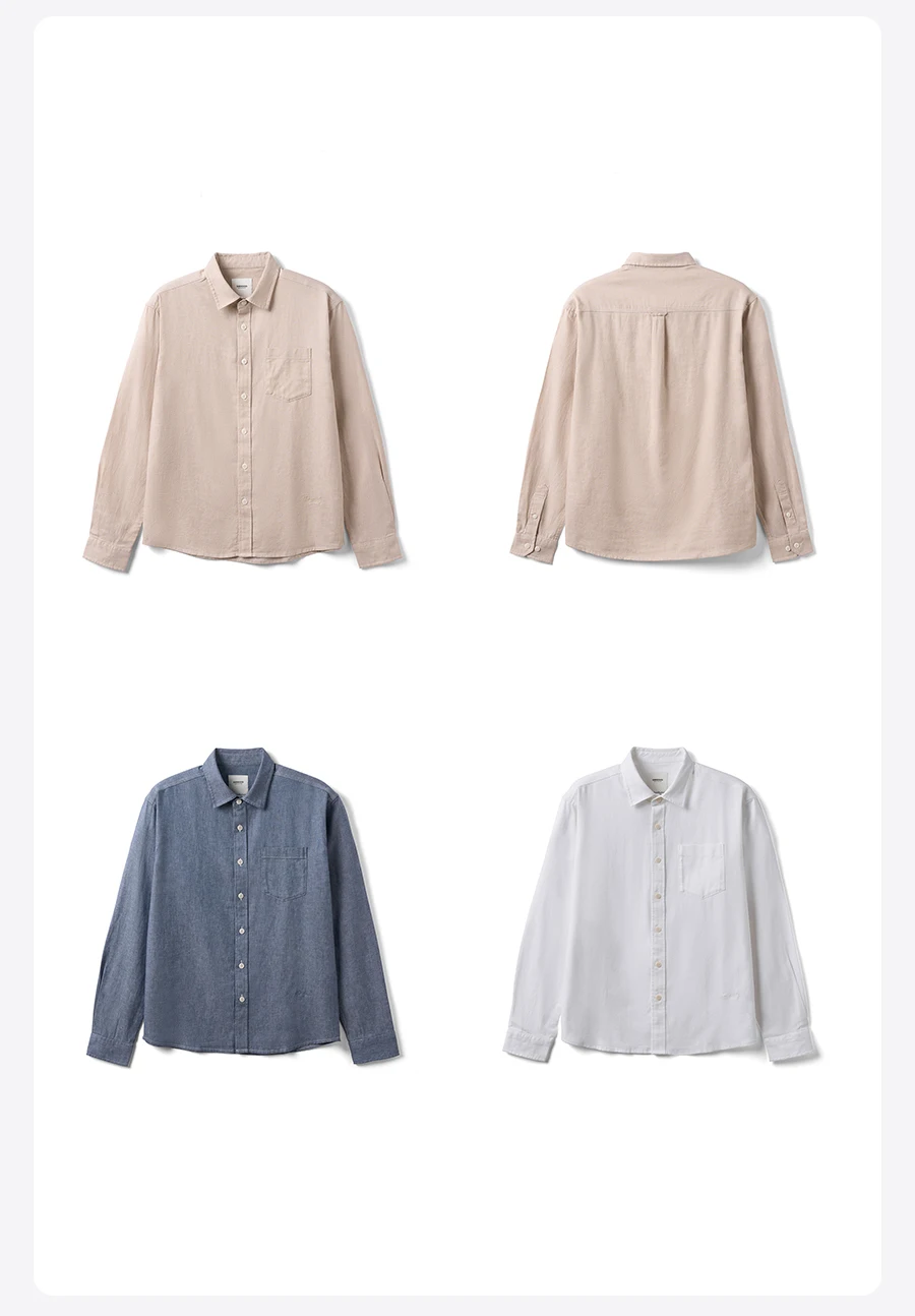 SIMWOOD 2025 Summer Autumn New 170gsm Cool Breathable Linen Cotton Blend Fabric Shirts Men Comfortable Tops