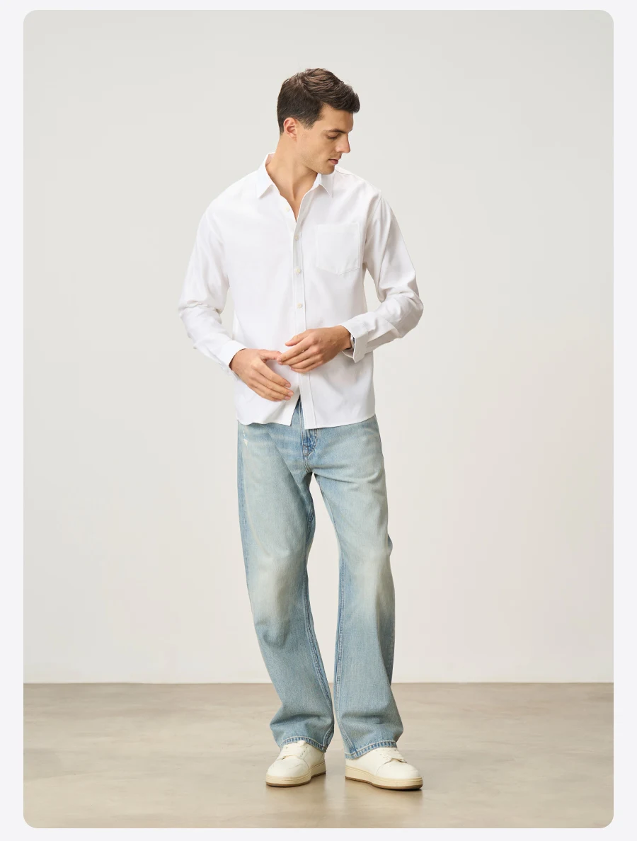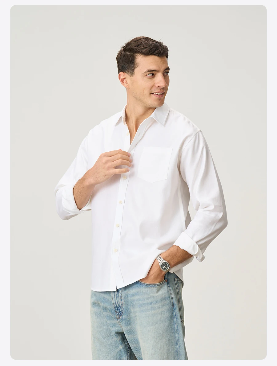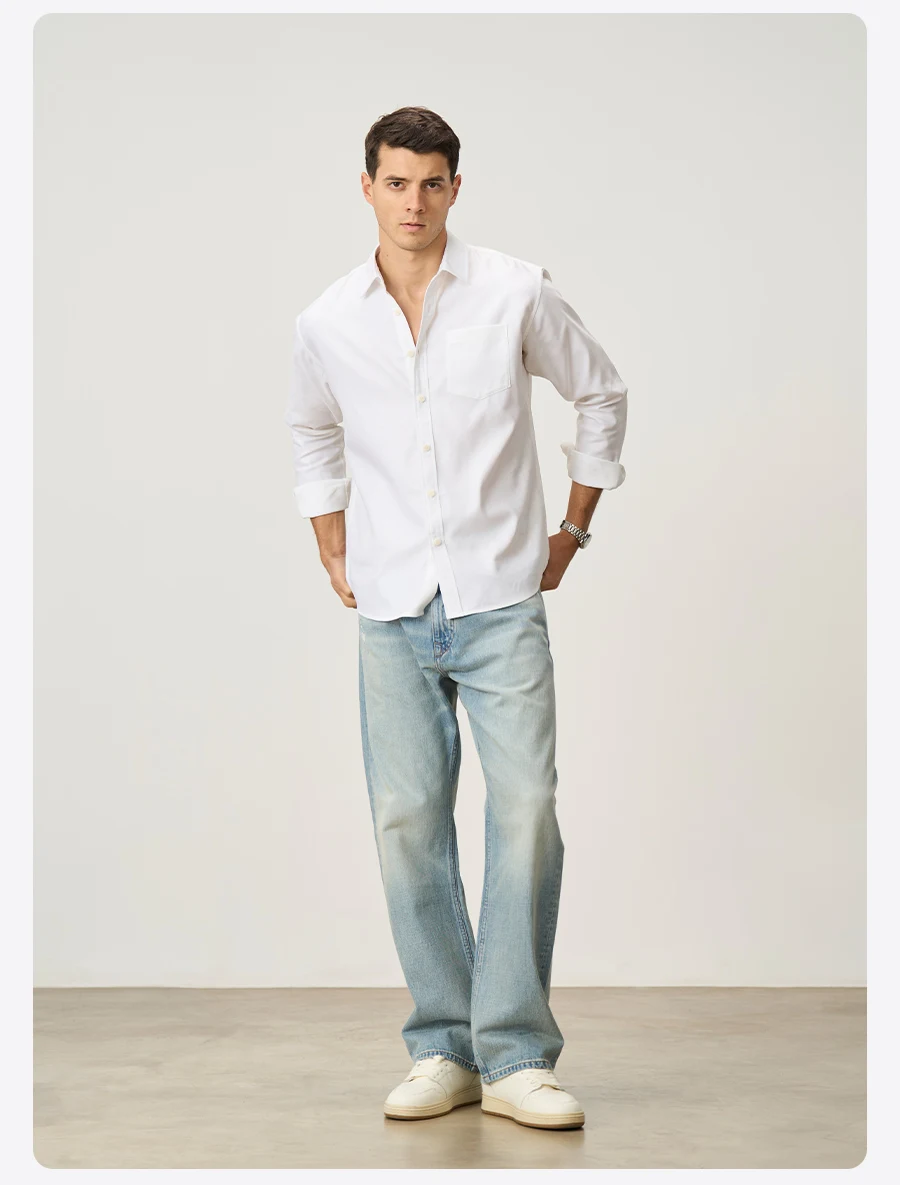 SIMWOOD 2025 Summer Autumn New 170gsm Cool Breathable Linen Cotton Blend Fabric Shirts Men Comfortable Tops