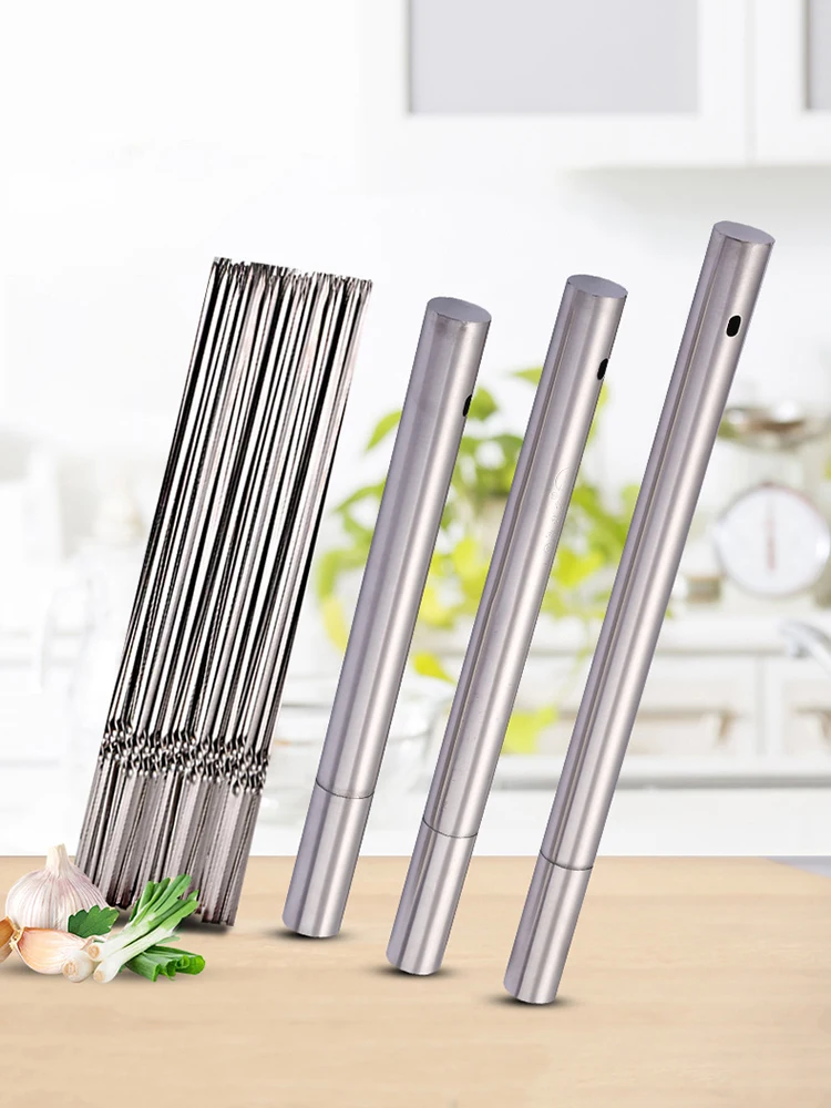 ?Food grade Stainless steel design?BBQ Needle Sticks can be reused, also are easy to clean. Metal kabob skewers stainless steel help you fully enjoy the barbecue time.