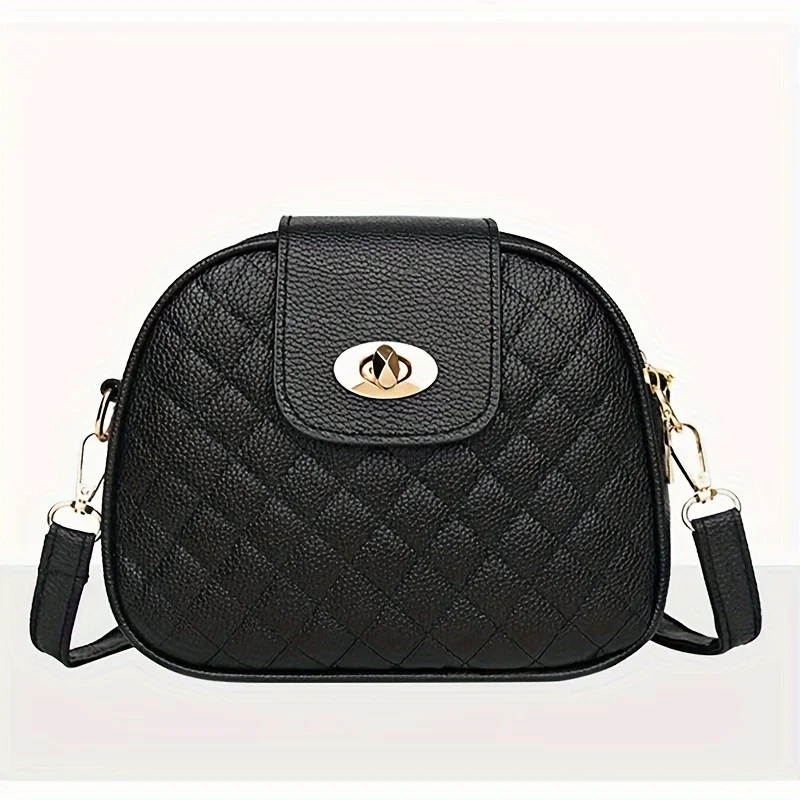 Small Quilted Crossbody Bag, Stylish PU Leather Shoulder Purse with Vintage Round Shape, Trendy Accent - Perfect for Daily Use
