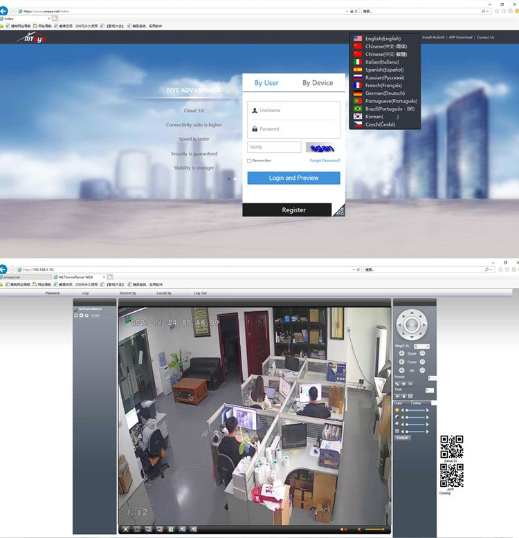 P2P technology supports remote access on the mobile device,Just intall the APP on your phone by scanning the QR cade or storing from the APP View the camera remotely anytime, any where......