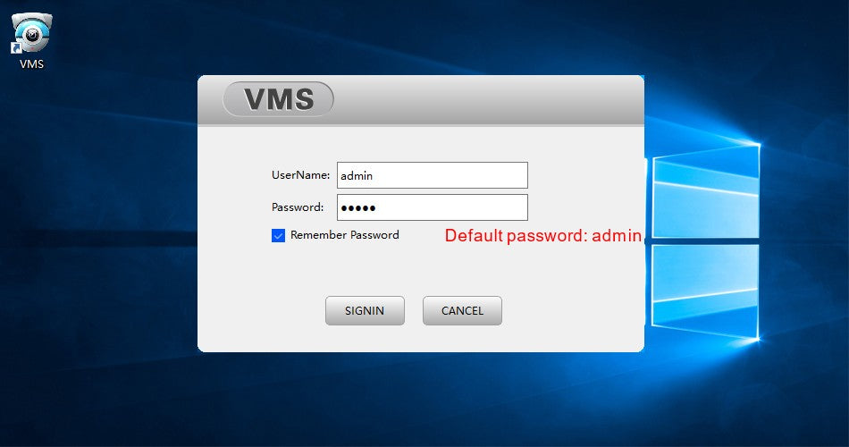 2. Please install VMS software on your computer, then login VMS Software, Username: admin, Password:admin