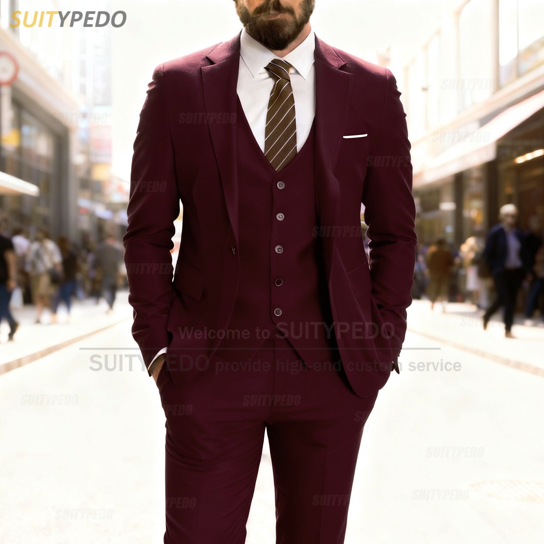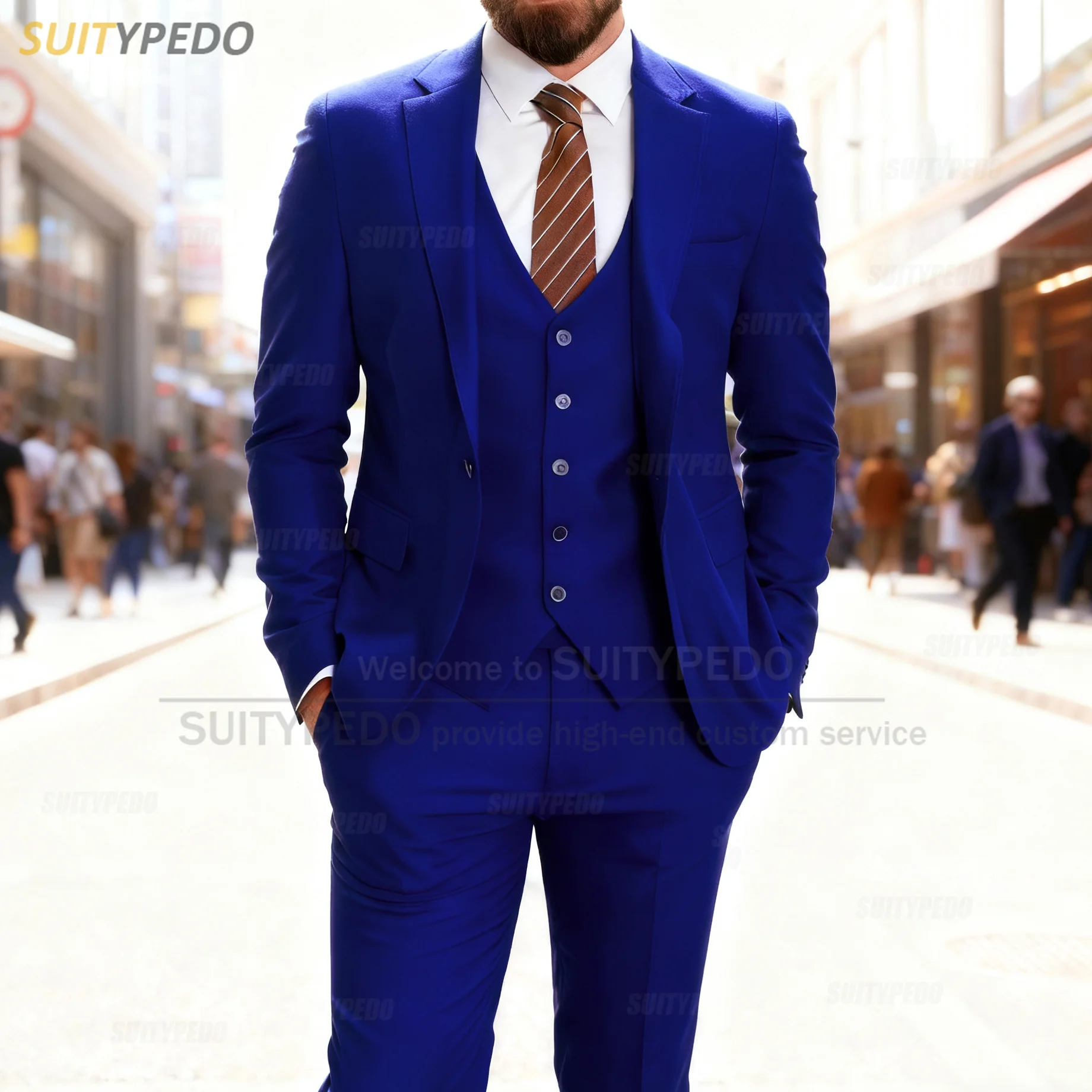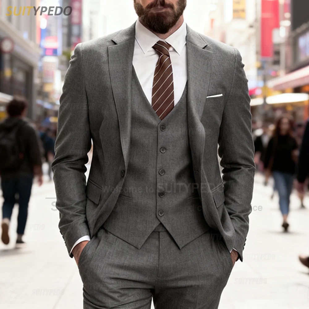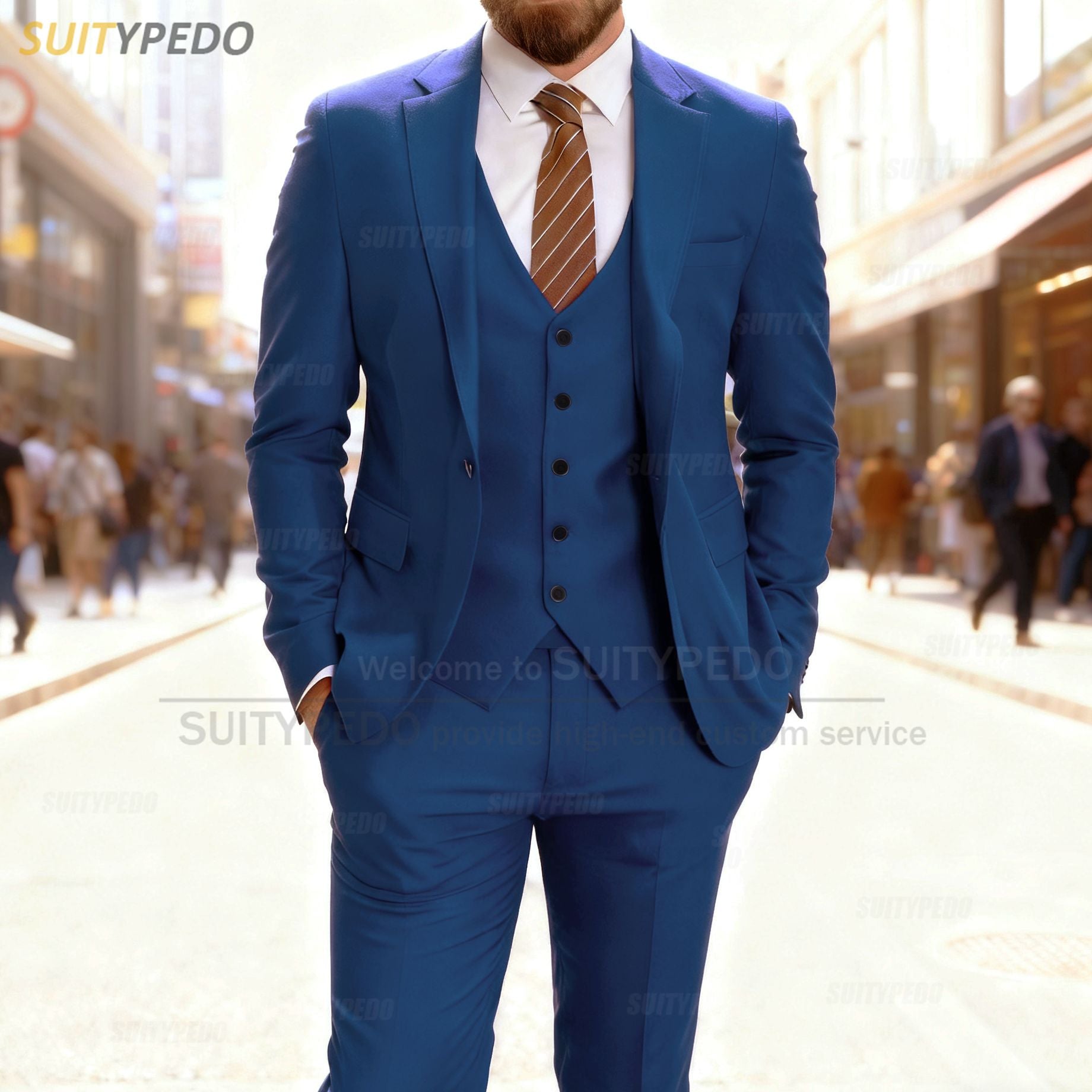Smart Casual Slim Fit Suit Sets Elegant Notch Lapel Suit Attire 3 Pieces Blazer Vest And Pants Formal Evening Homme Costumes
