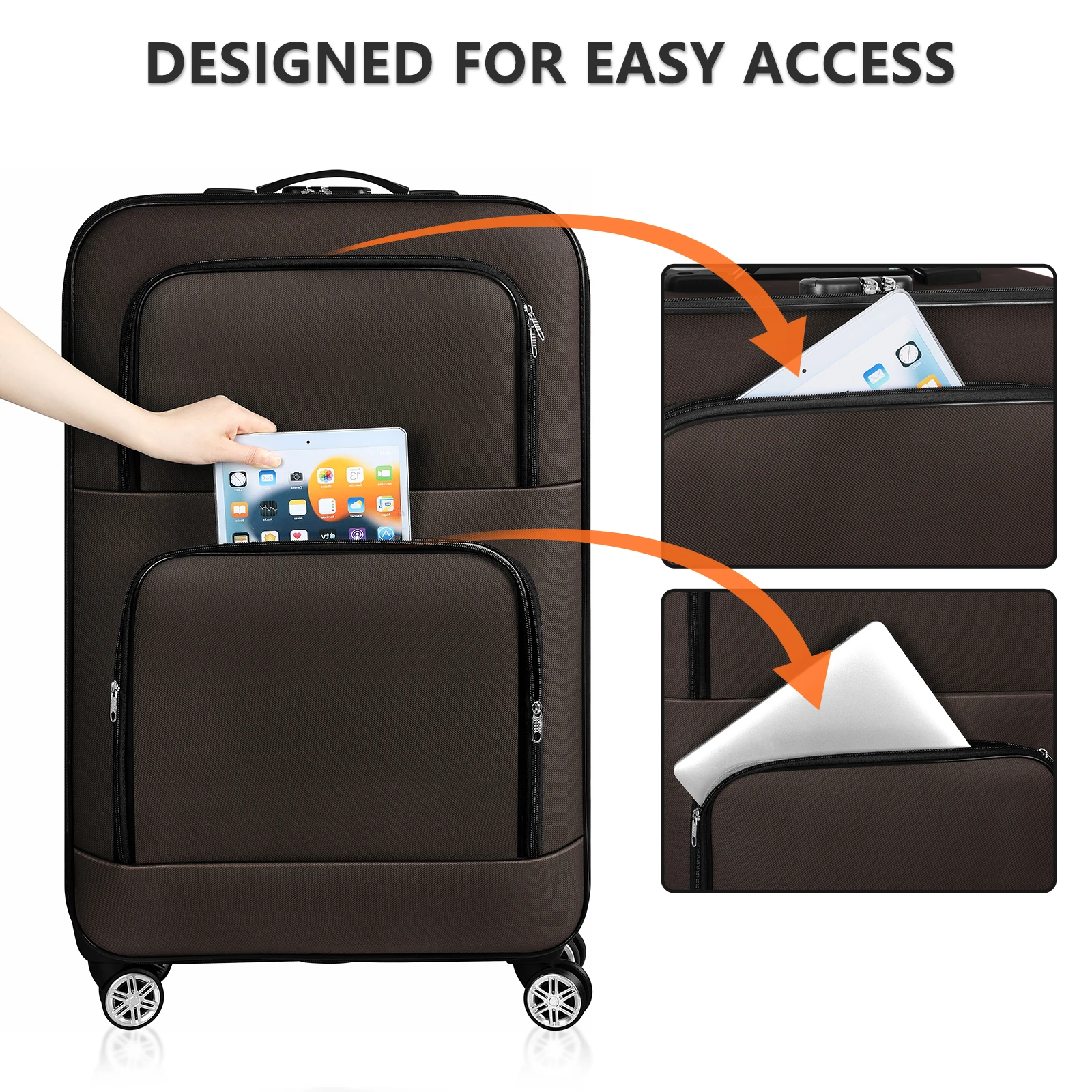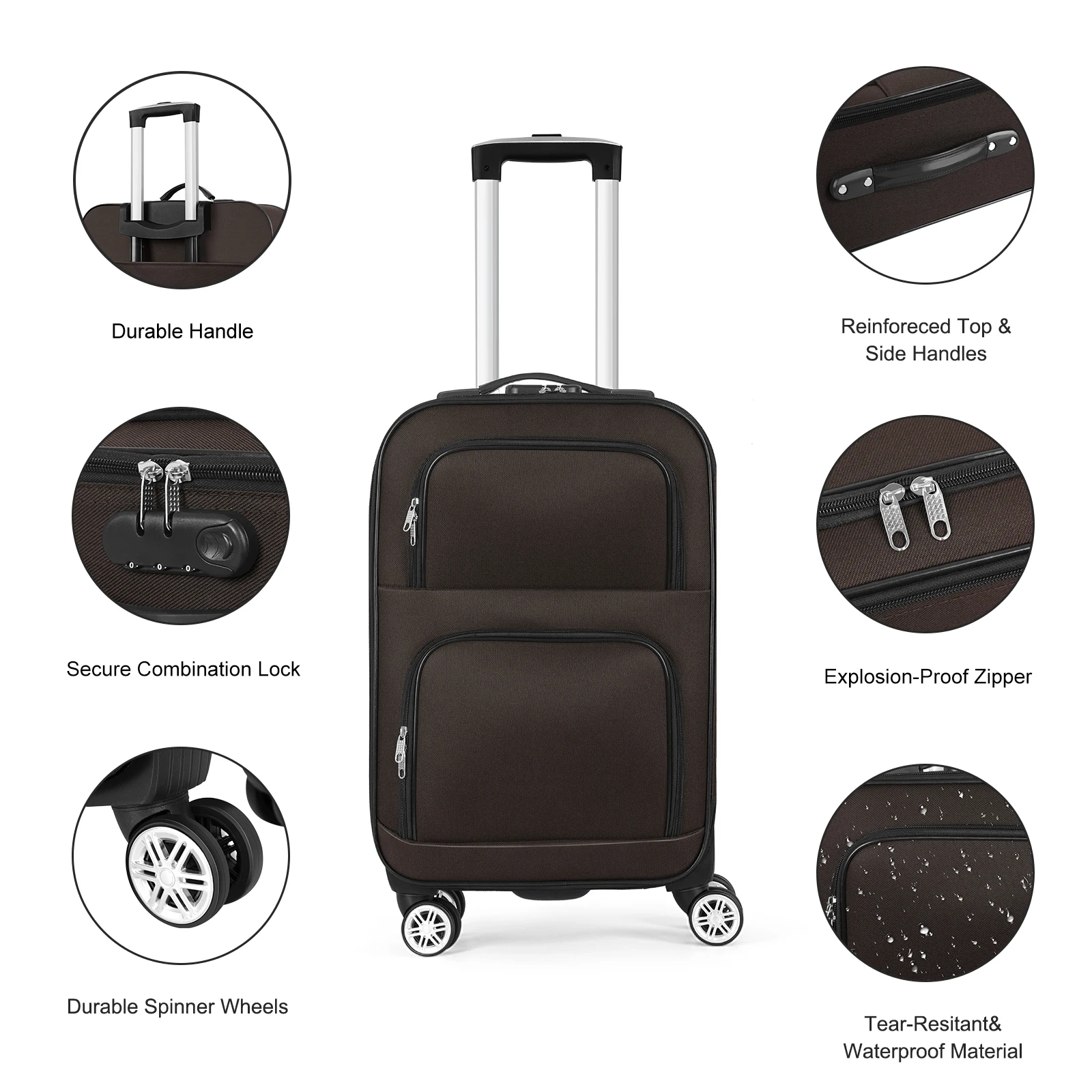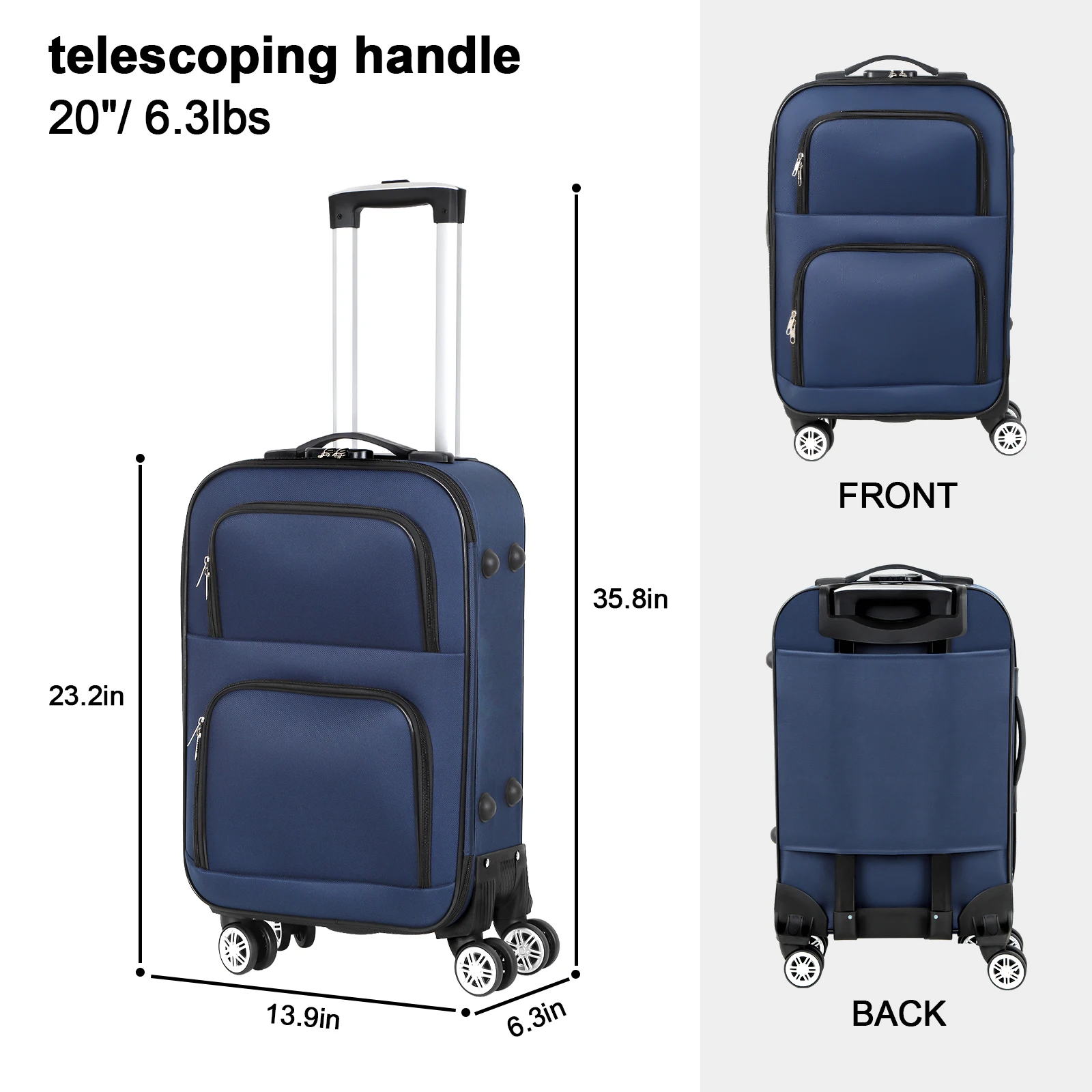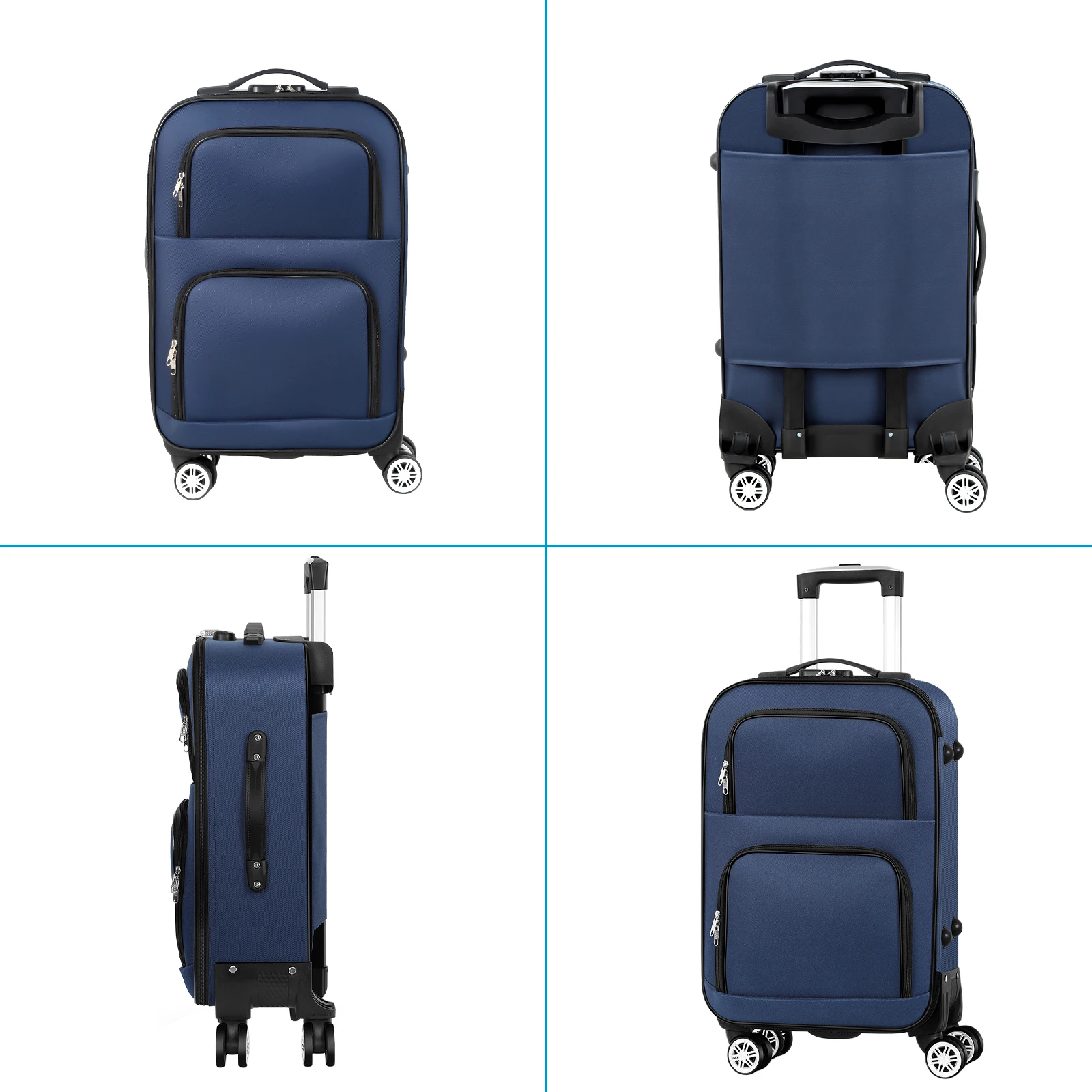Soft edged travel 20 inch lightweight luggage with rotating wheels, Oxford fabric suitcase with small diagonal fabric