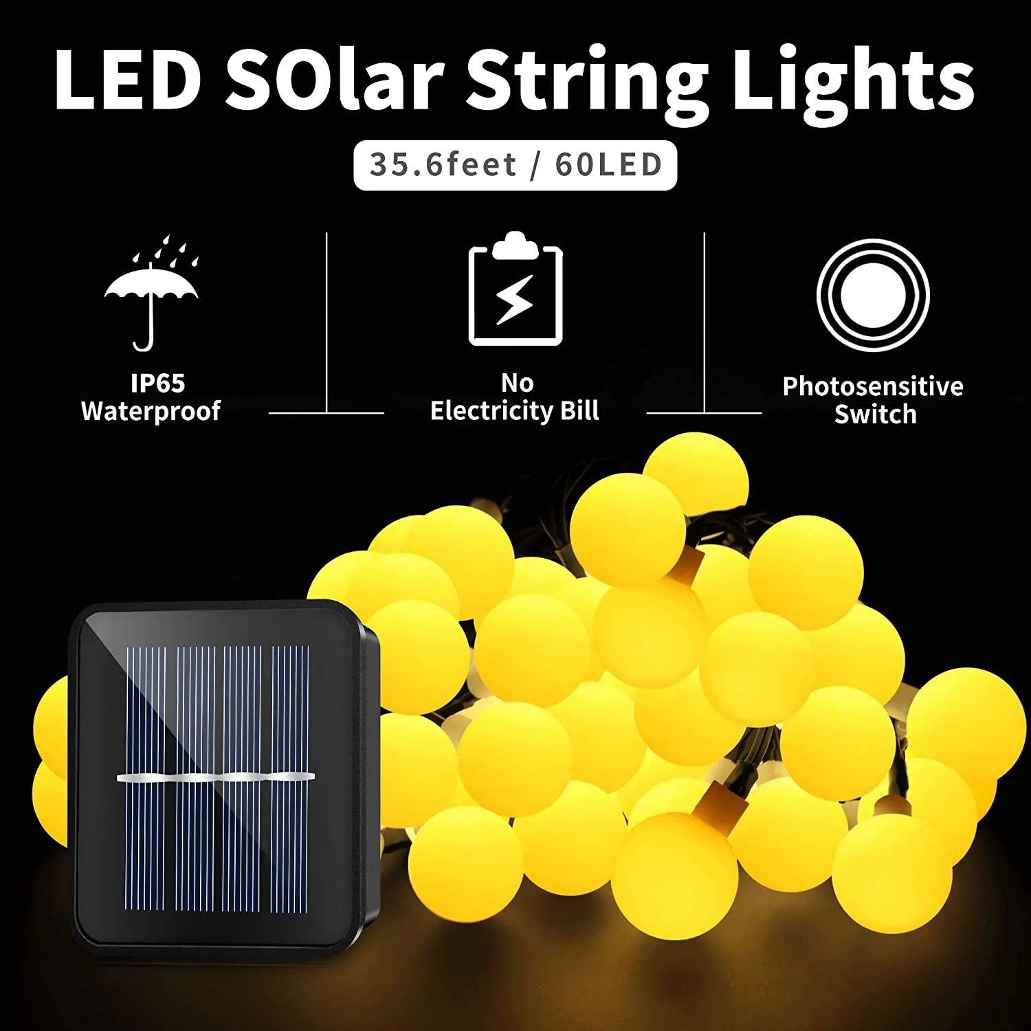 3.Energy saving led lights: long string with 20/30/50/60 super bright led bulbs, powered by solar energy, can save electricity and money which enable your life to practice the concept of sustainable development and improve the quality of life. It can still be touched safely after it has been working for some time, which is a friendly product.
