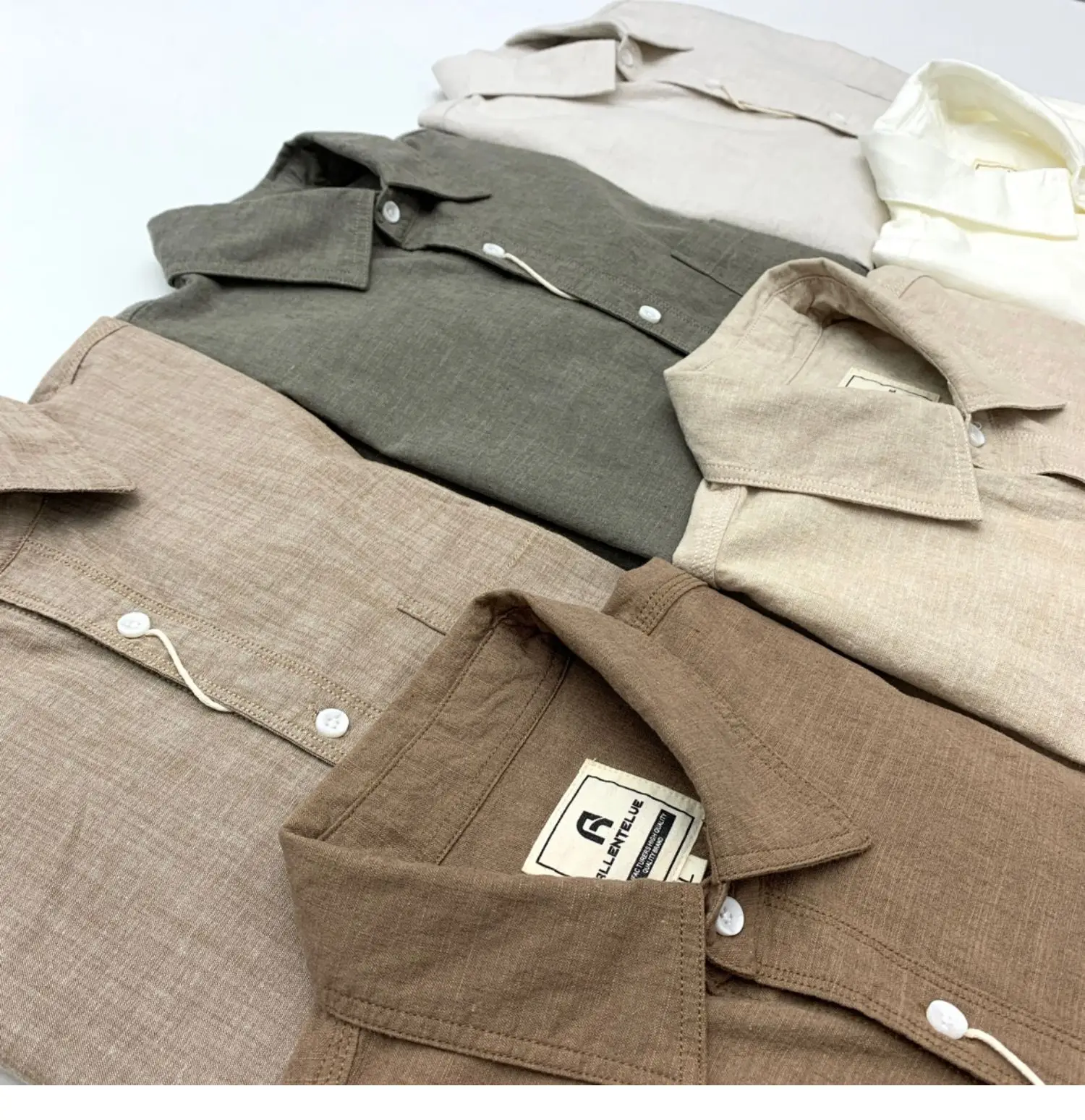 Sold Color Mens Cotton Linen Shirts Harajuku Casual Simple Comfortable Long Sleeve Loose Buttons Blouses Shirt With Chest Pocket