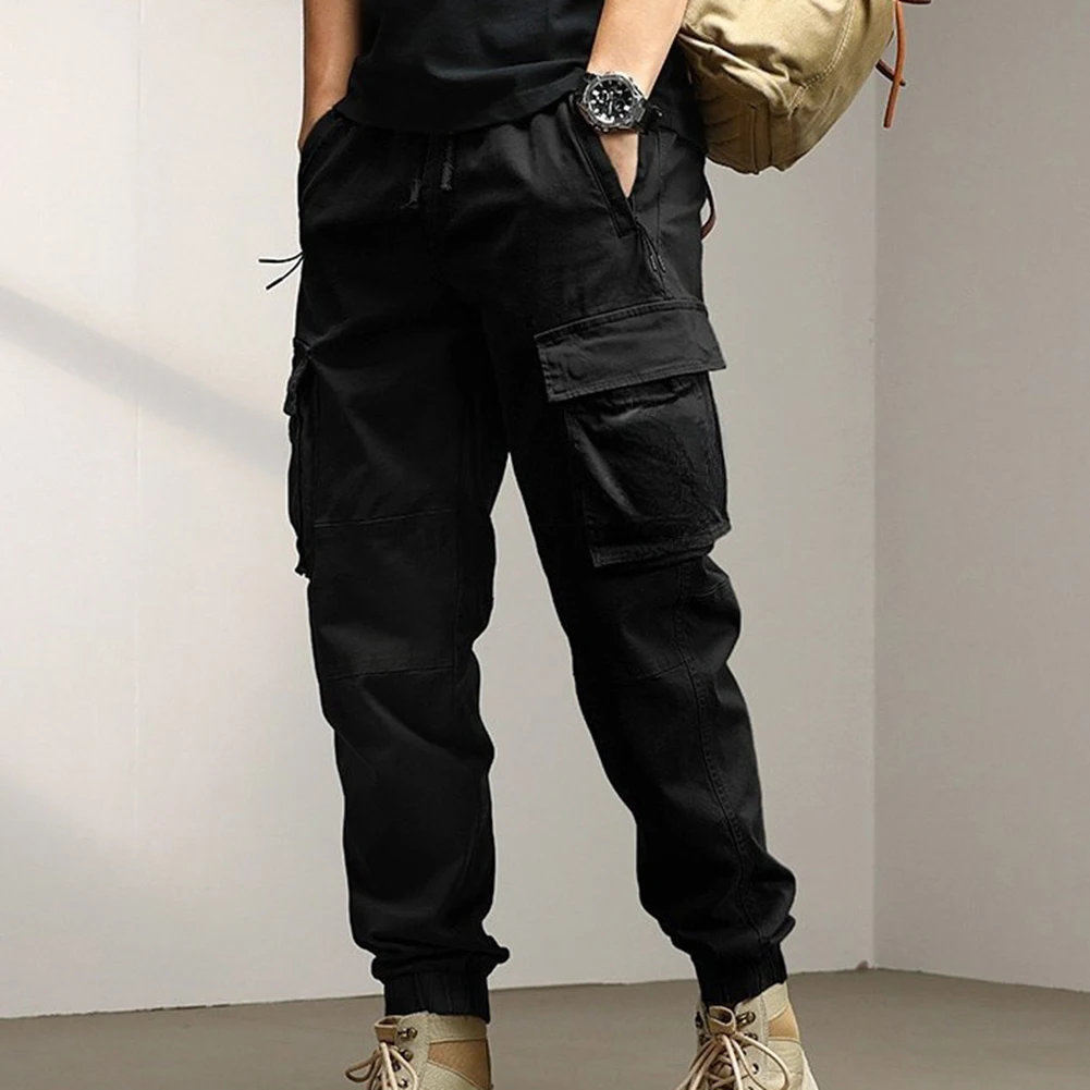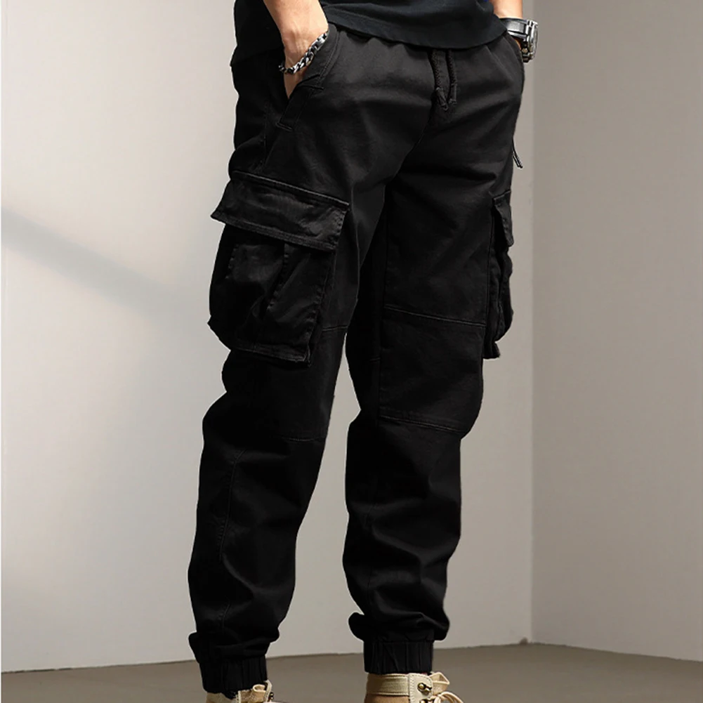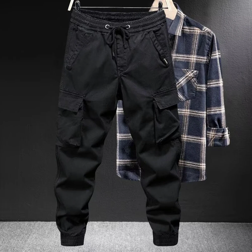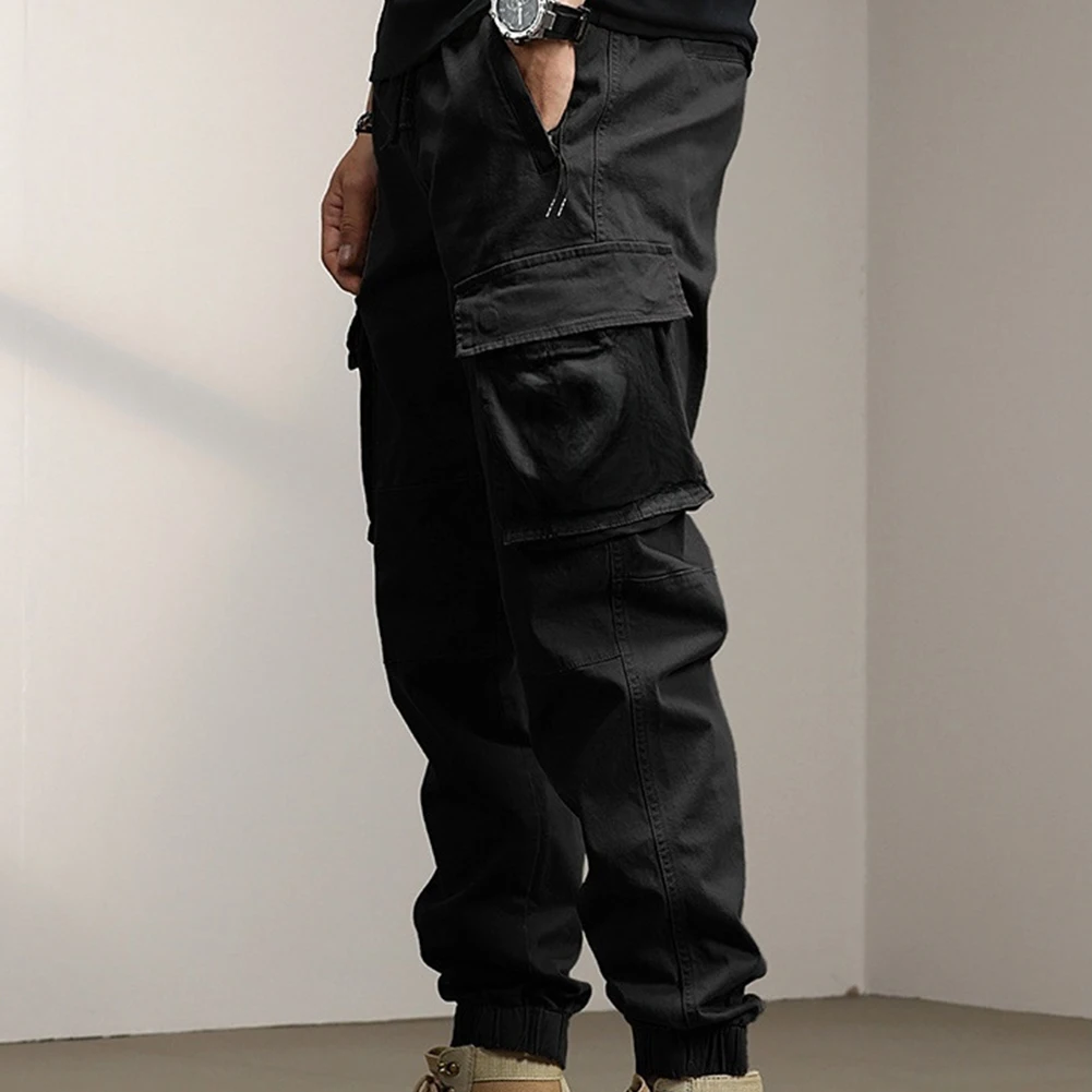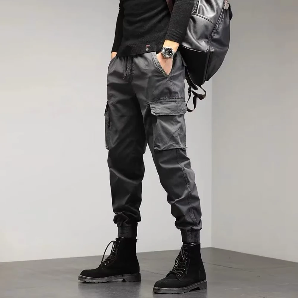 Solid Cargo Pants for Men Casual Loose Fit Ankle Banded Trousers Suitable for Spring and Autumn Grey Black Green