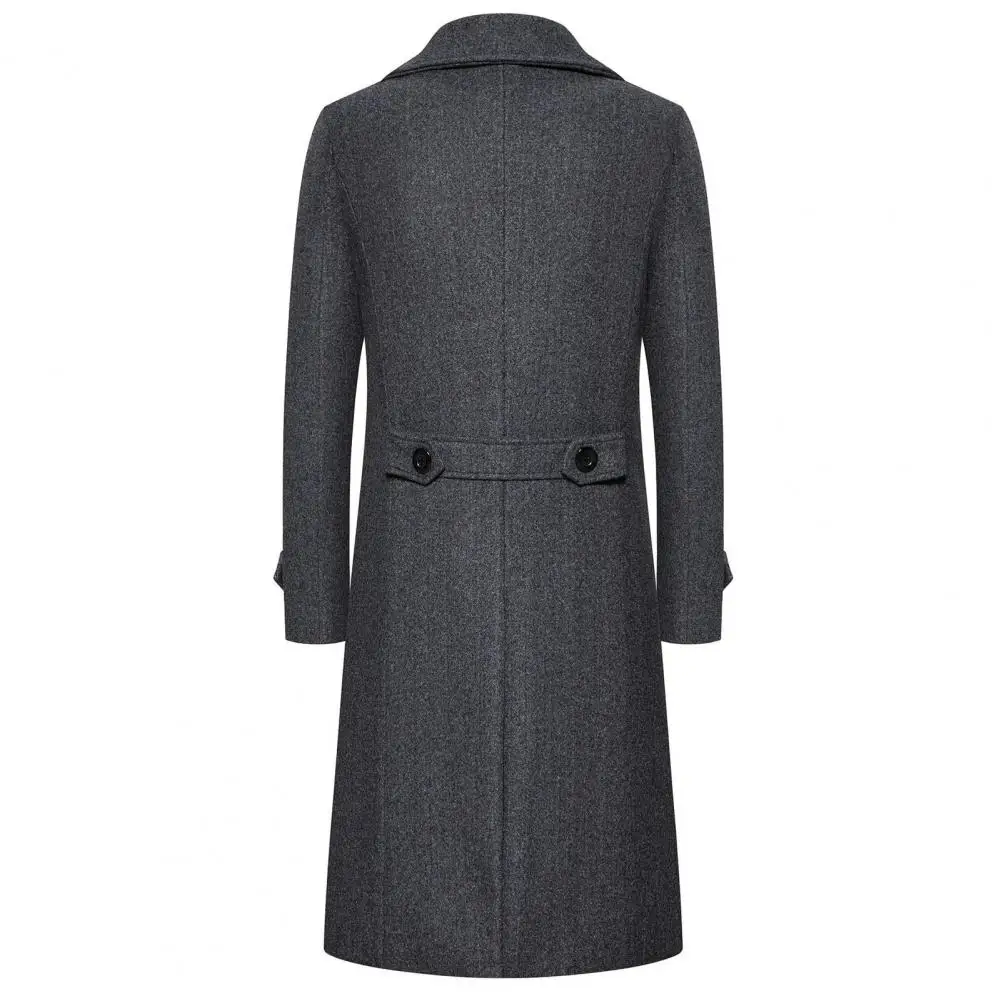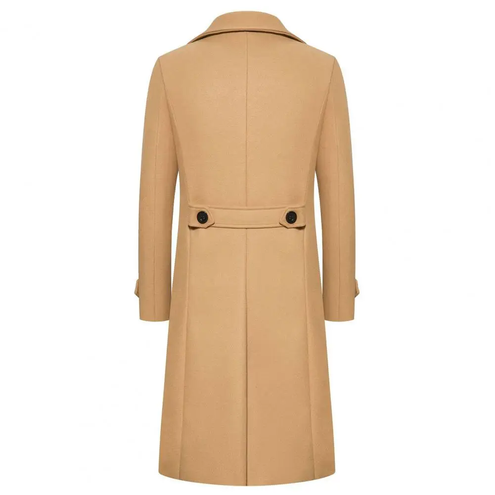 Solid Color Coat Long Coat Double-breasted Men's Mid Length Overcoat with Windproof Warmth Slim Fit Solid Color Cardigan Buttons