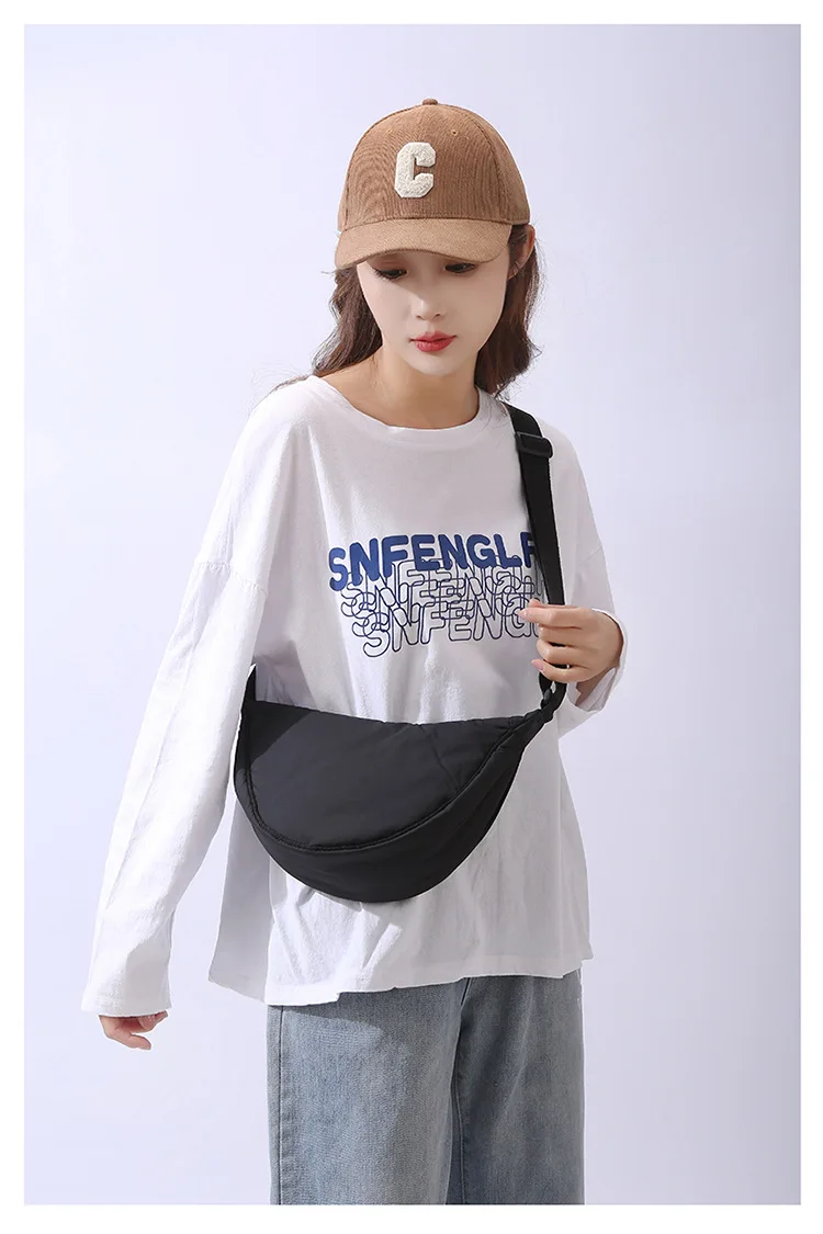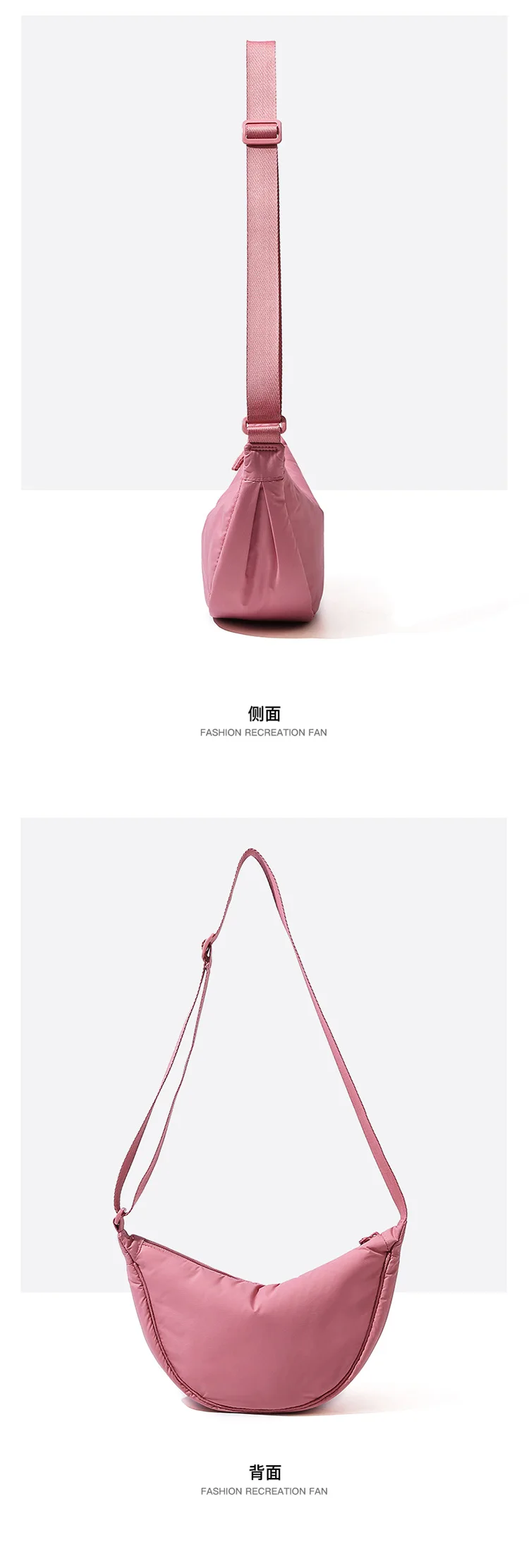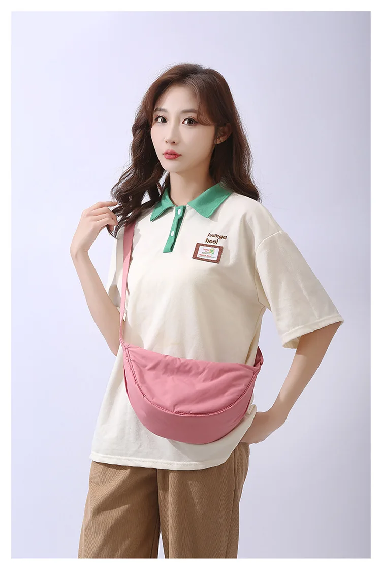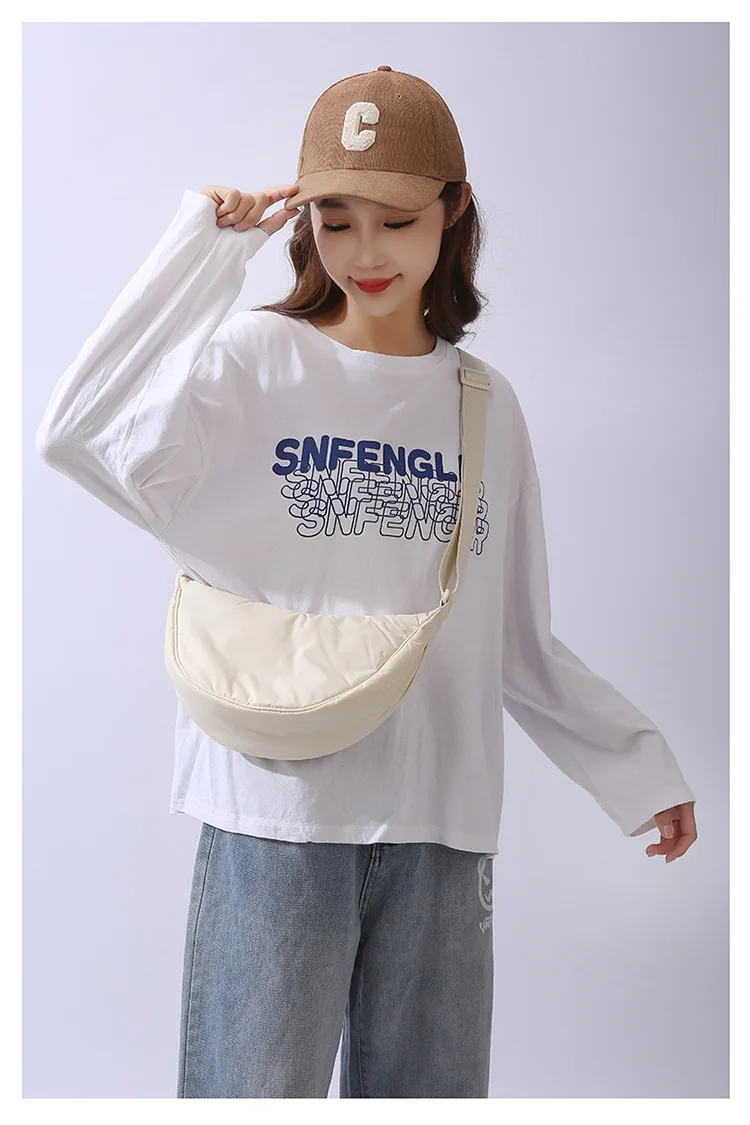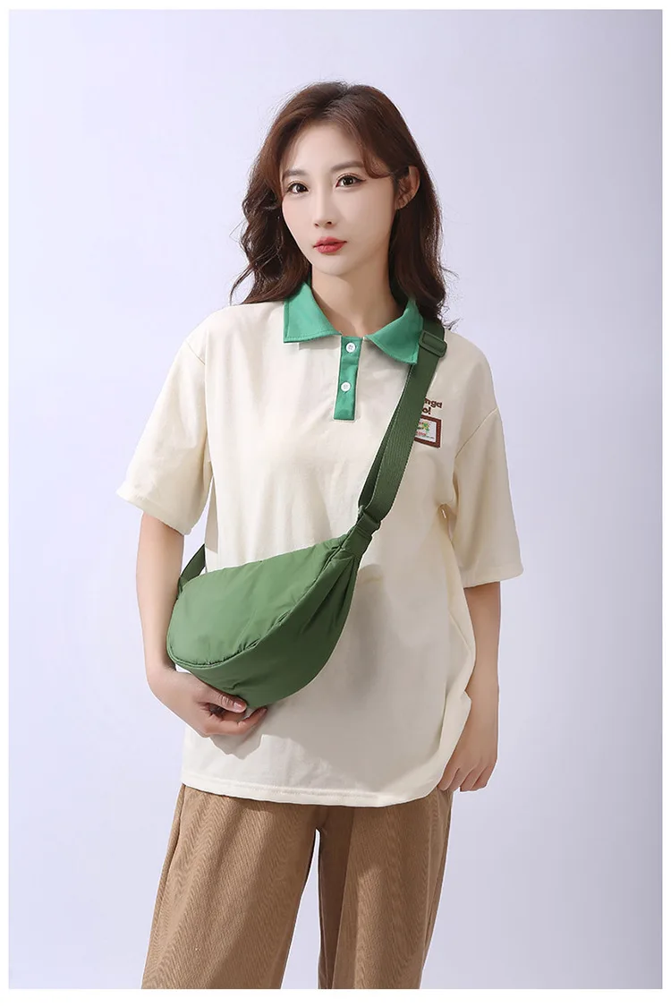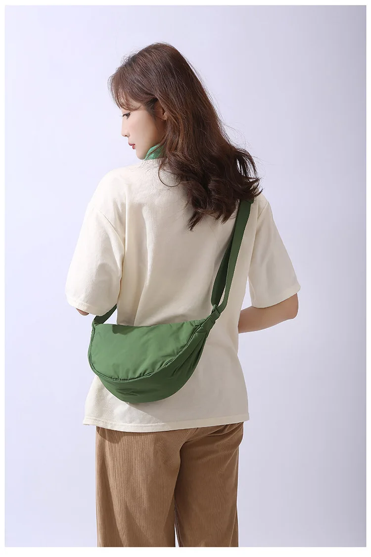 Solid Color Women's Portable Shoulder Bag Simple Female Nylon Cloth Padded Crossbody Bags Travel Purse Handbags Messenger Bag