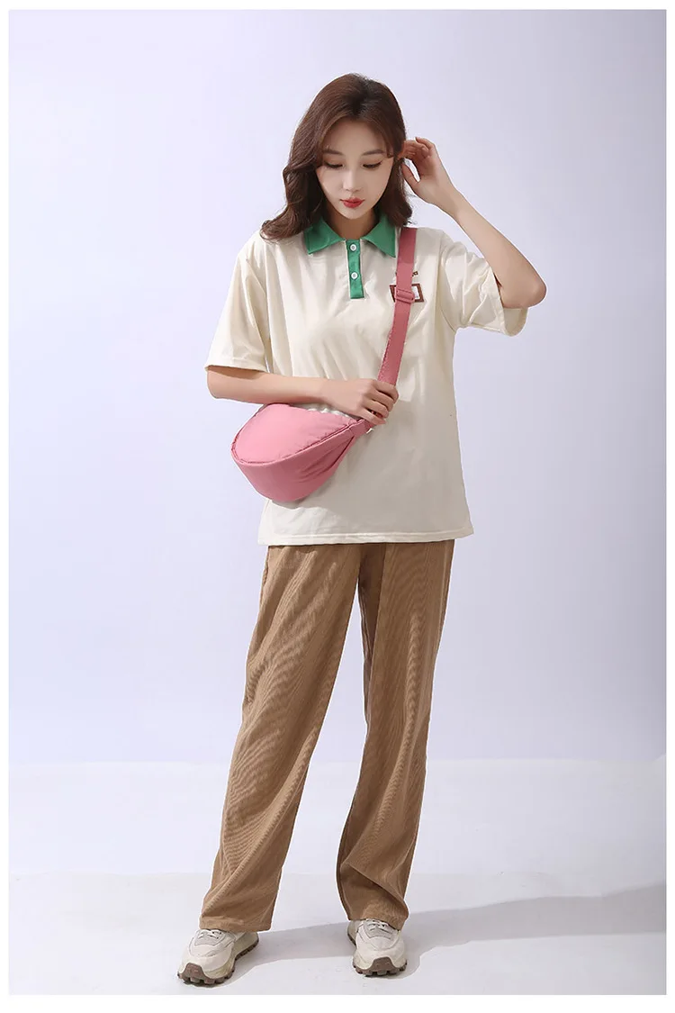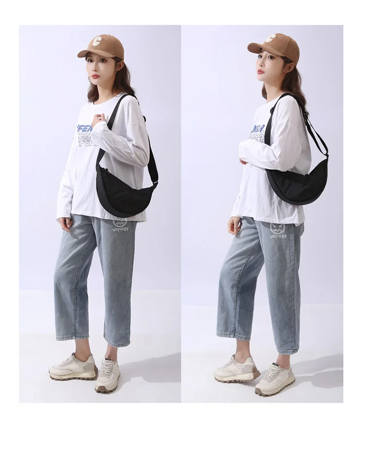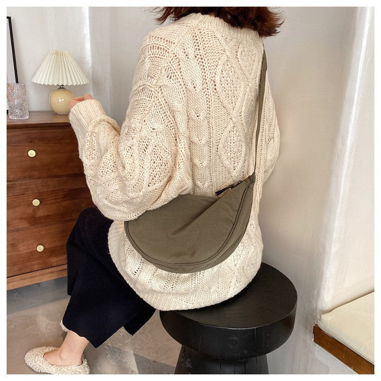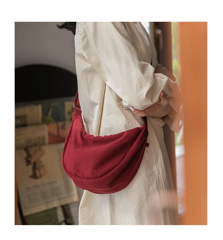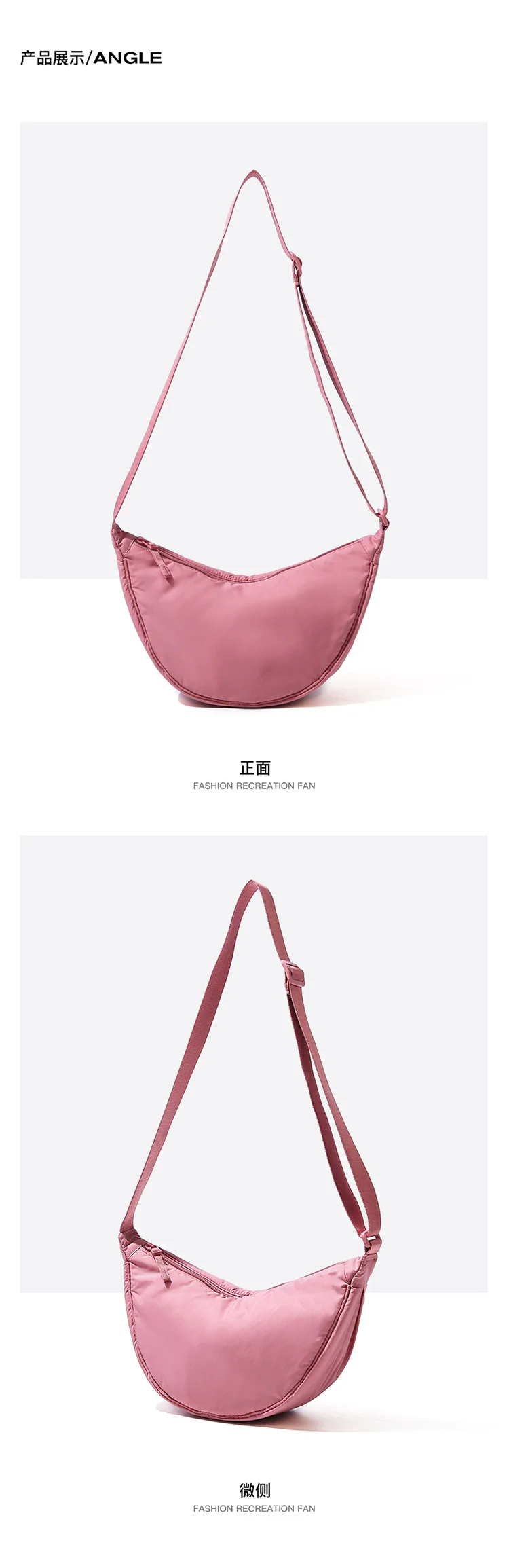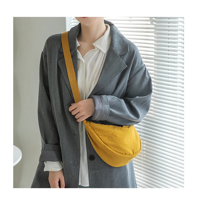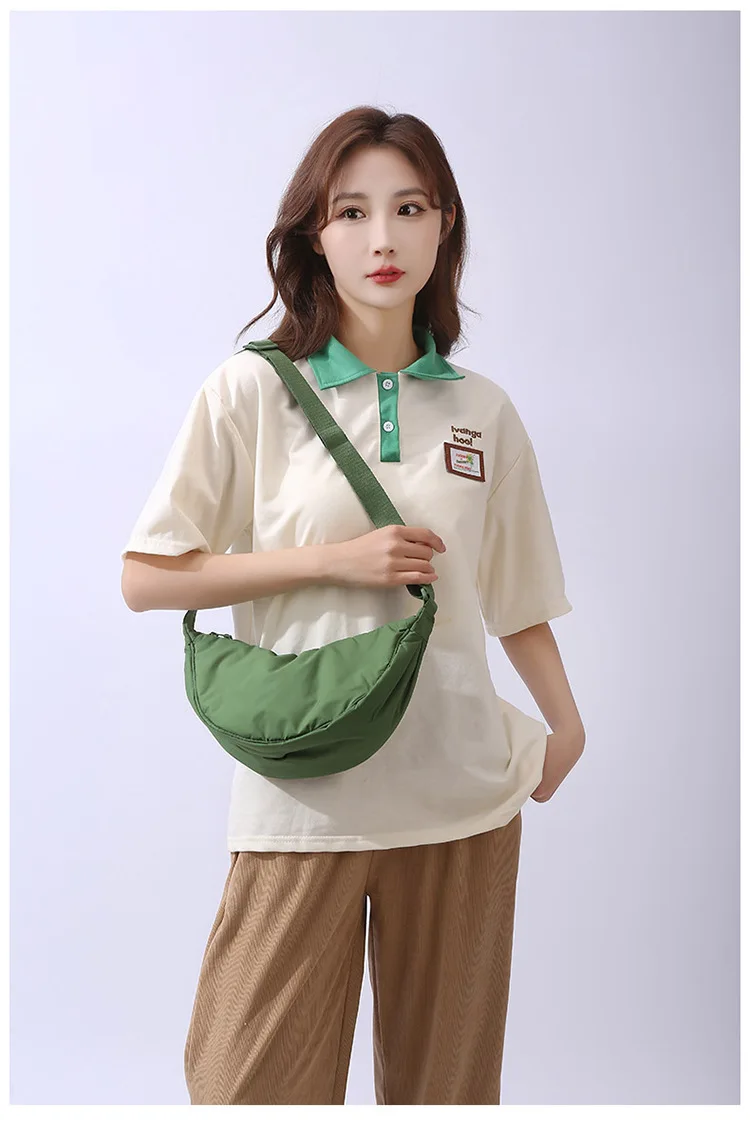 Solid Color Women's Portable Shoulder Bag Simple Female Nylon Cloth Padded Crossbody Bags Travel Purse Handbags Messenger Bag