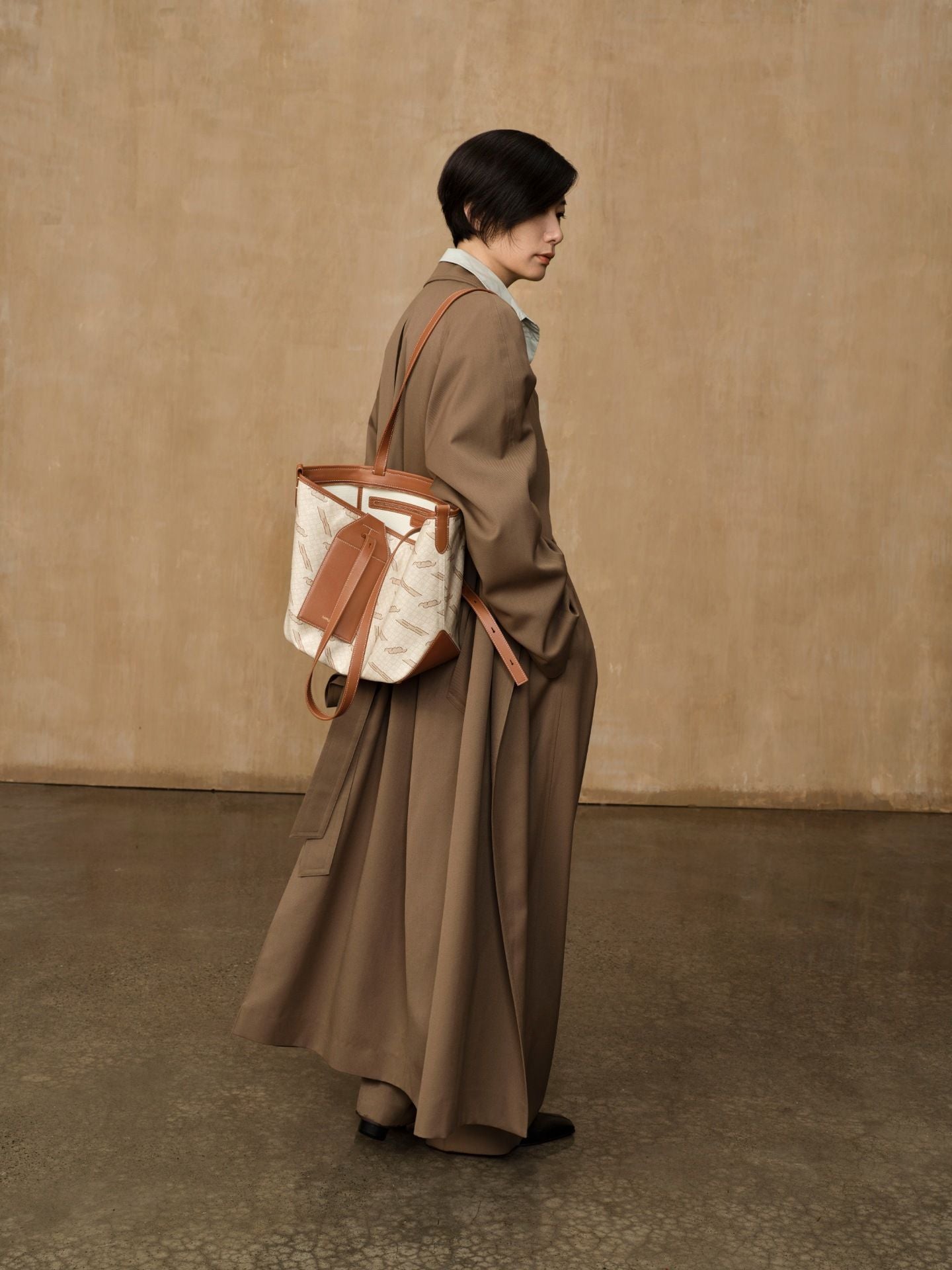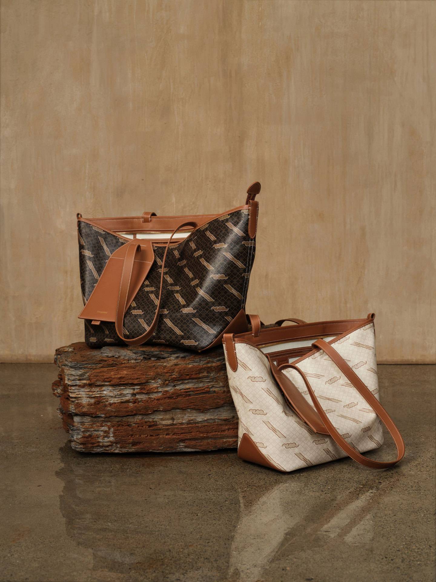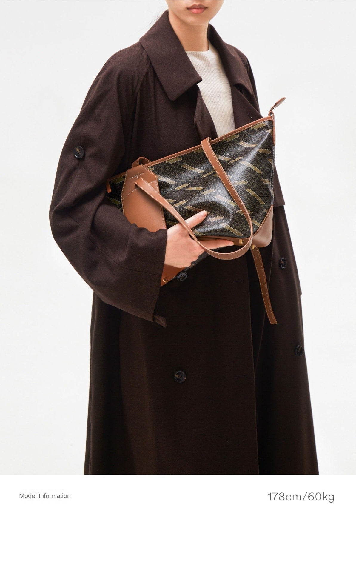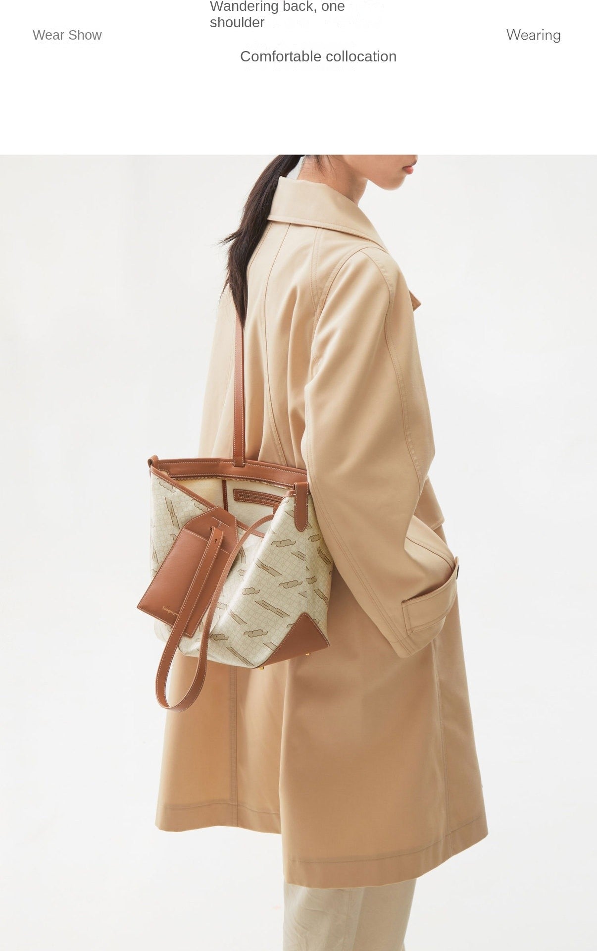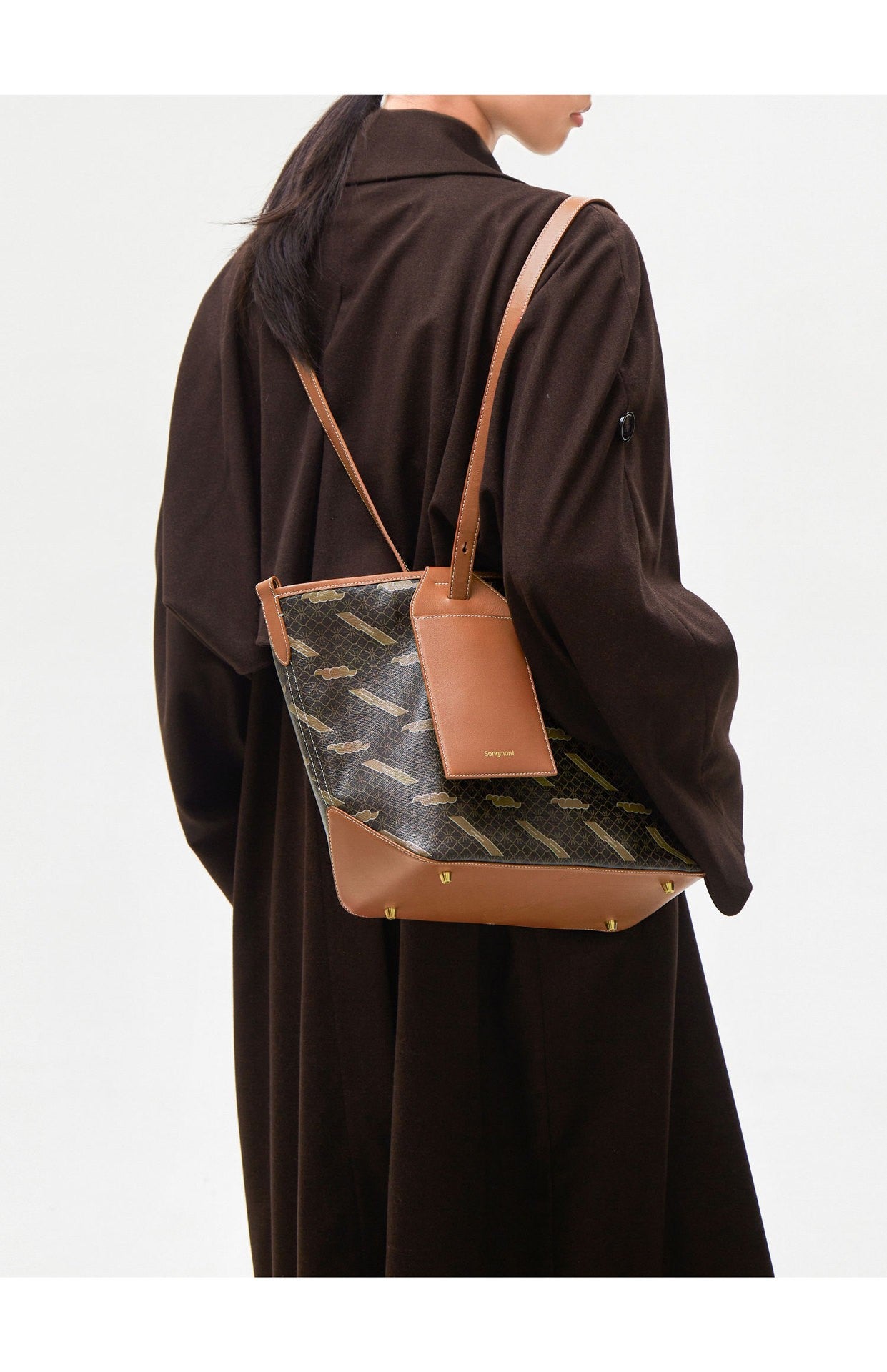 Songmont Designer Tote Bag Signature Monogram Print PU Material Lightweight Durable Womens Bag Zipper Top Polyester Lining