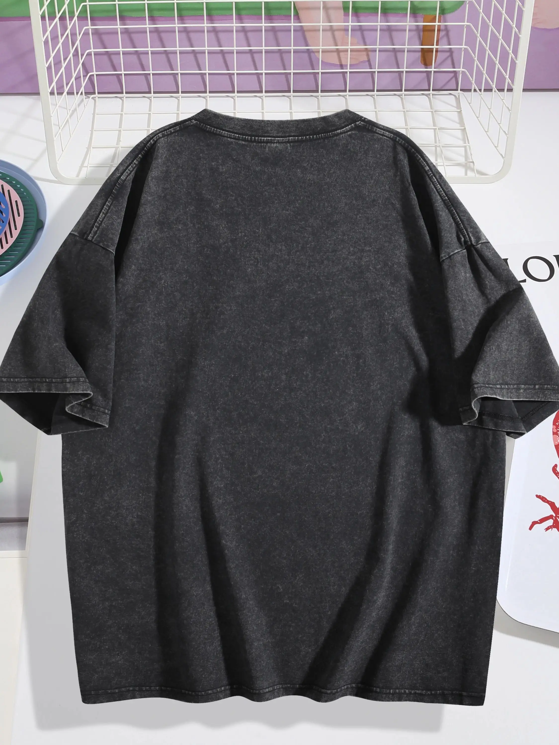 Spider Pattern Rint Men's Summer Retro Style Washed Water T-Shirt Casual Short Sleeved Basic Men's Top 230G