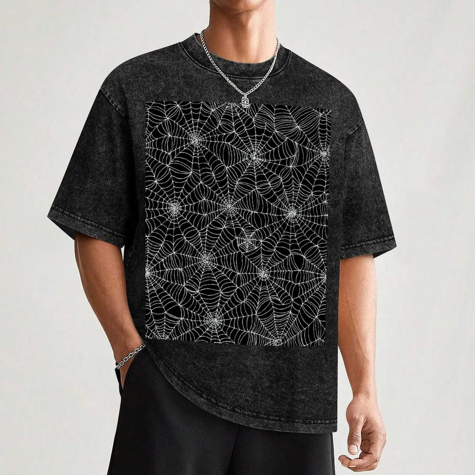 Spider web pattern - white on black by Cecca Designs T-Shirt plain Men's t-shirts