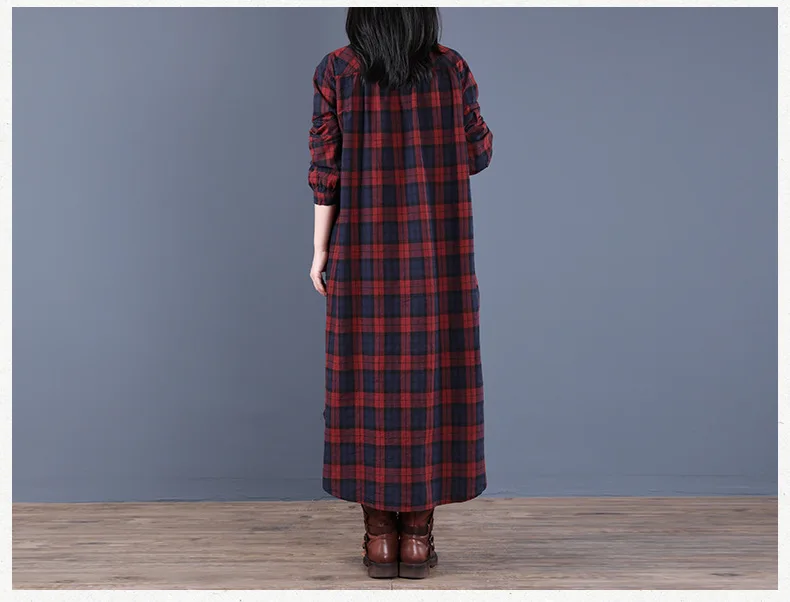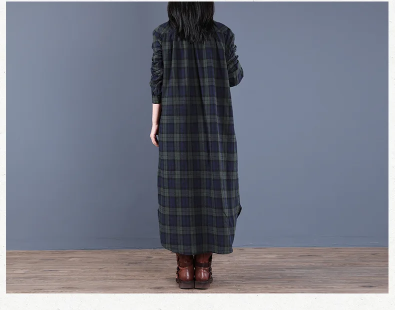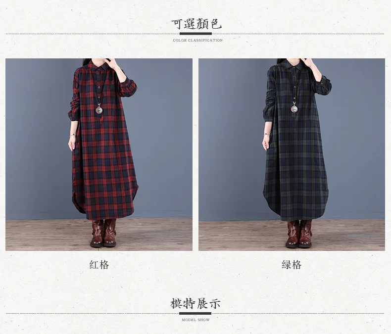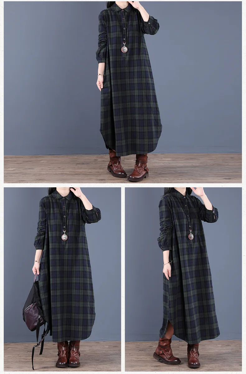 Spring And Autumn New Women's Fashion Loose Splicing Plaid Collar Button Long Sleeve Dress Medium Length Shirt Maxi Dresses 2026