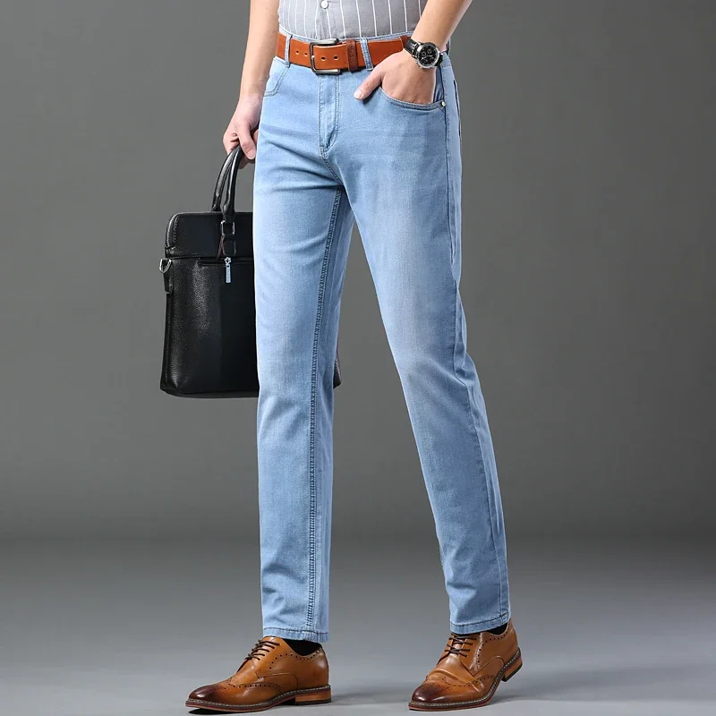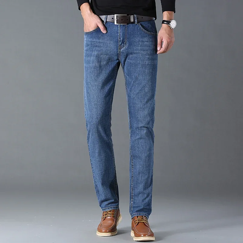 Spring Autumn Business Men Jeans Casual Straight Stretch Fashion Classic Black Sky Blue Grey Work Denim Trousers Brand Clothing