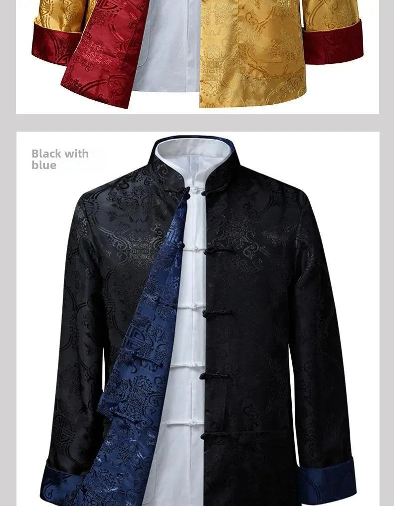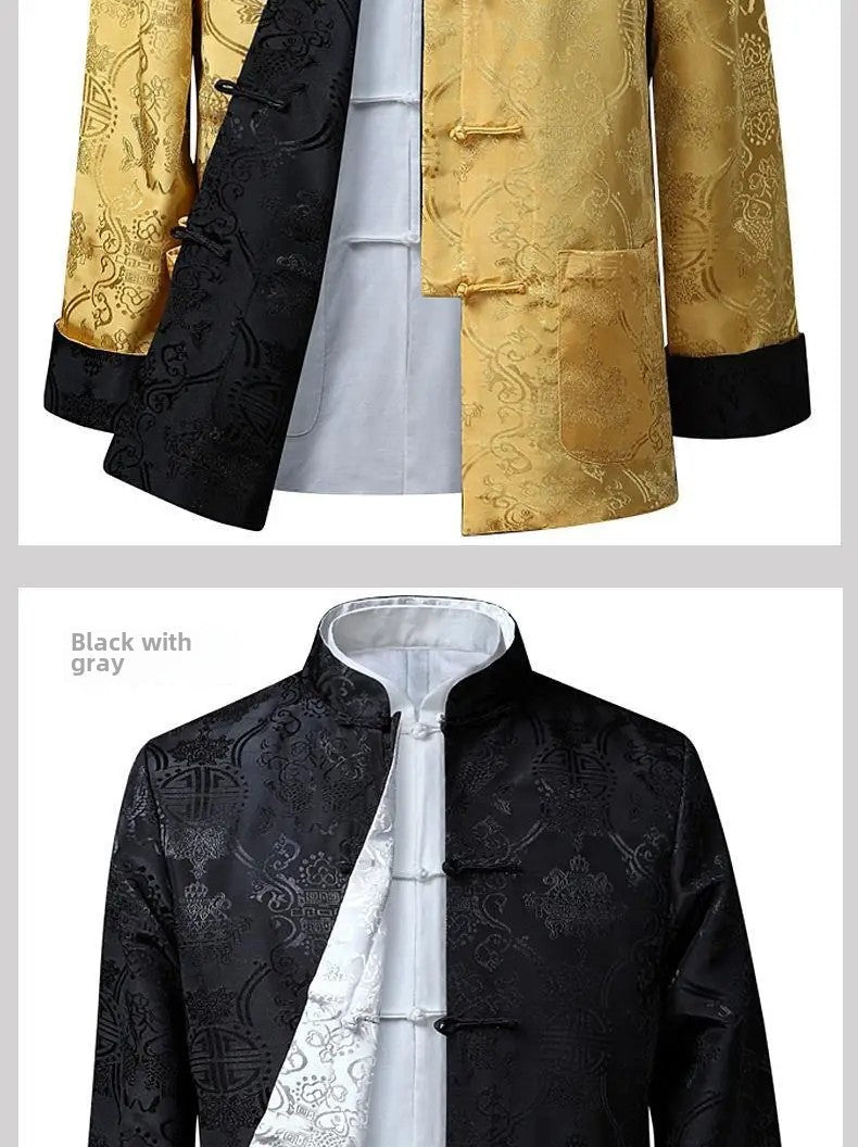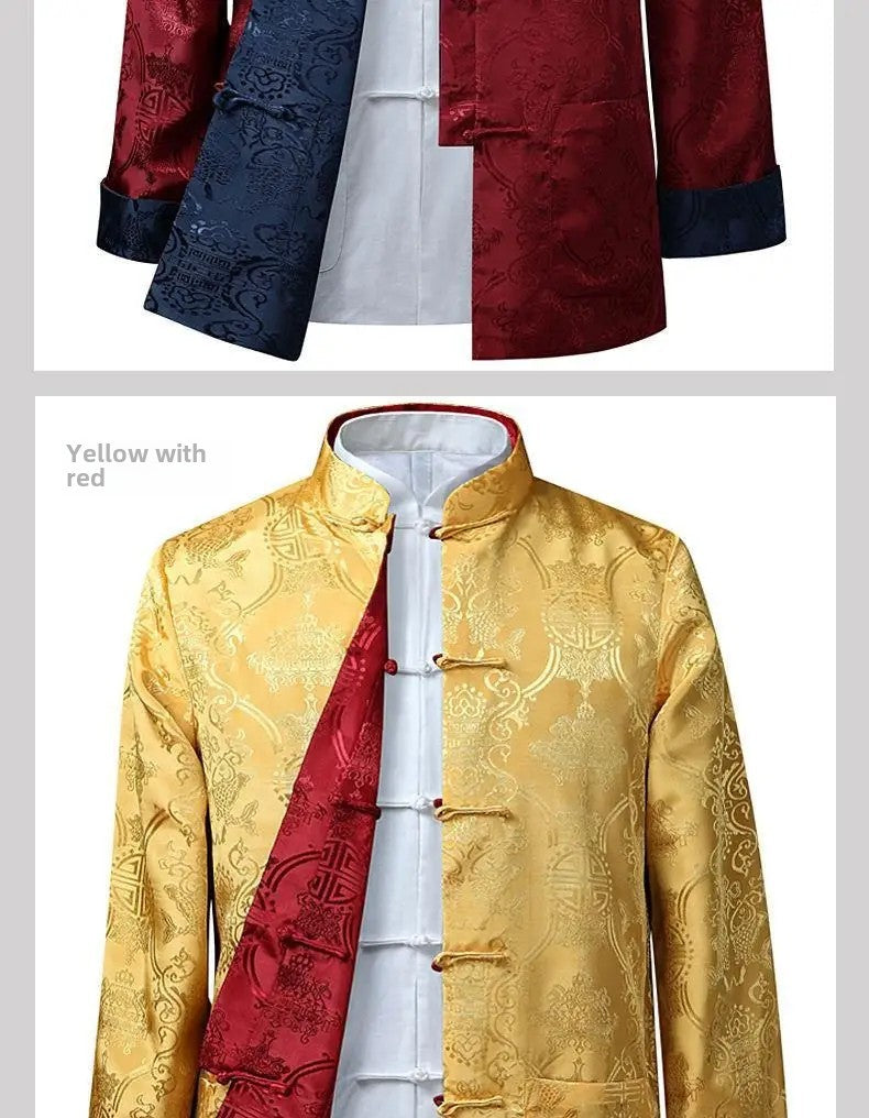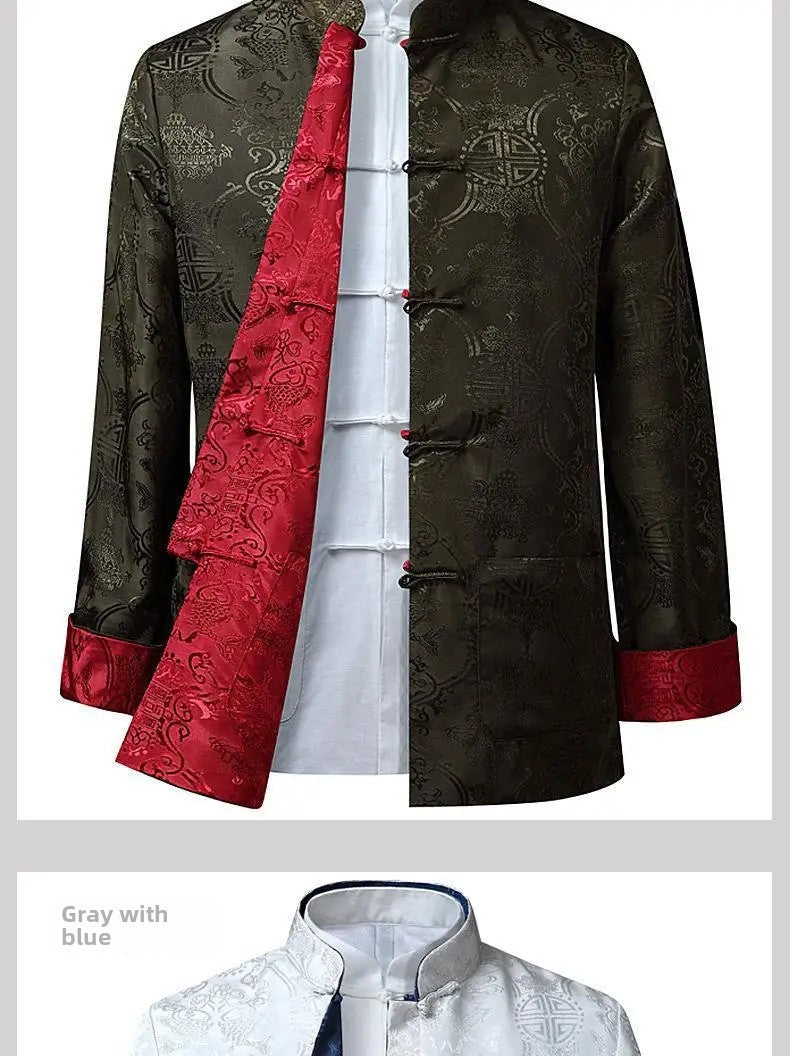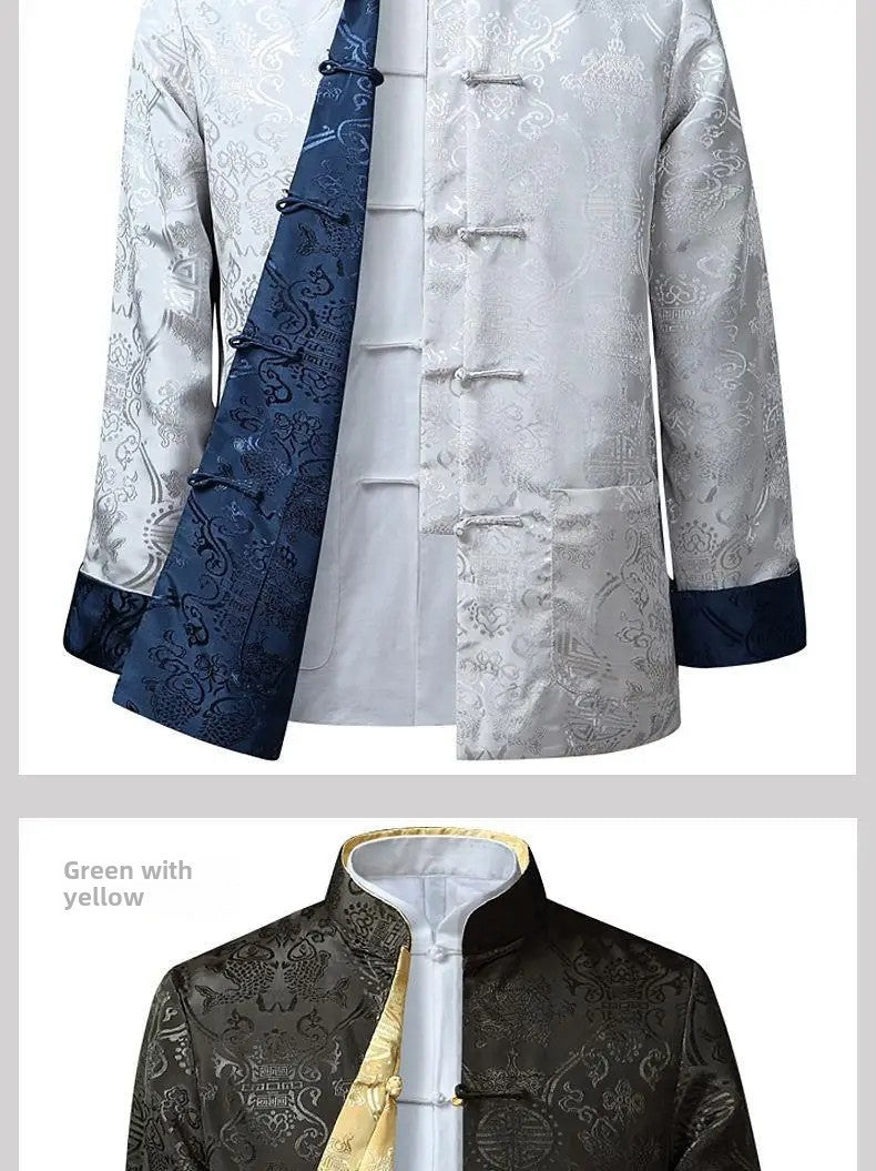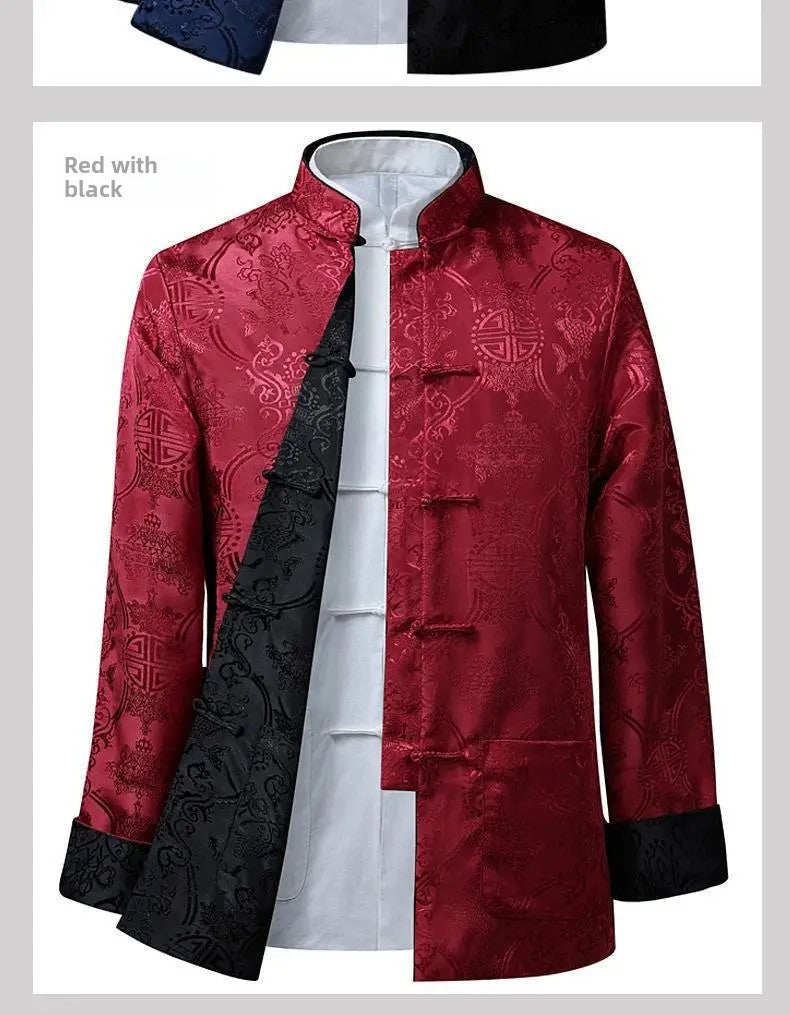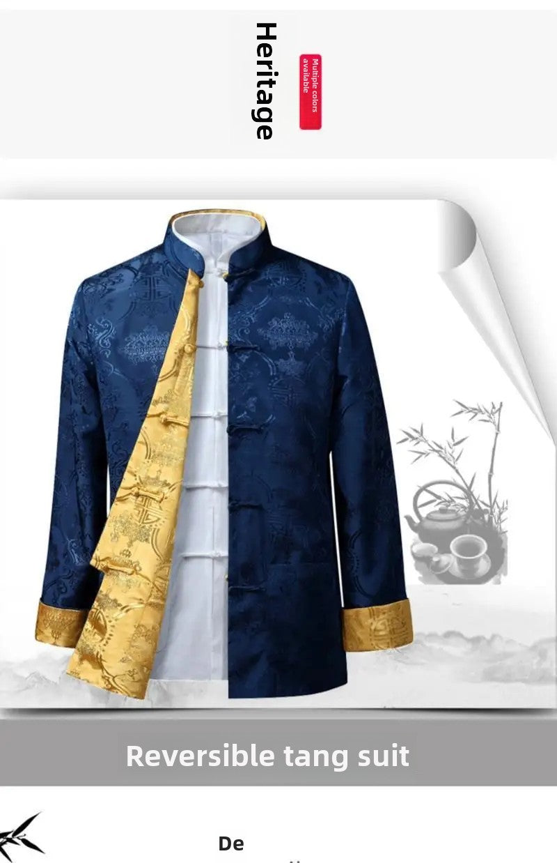 Spring Autumn Double-Sided Wearable Vintage Blazer Jacket Men's Casual Chinese Style Middle-Aged And Elderly Fashion Outerwear