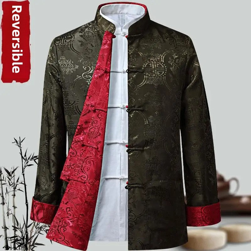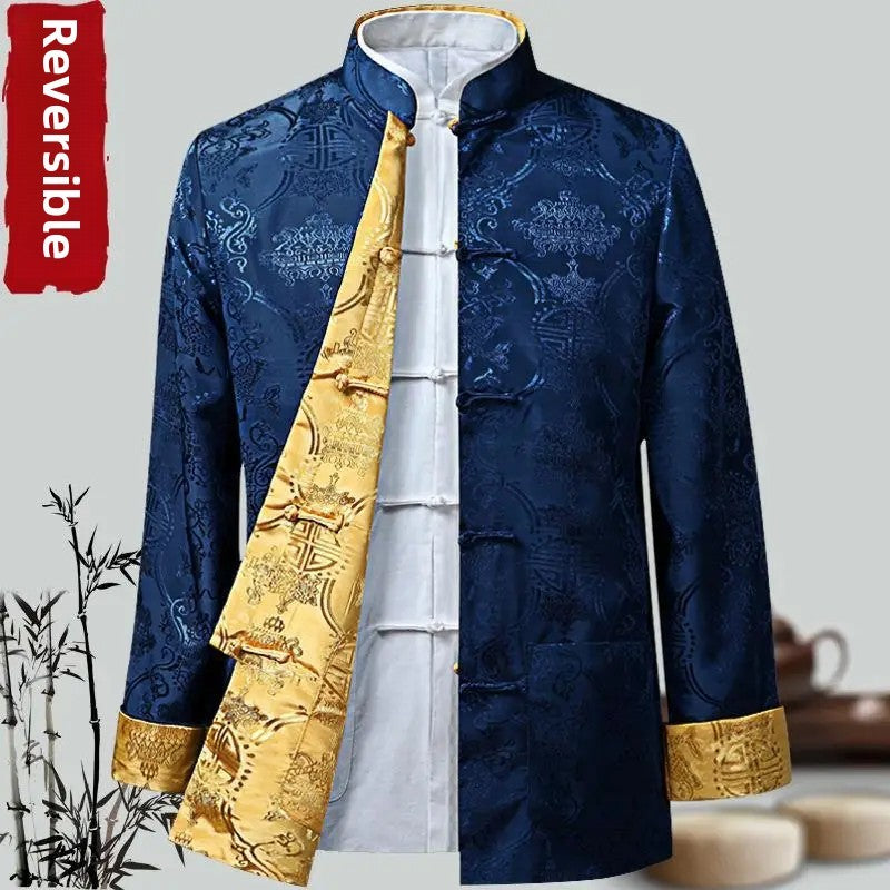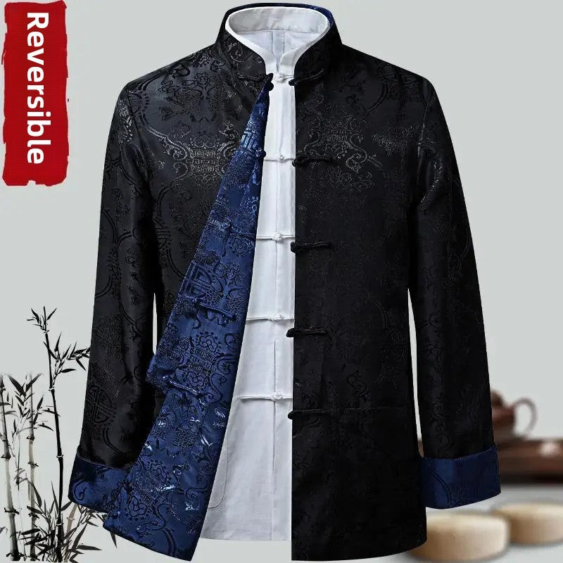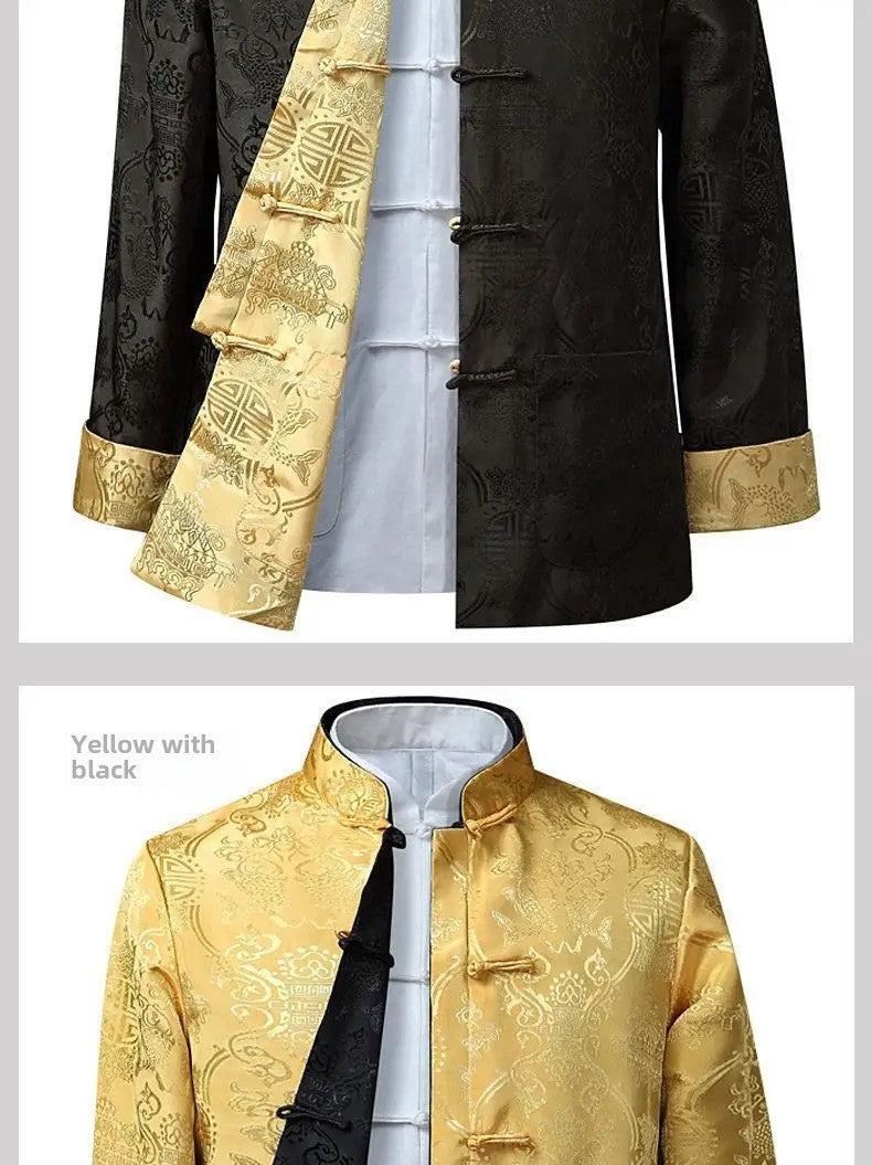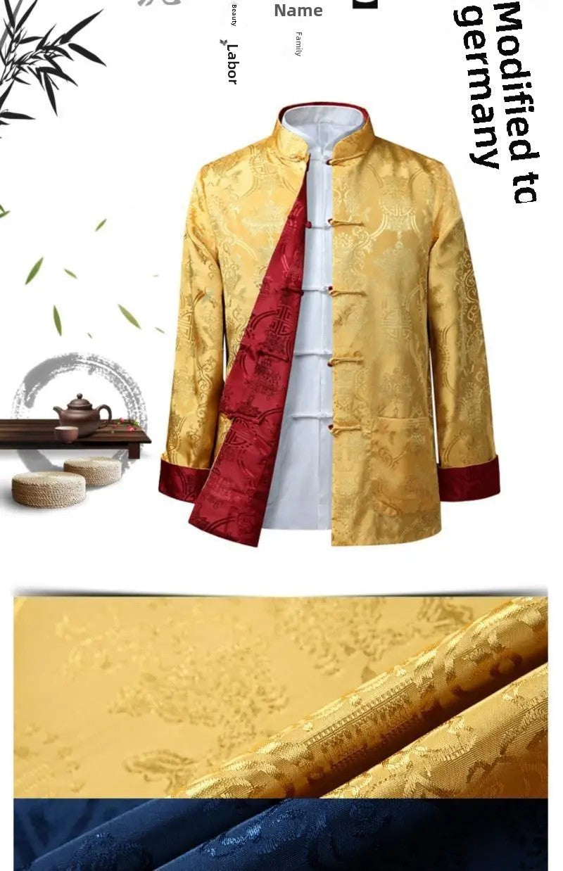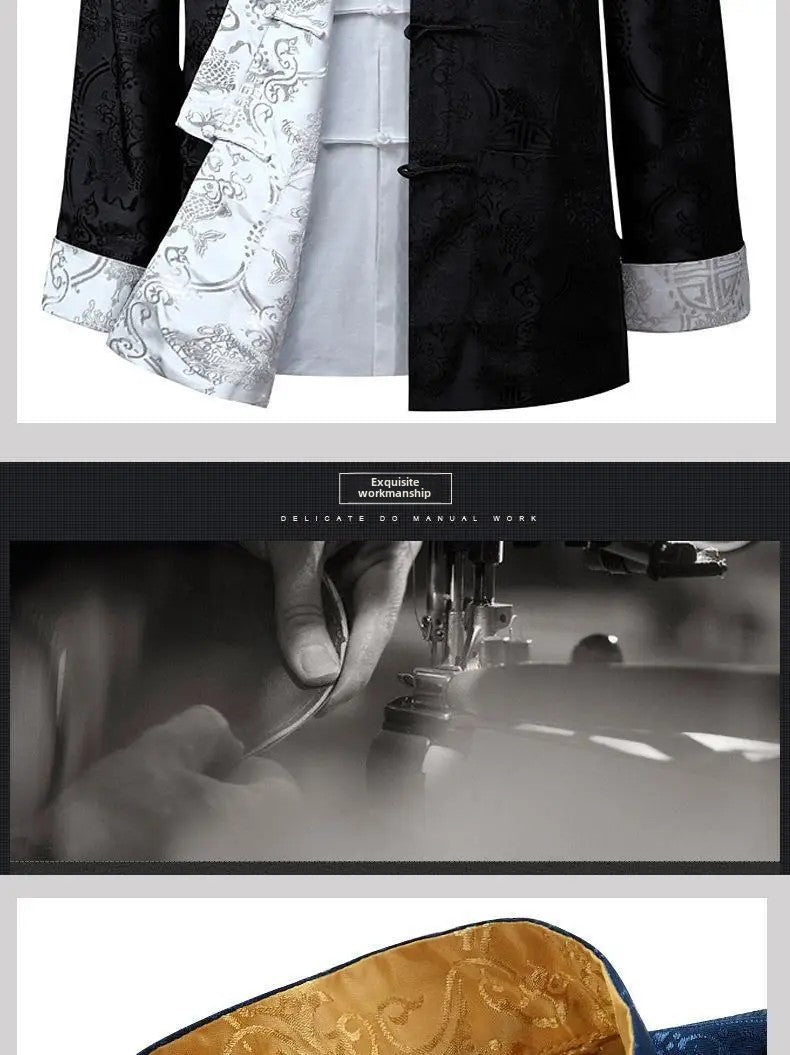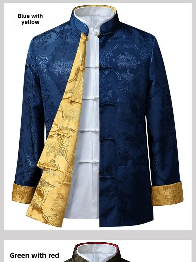 Spring Autumn Double-Sided Wearable Vintage Blazer Jacket Men's Casual Chinese Style Middle-Aged And Elderly Fashion Outerwear
