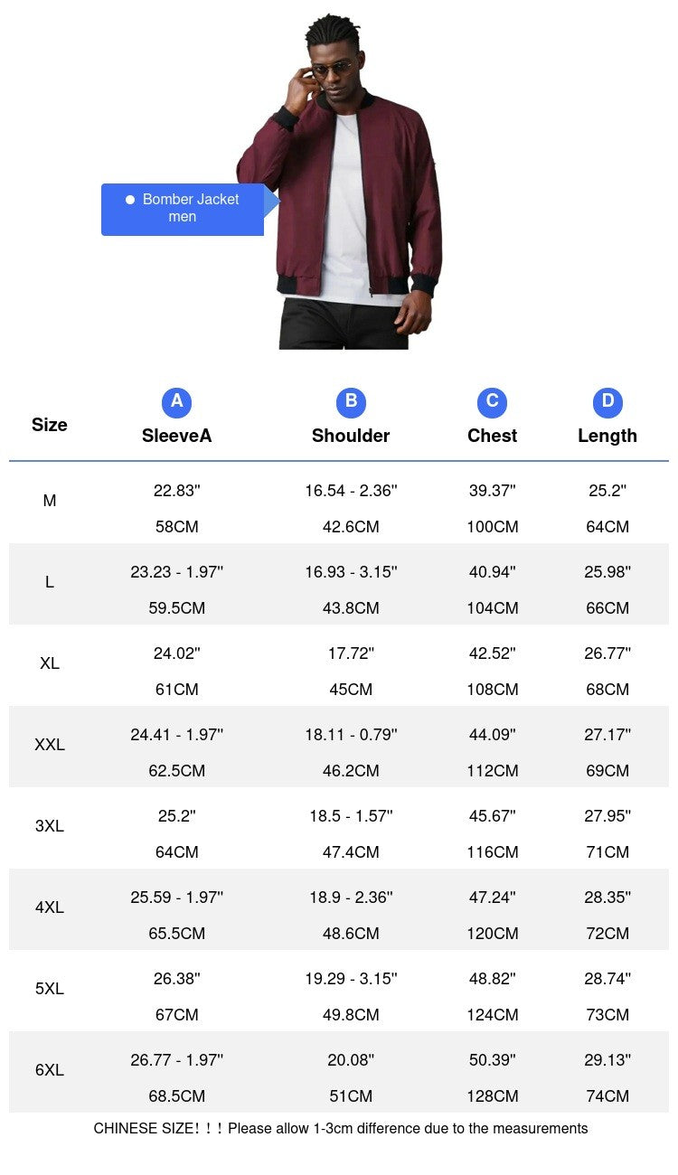 Spring Autumn Men's Bomber Jacket Casual Lightweight Jacket For Men Sports Windbreaker Zip Up Coat with Pockets Clothing