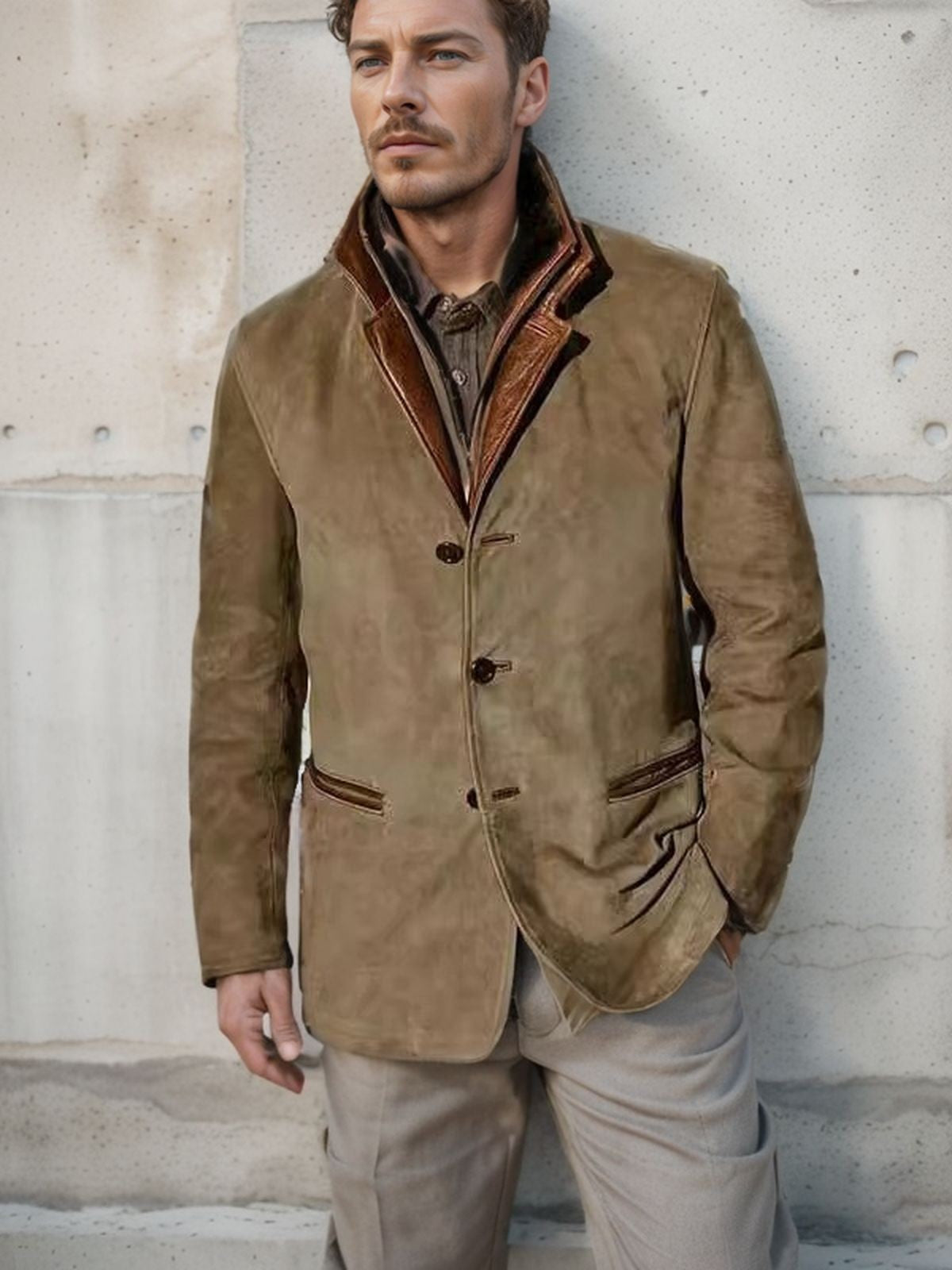 Spring Autumn New Men's Jackets Casual Retro Formal Coats for Men Collar Splicing Color Contrasting Tops Men Clothing