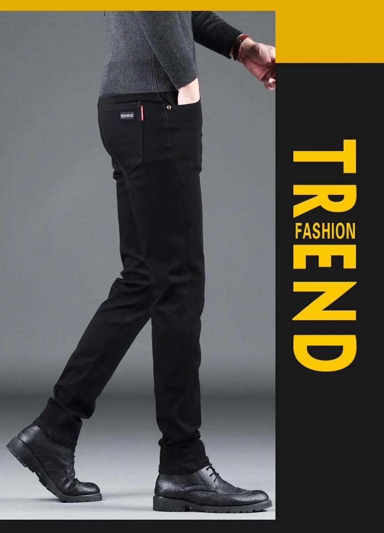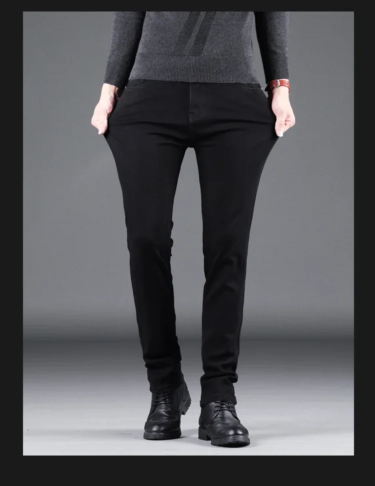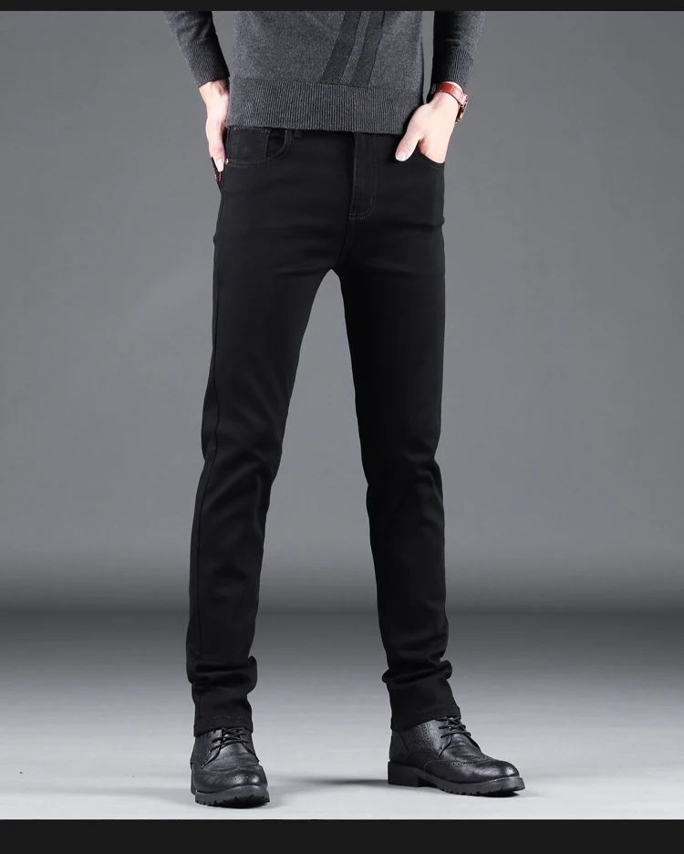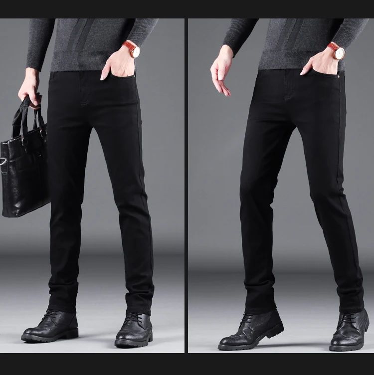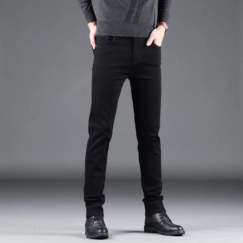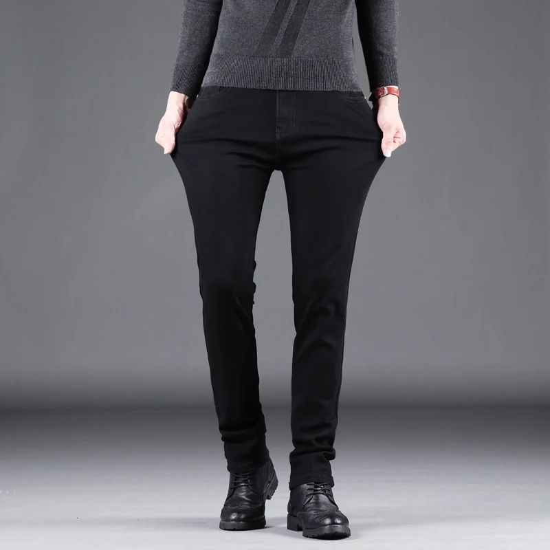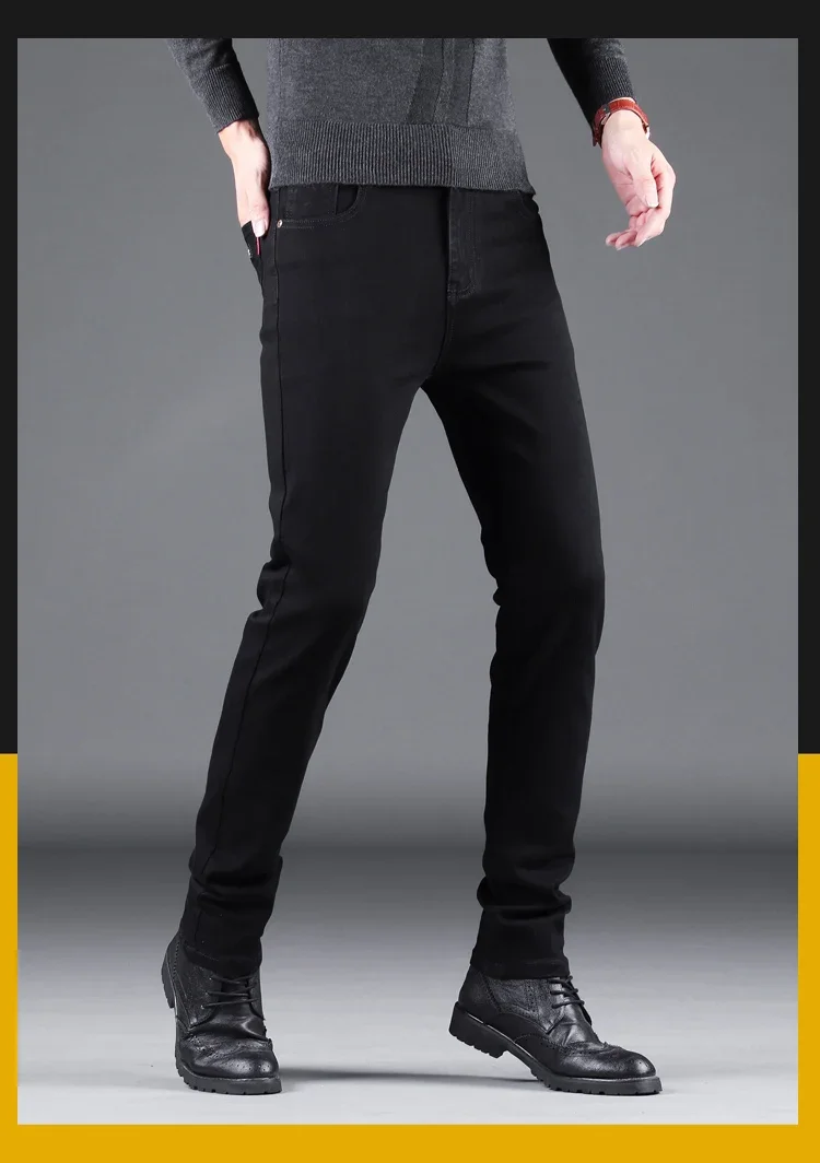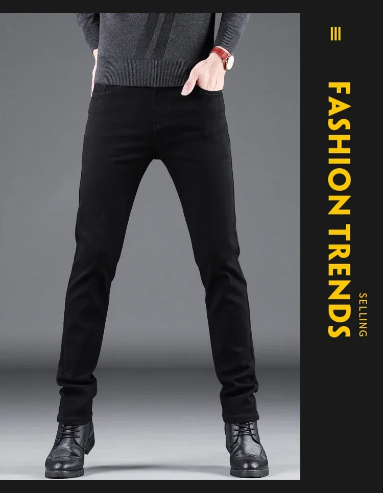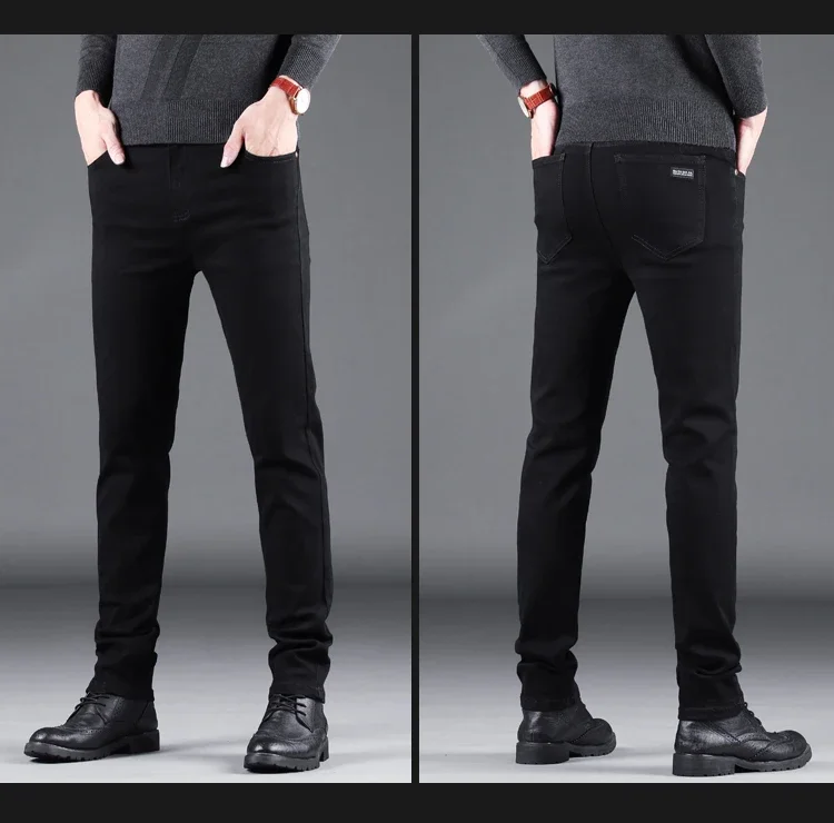 Spring Autumn New Men's Pure Black Slim Jeans Elastic Straight Pants Business Fashion Leisure Korean Vintage Denim Pants Male