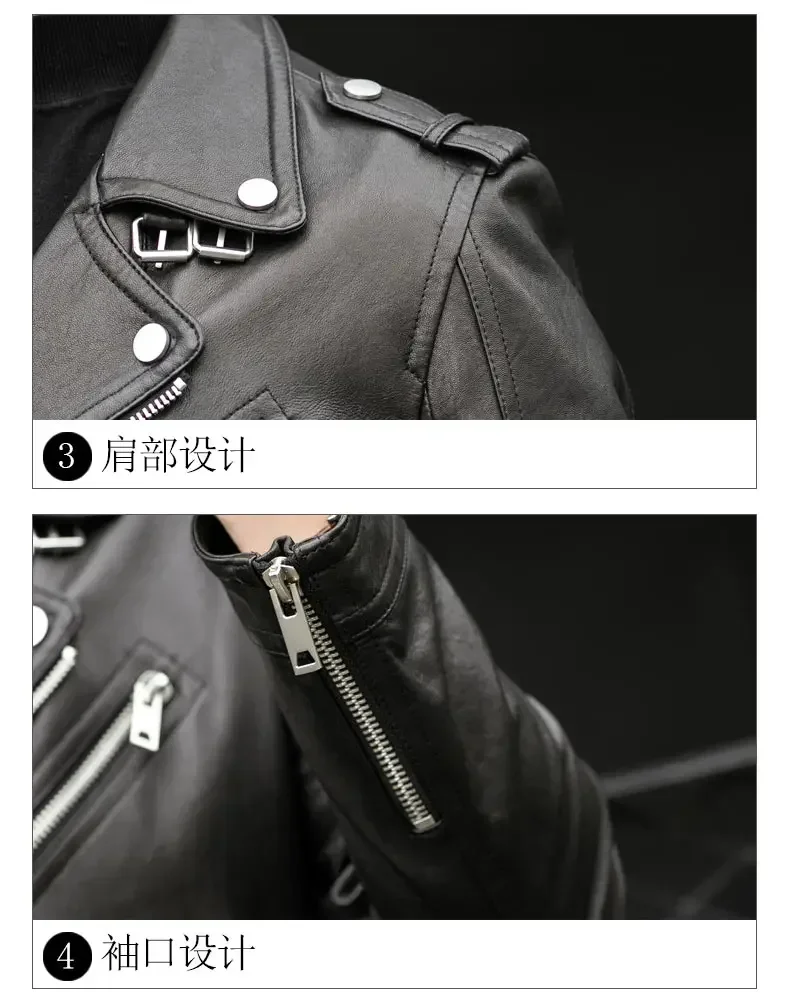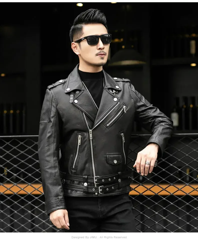 Spring Autumn Short Cool Black Leather Biker Jacket Men Zipper Long Sleeve Belt Plus Size European Fashion brand leather jackets