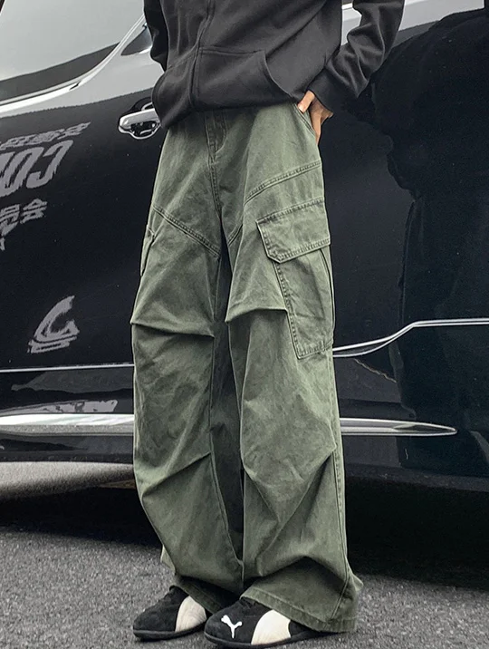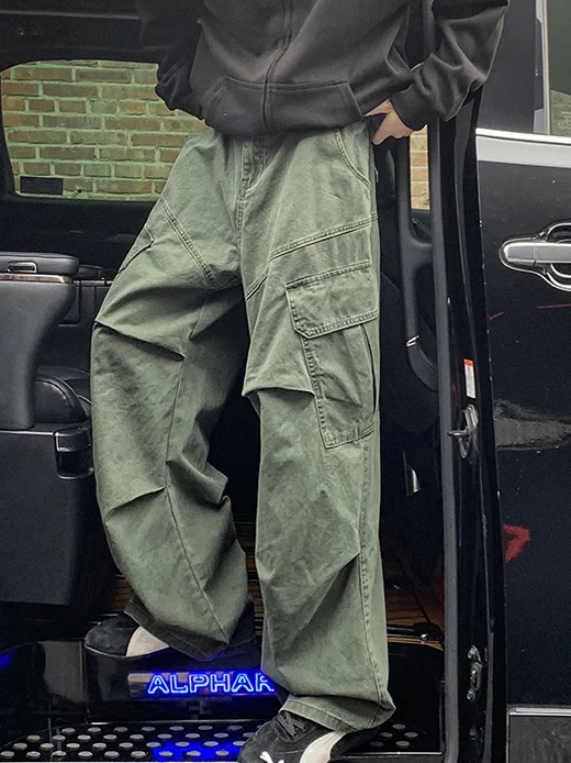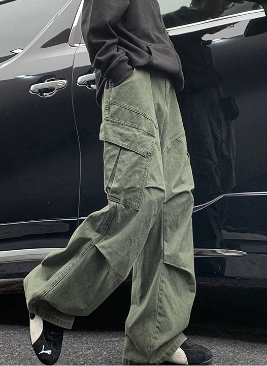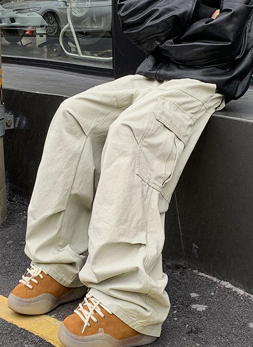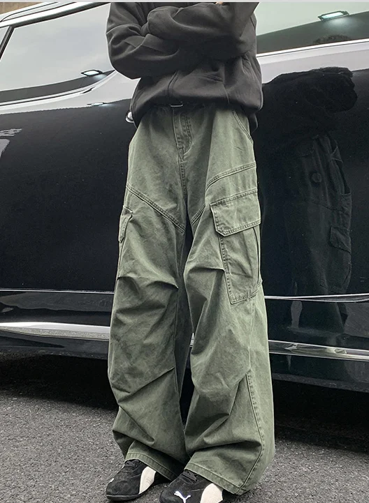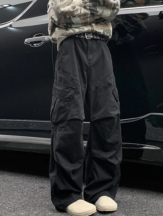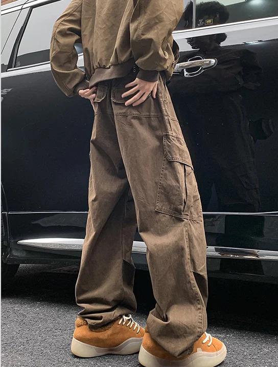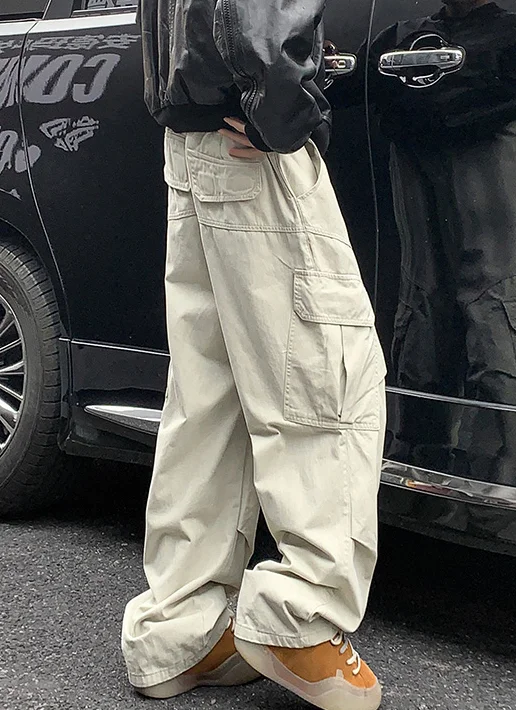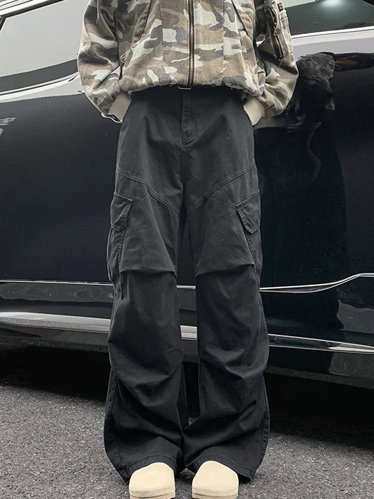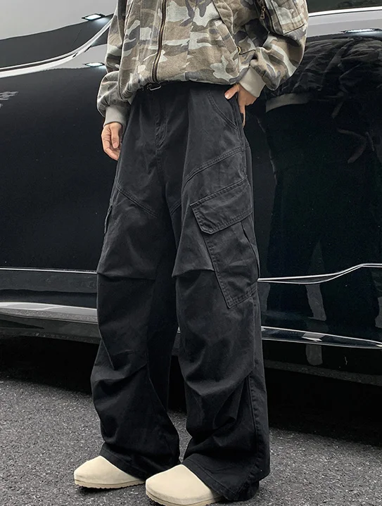 Spring Big Pocket Men's Cargo Pants Japanese Y2k Harajuku Loose Straight Wide Leg Trousers Baggy Pants Man Hip Hop Sweatpants