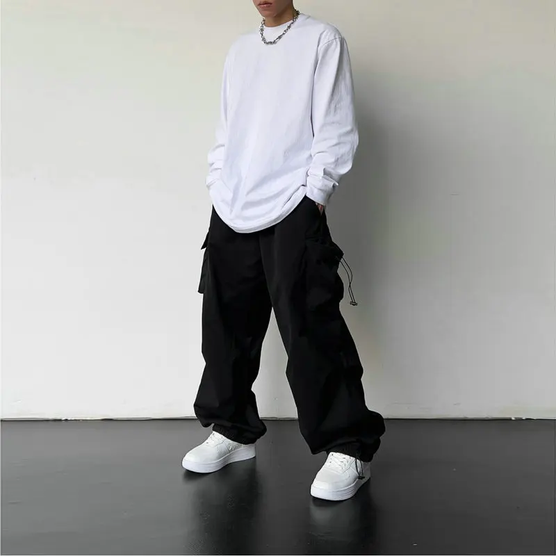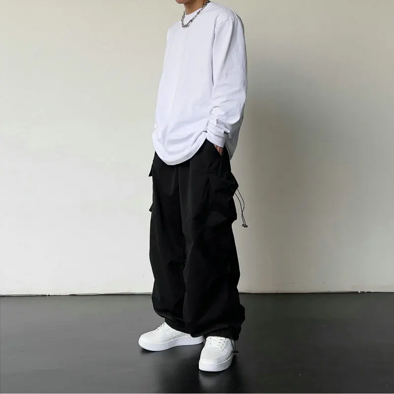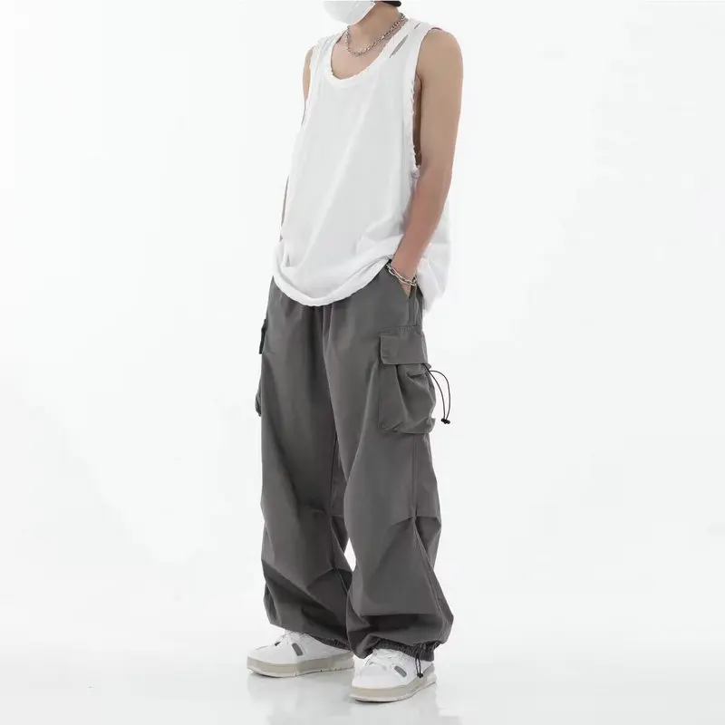 Spring Summer Fashion Casual Pans For Men Streetwear Solid Color Cargo Pants Elastic Waist Wide Leg Men's Joggers