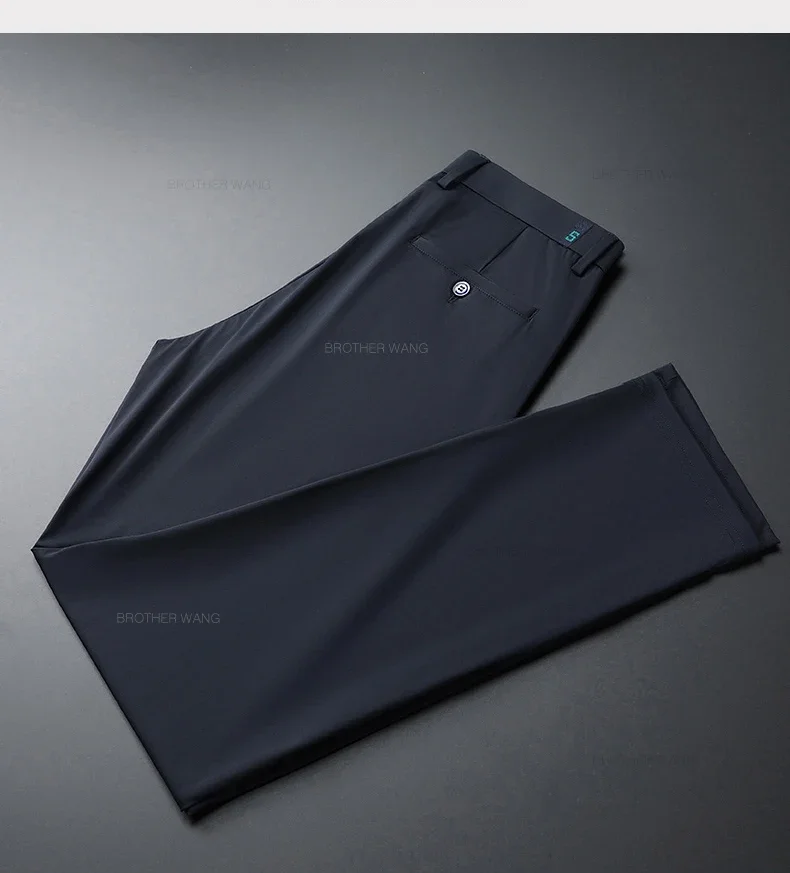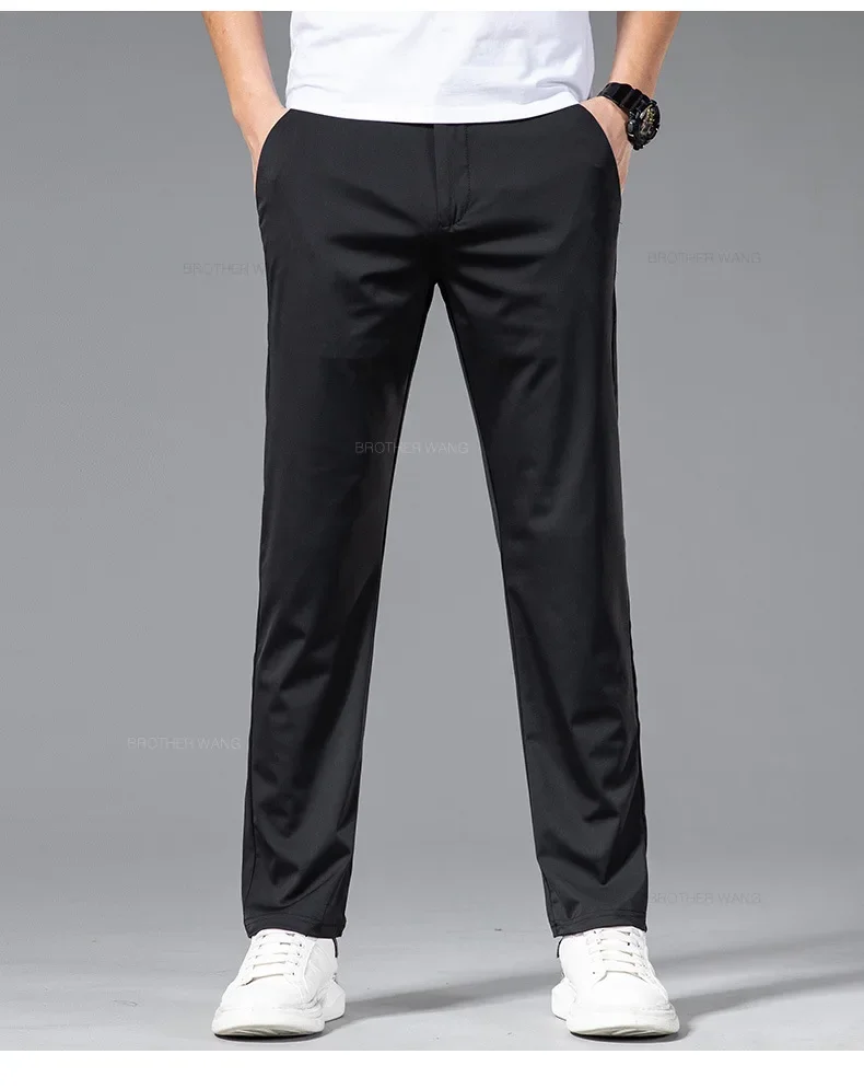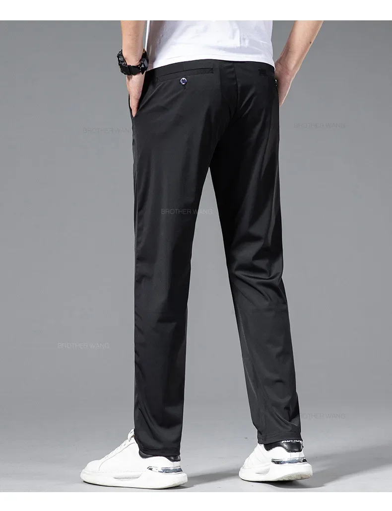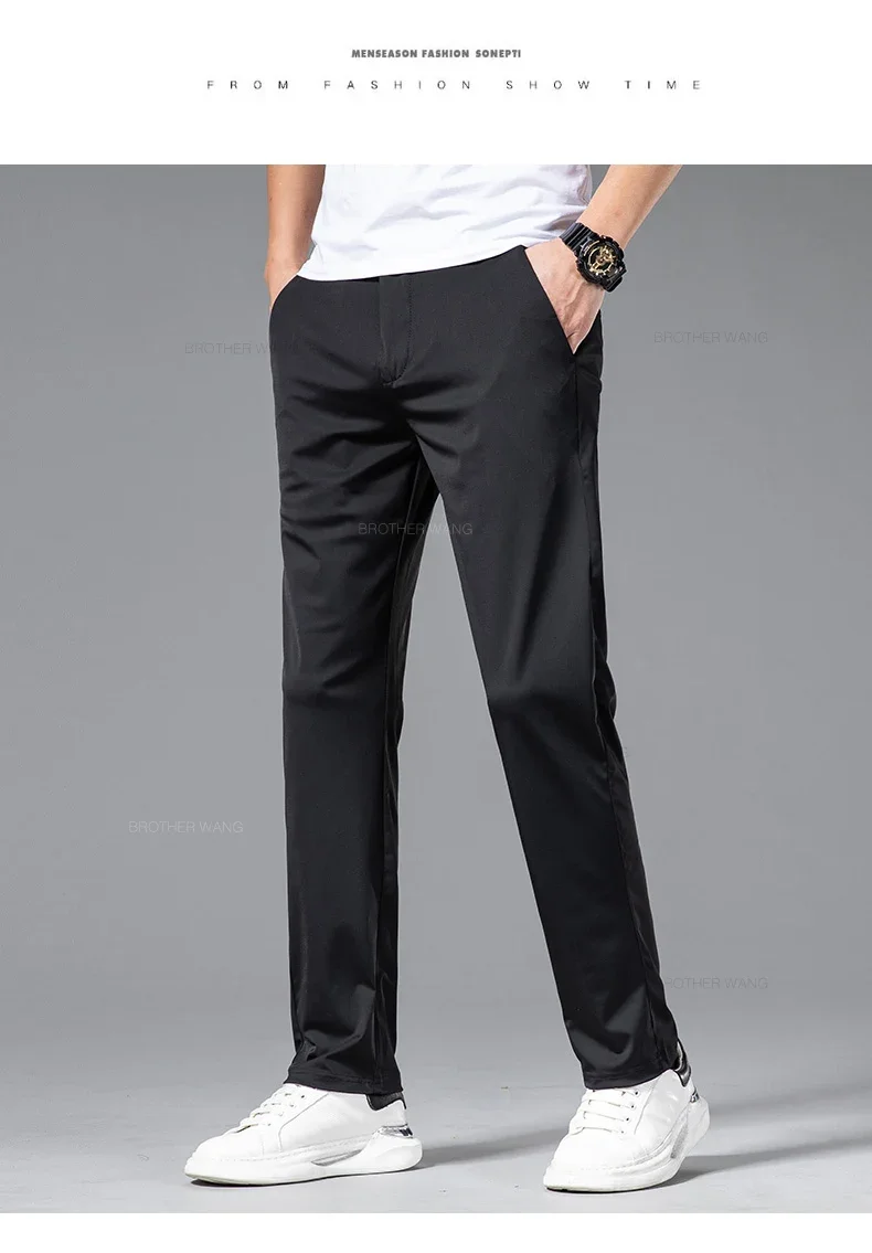 Spring Summer Ultra-thin Casual Pants Men's High Elastic Ice Silk Quick-dry Straight Draped Business Trousers Male Korean