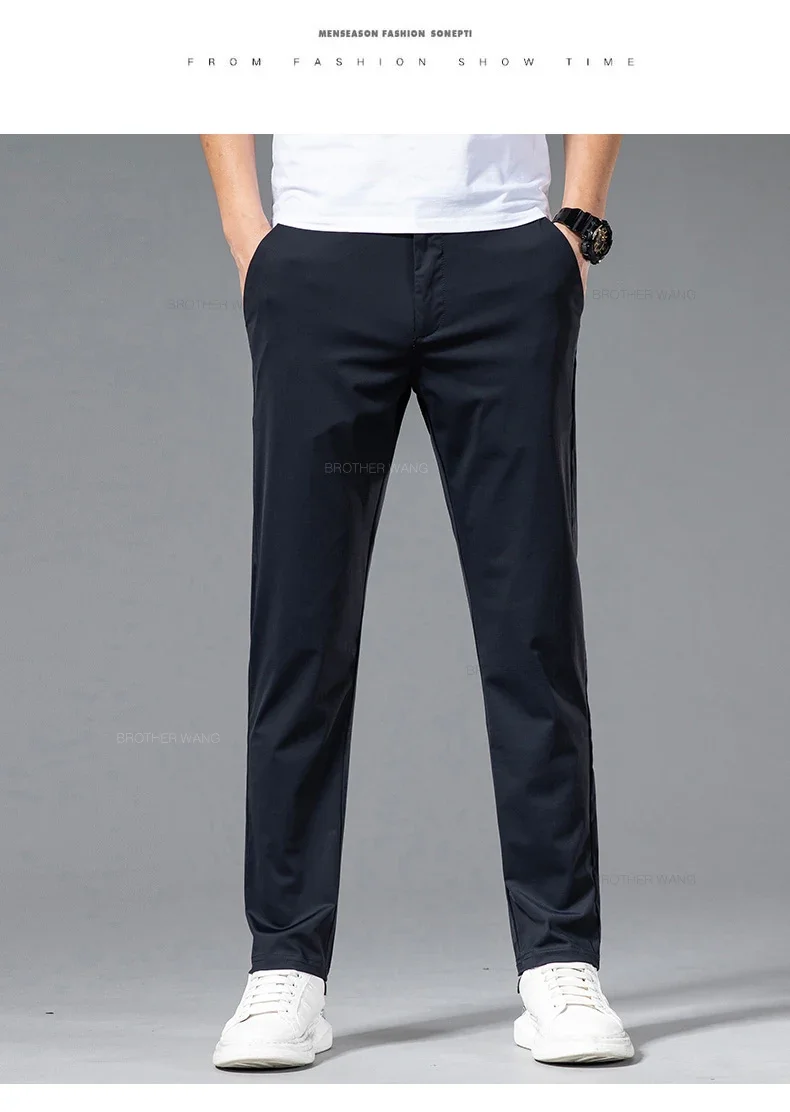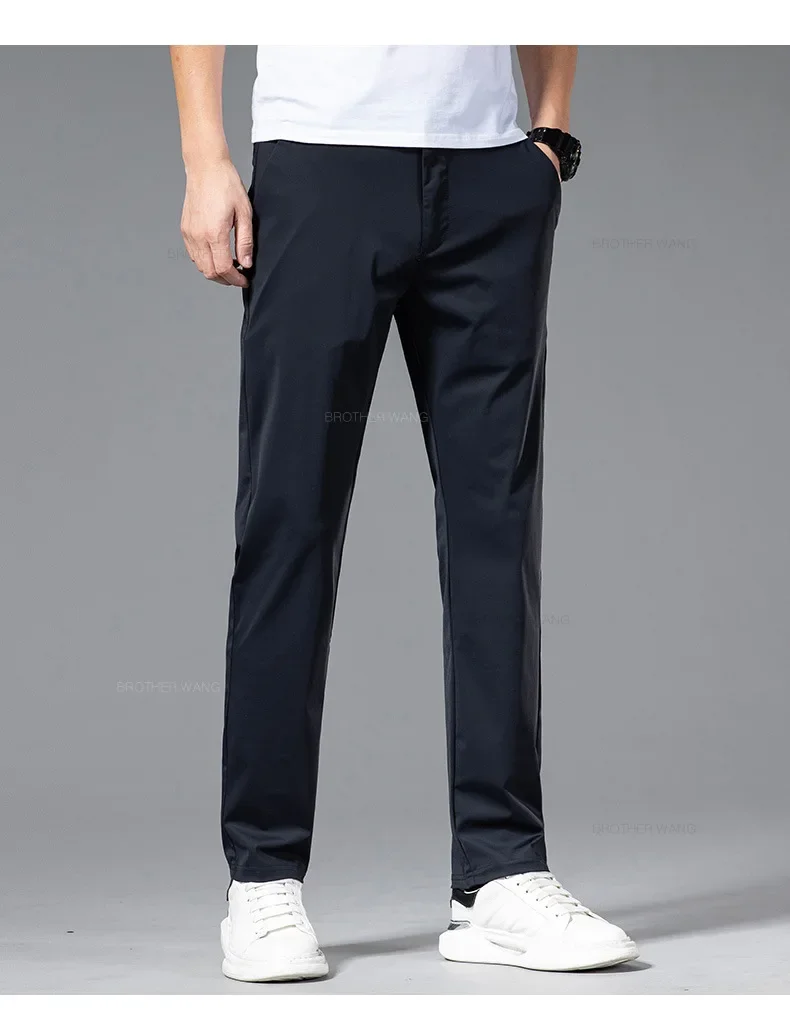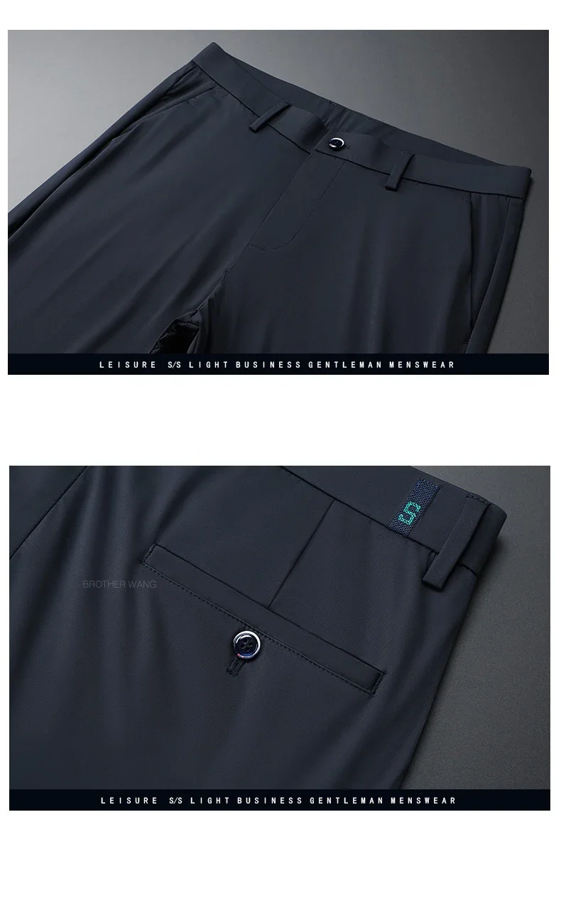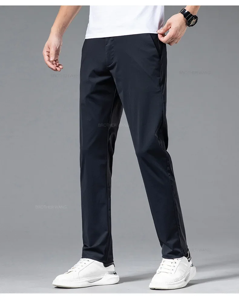 Spring Summer Ultra-thin Casual Pants Men's High Elastic Ice Silk Quick-dry Straight Draped Business Trousers Male Korean