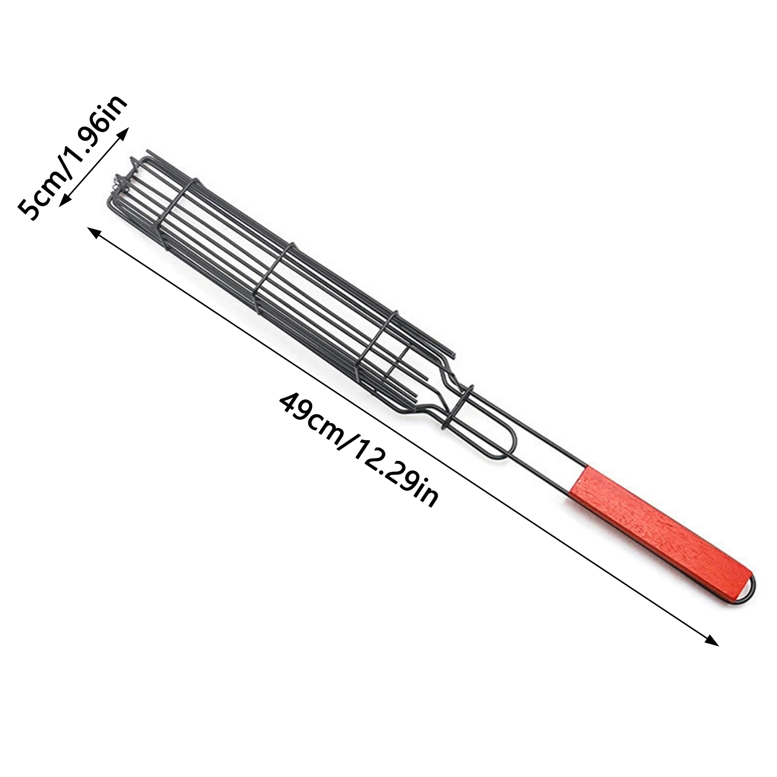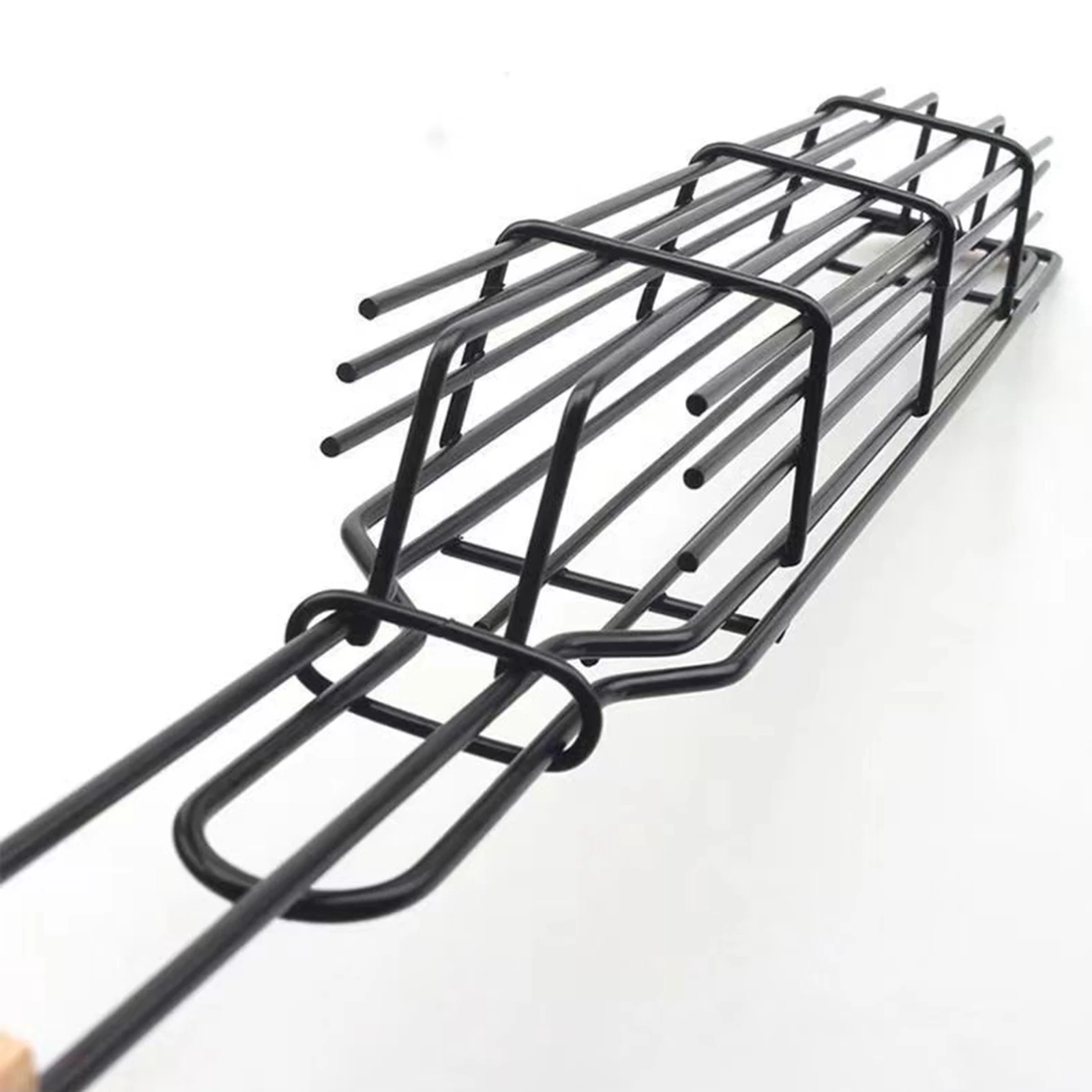 Wooden Handle Design: Featuring a comfortable wooden handle, this barbecue grill cage provides a secure grip while cooking, protecting your hands from heat and allowing for easy flipping of food items.