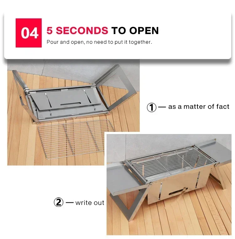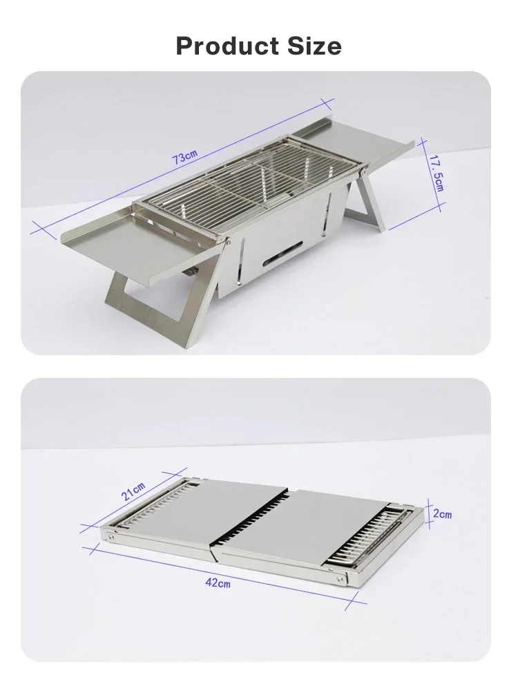 Stainless steel barbecue stove, outdoor charcoal thickened folding barbecue rack, household small one second folding carbon barbecue skewer stove