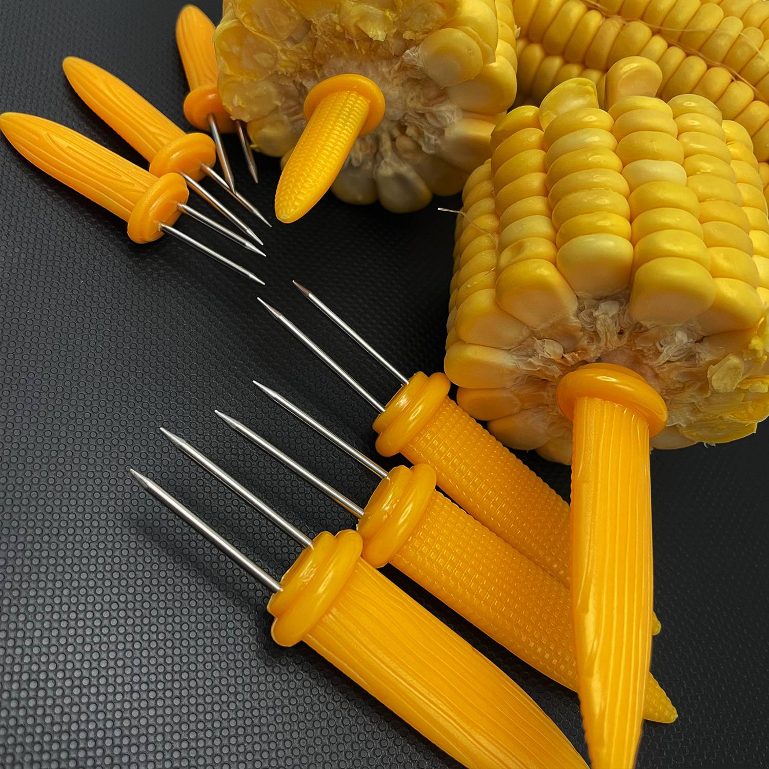 Fixing corn: The main function of the corn roasting pin is to fix corn and keep it stable during roasting. The baking needle can penetrate the core of the corn, and the stick is used to fix the outside of the corn to ensure that the corn will not roll or slide during baking.