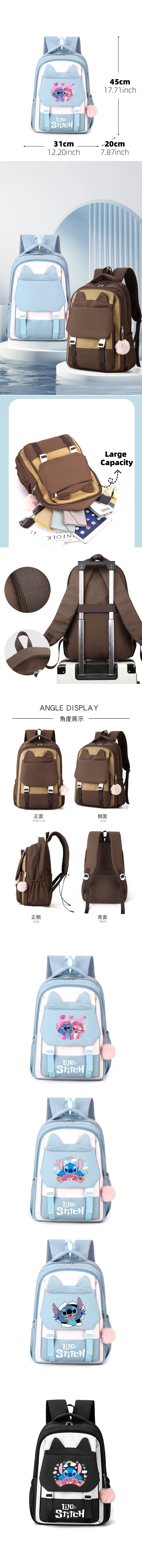 Stitch Backpack, Cartoon Kawaii Schoolbag, Cute Large Capacity Outdoors Daypack School Supplies Travel Bookbag Birthday Gift