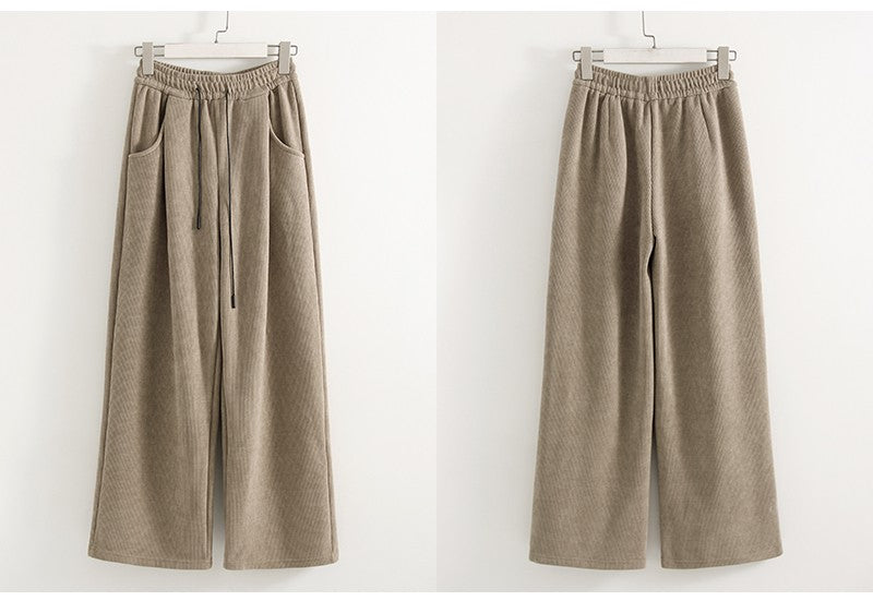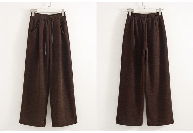 Streamgirl Women Winter Corduroy Pants Dark Brown With Thick Warm Fleece Trousers Corduroy High Waist Loose Pants For Women