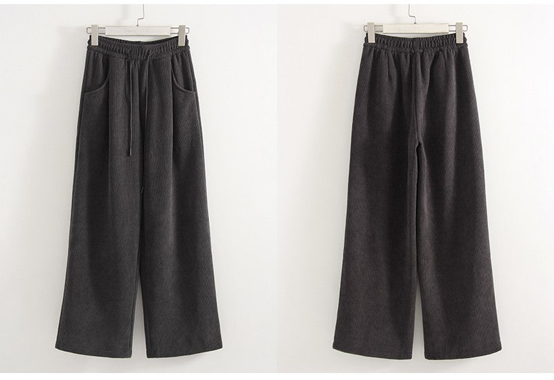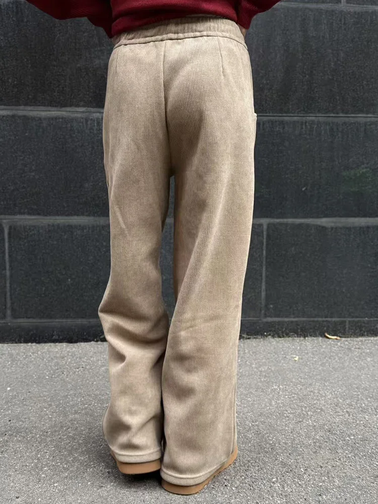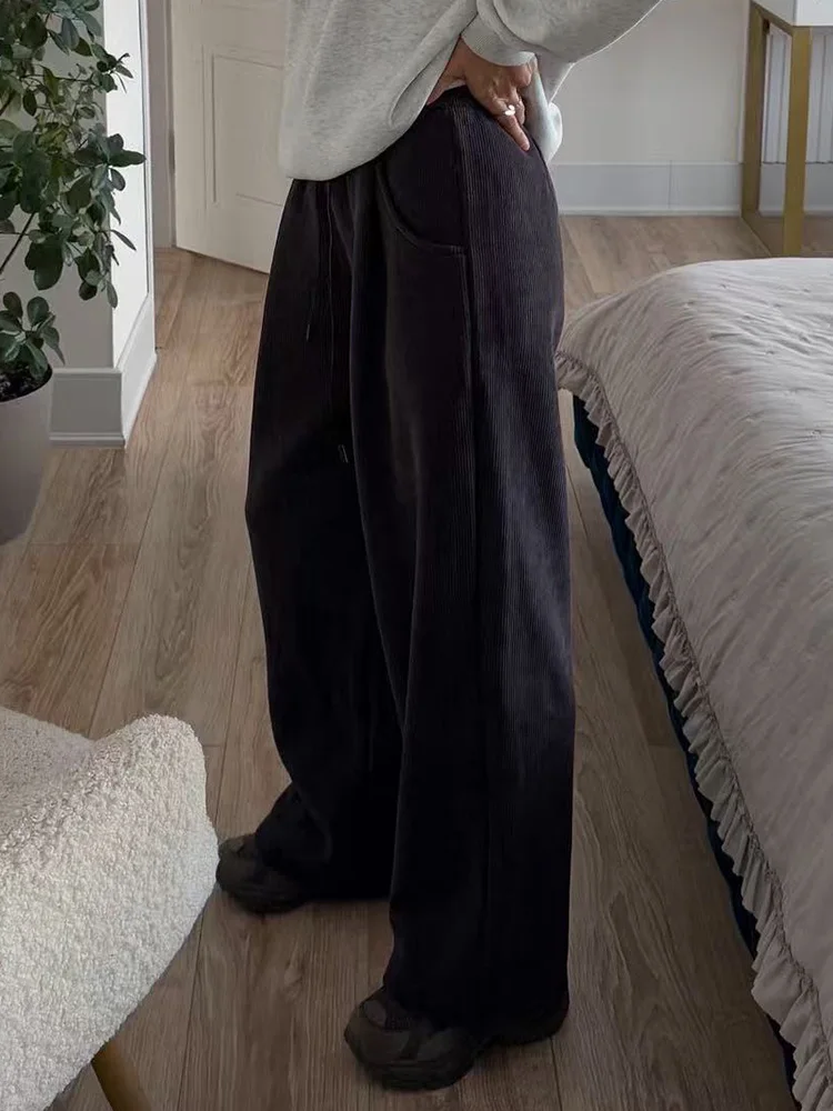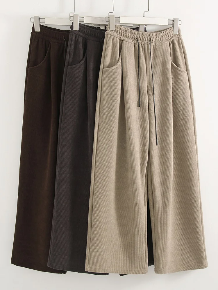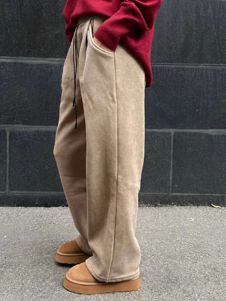 Streamgirl Women Winter Corduroy Pants Dark Brown With Thick Warm Fleece Trousers Corduroy High Waist Loose Pants For Women