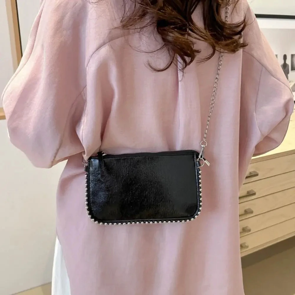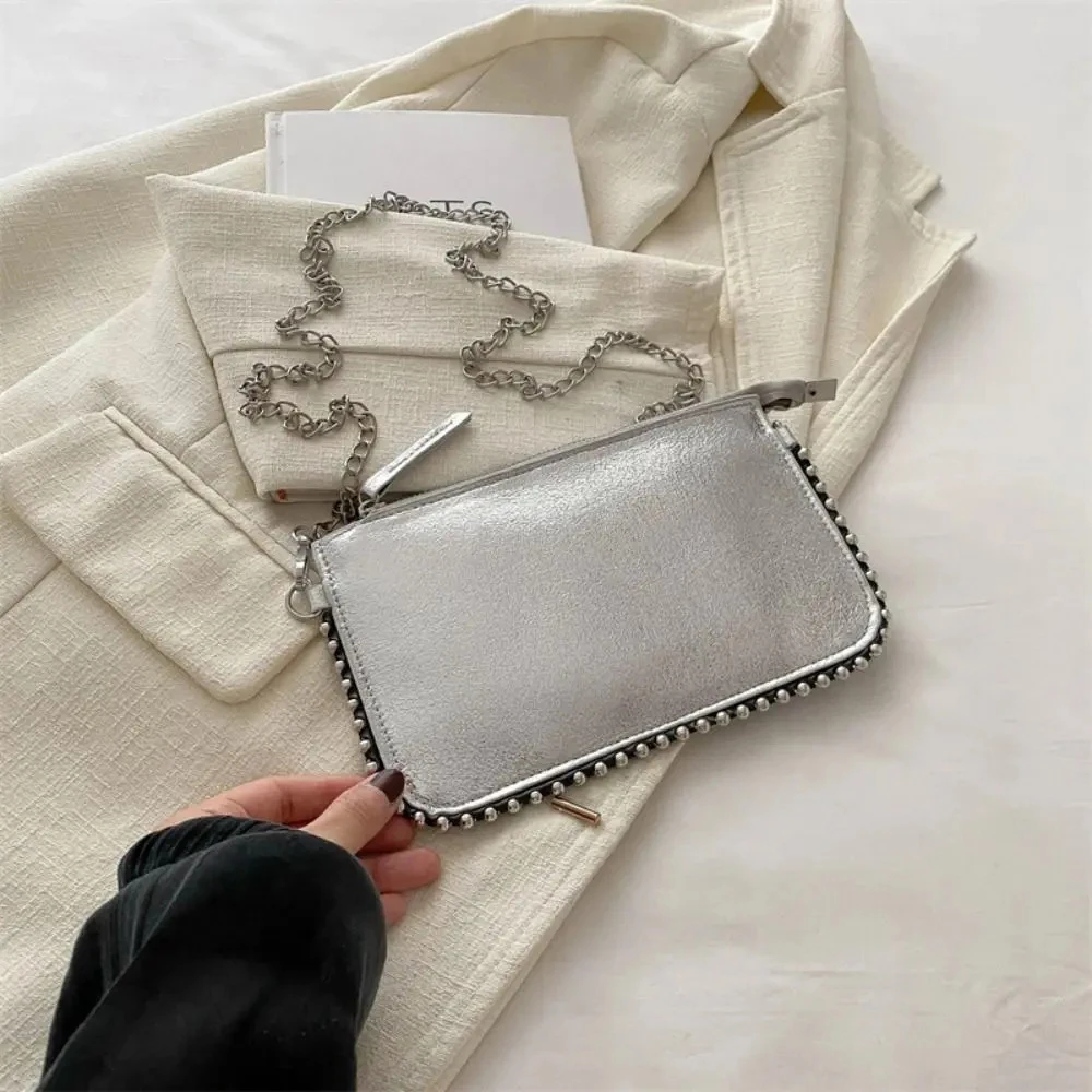 Street Pu Leather Underarm Tote Bag Rivet Korean Style Vintage Shoulder Bag Chain Strap Square Luxury Handbag Outdoor