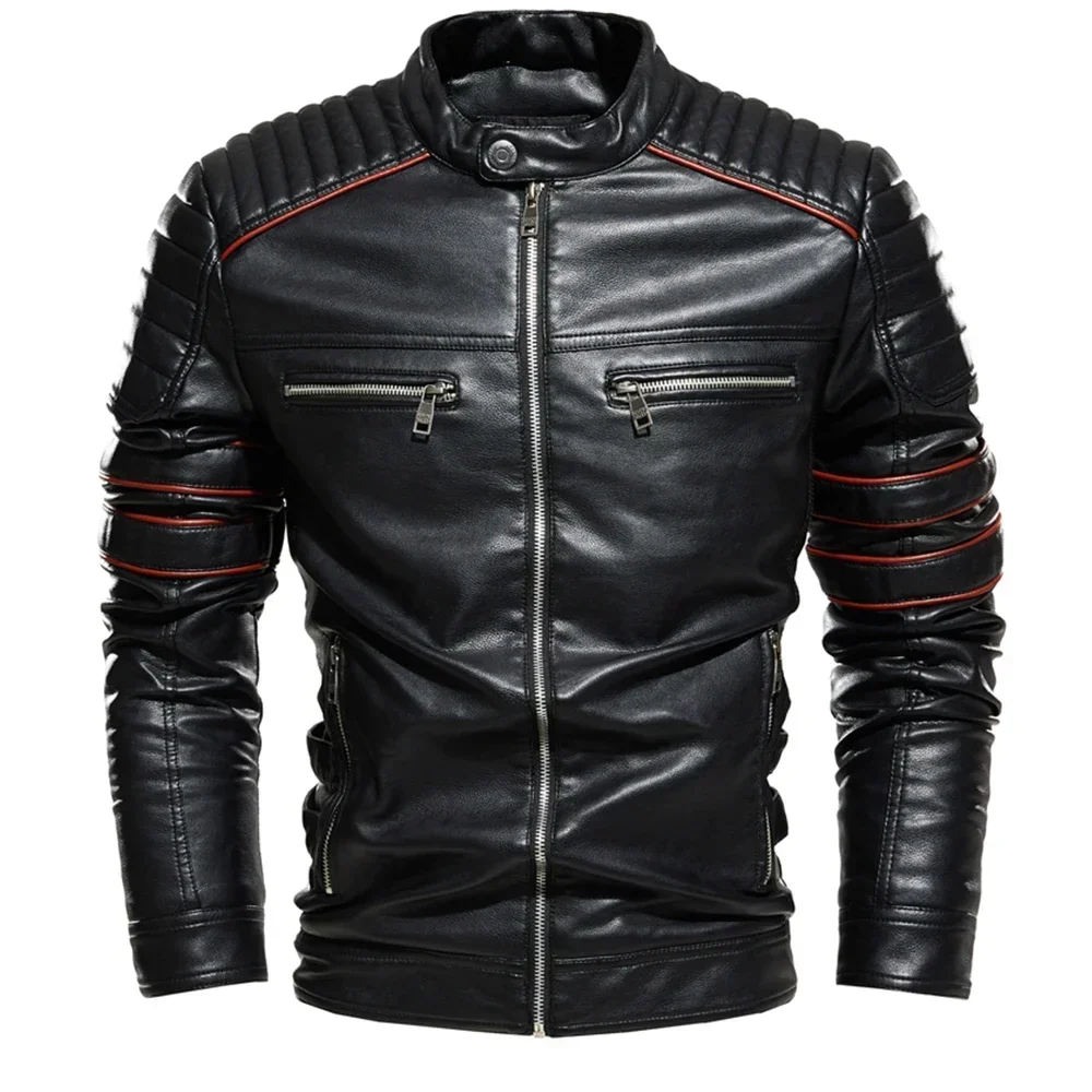 Streetwear Biker Jacket Coat Fashion Men Leather Jacket Slim Fit Autumn Winter Coat Men Fur Lined Men Motorcycle New Jacket