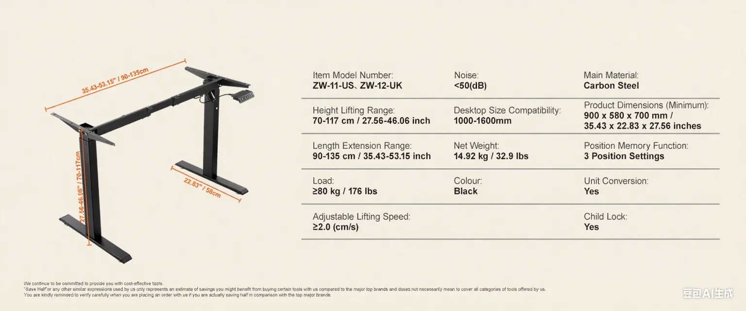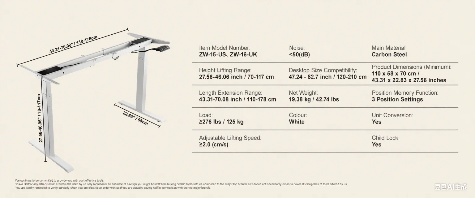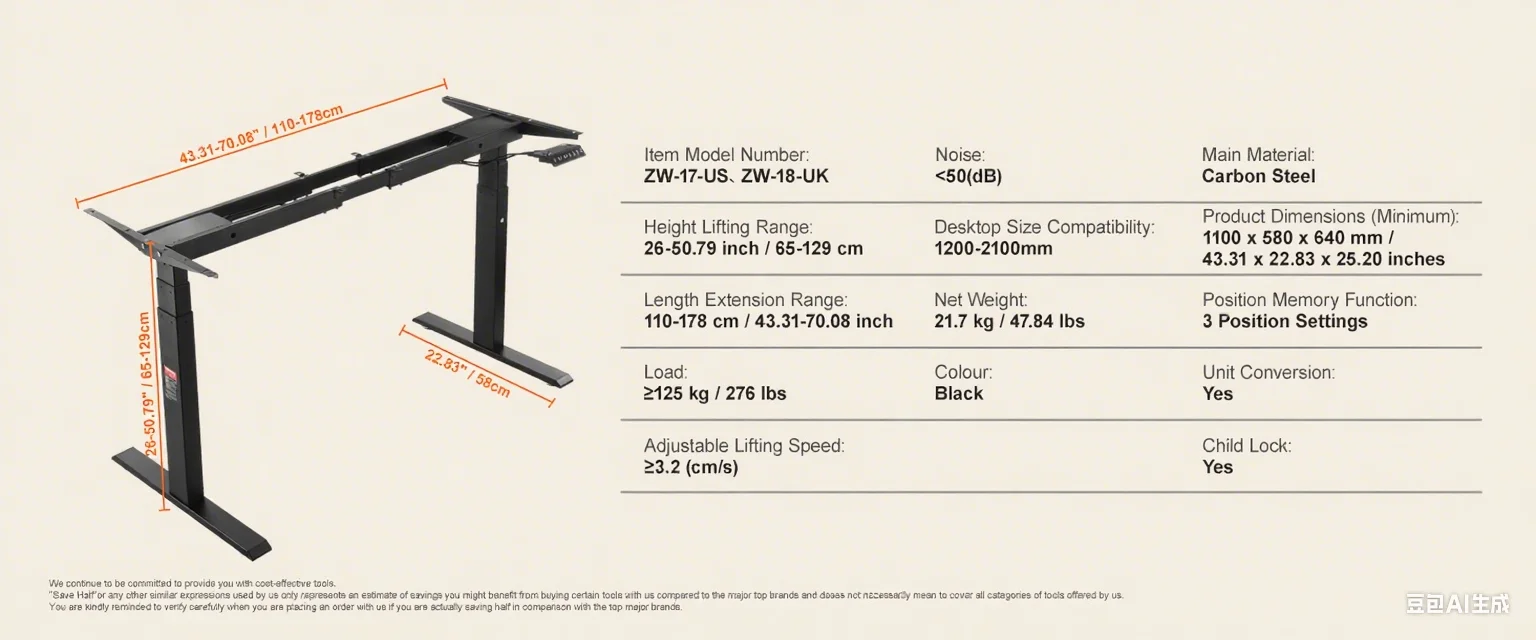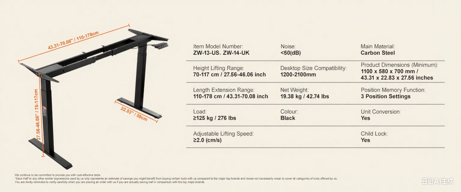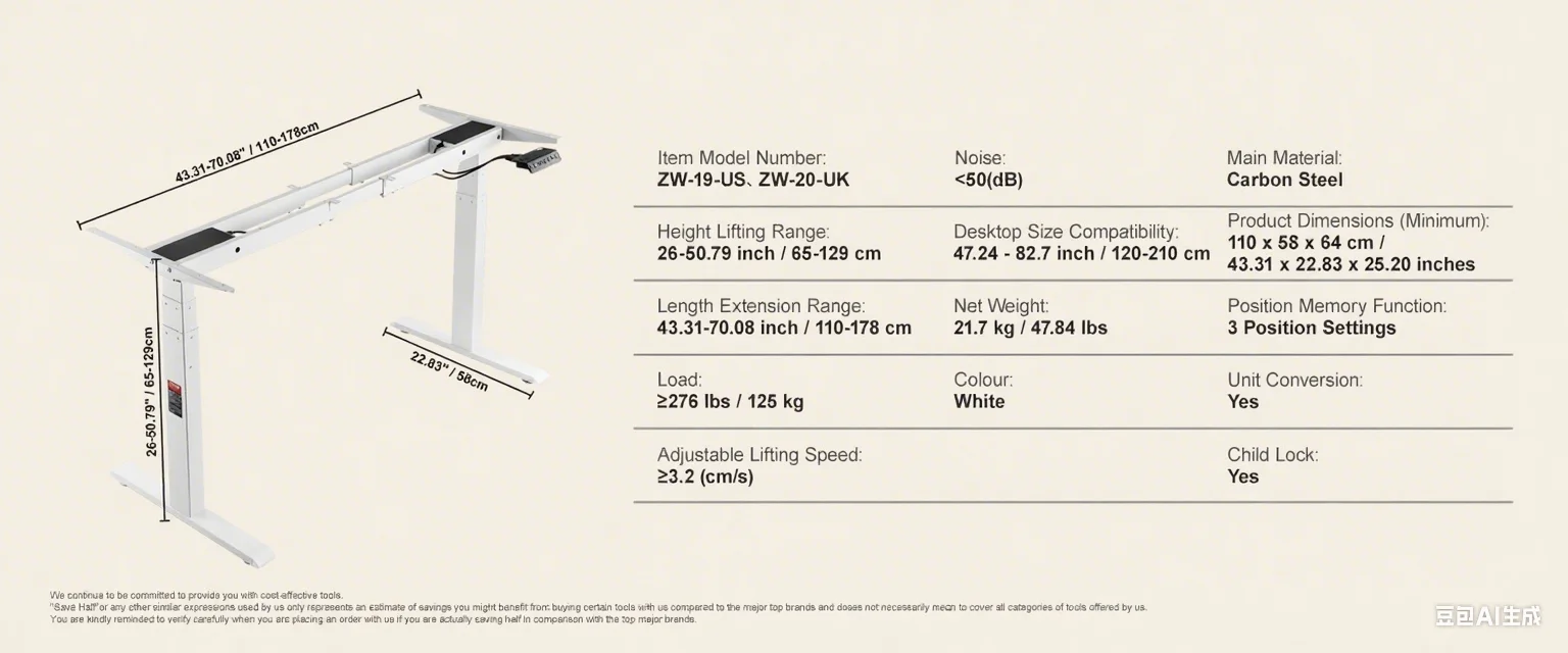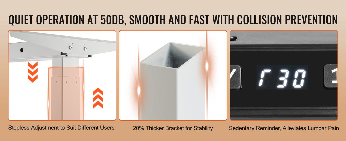 Sturdy and Stable: With a robust weight capacity of 276/176 lbs ?125/80 kg?, crafted from premium SPCC material, this desk stands strong, durable, and operates quietly. Its legs are reinforced by 20% for a comfortable and efficient workspace.