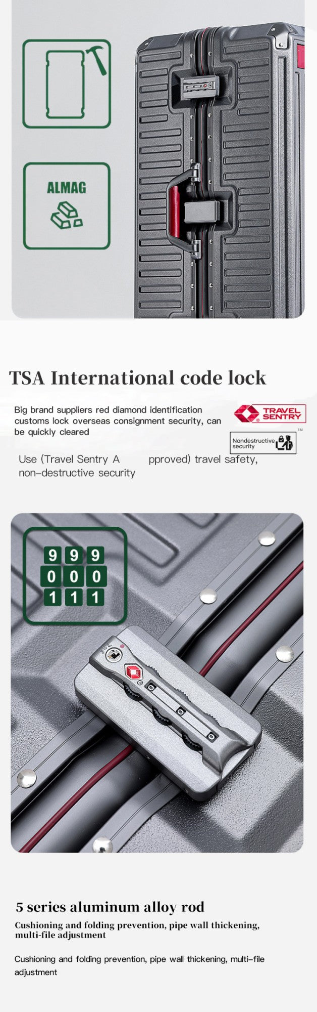 Suitcase Wide Handle Travel Suitcase Men 20 24 26 Carry-On Luggage Women PC Aluminum Frame Trolley Case