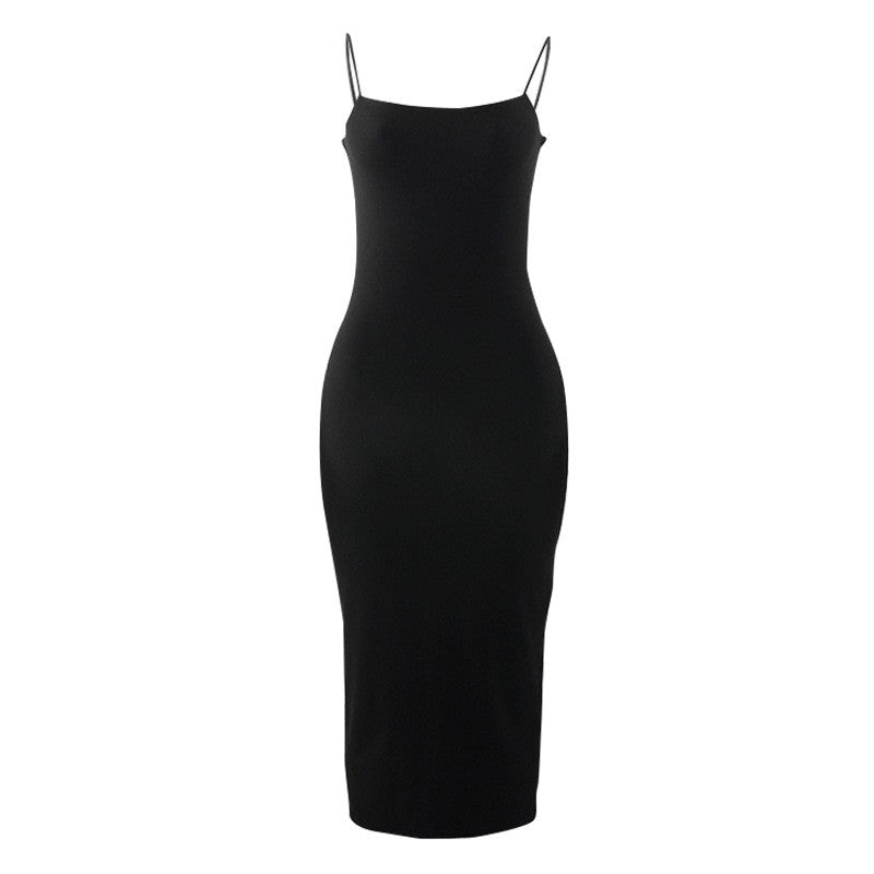 Summer Black Sexy Dress Women Streetwear Sleeveless Backless Solid Spaghetti Str